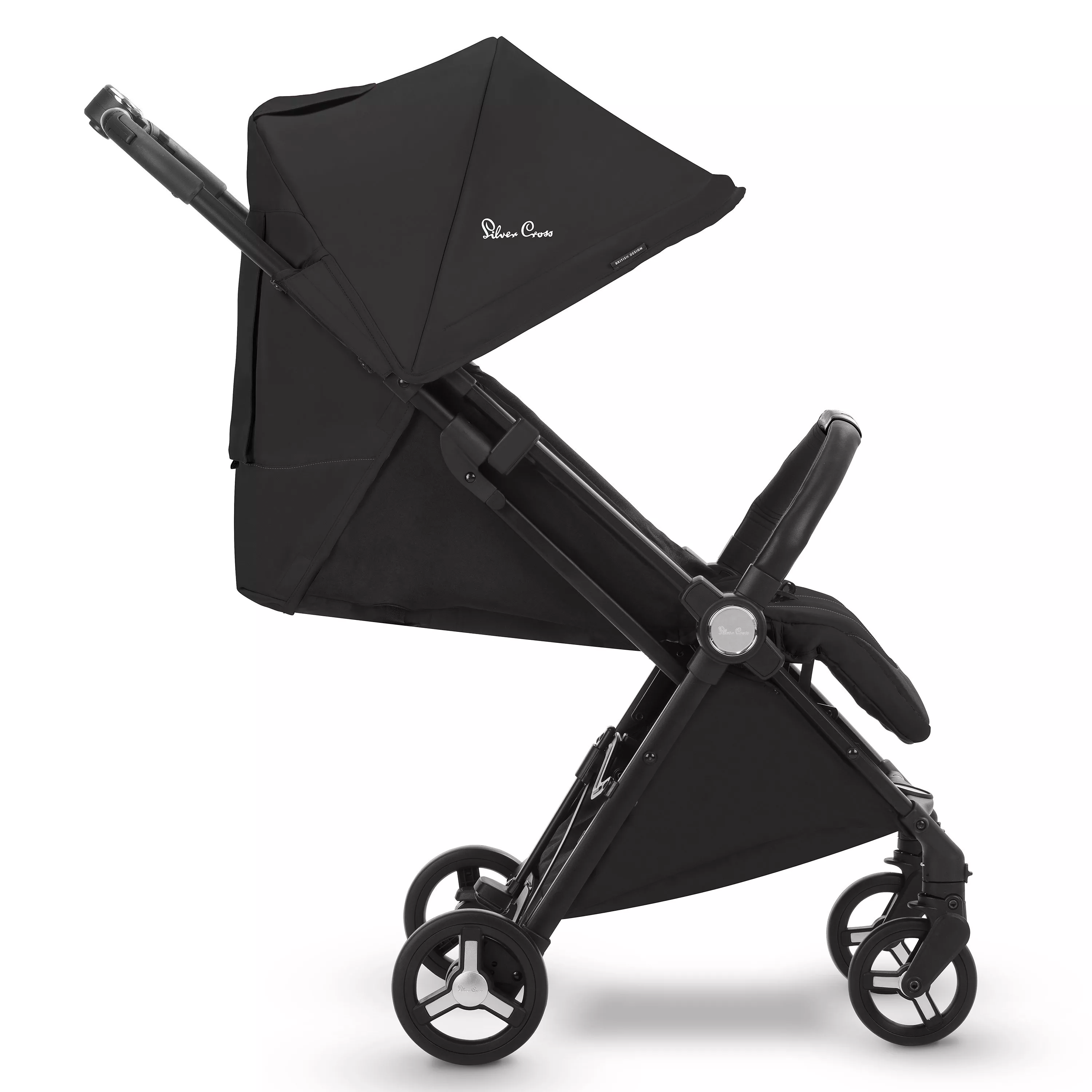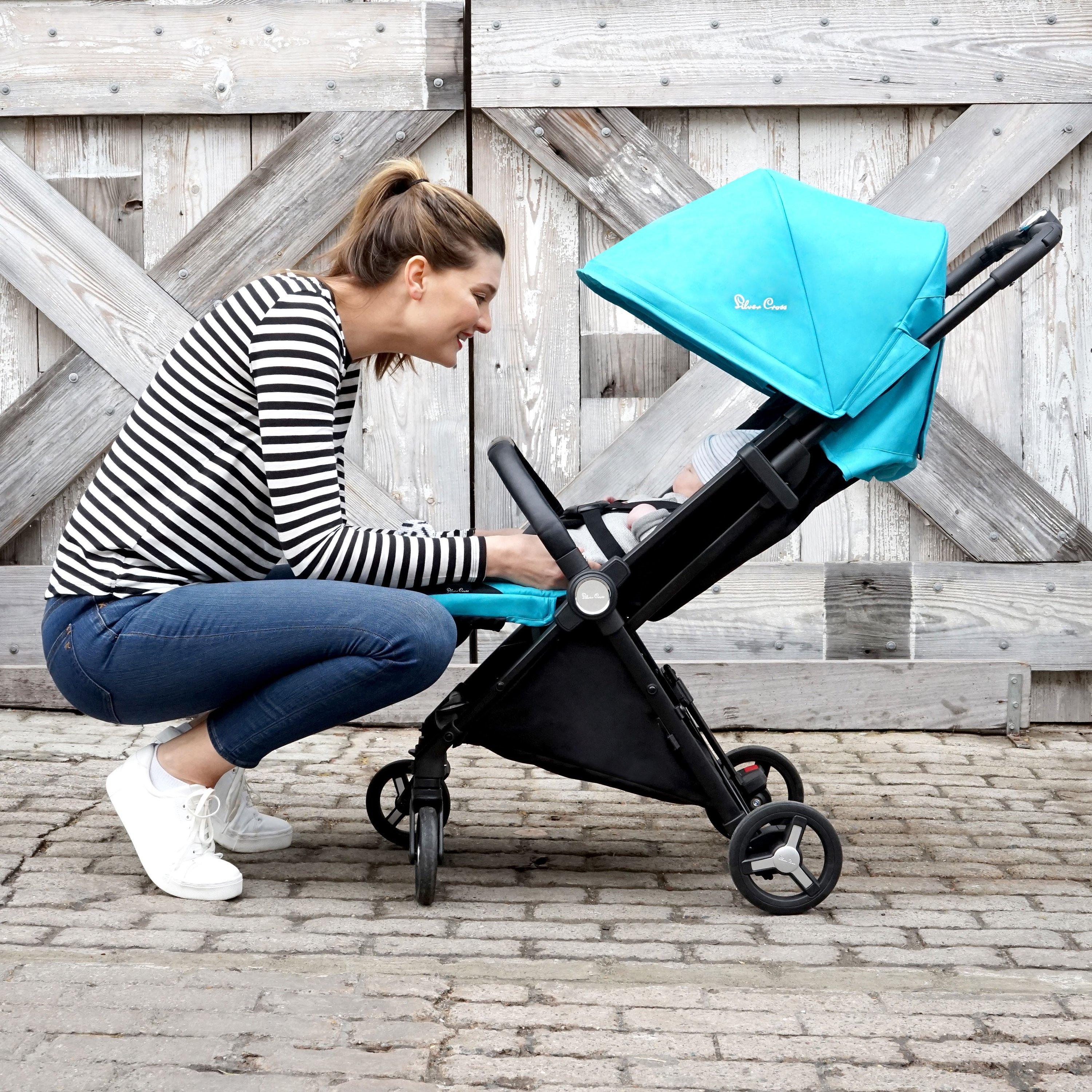The Silver Cross Jet is the all-new, ultra compact lightweight travel stroller that folds small enough to fit in cabin space on an airplane and can even be wheeled like a small suitcase.