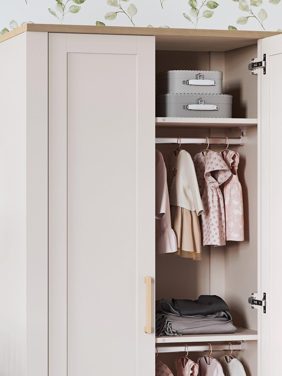 The Silver Cross Seville wardrobe is the perfect place to organise your baby’s clothing, with two hanging rails and shelves providing lots of space. As your baby grows and so do their clothes, the lower hanging rail and shelf can be easily removed to make room for larger garments.