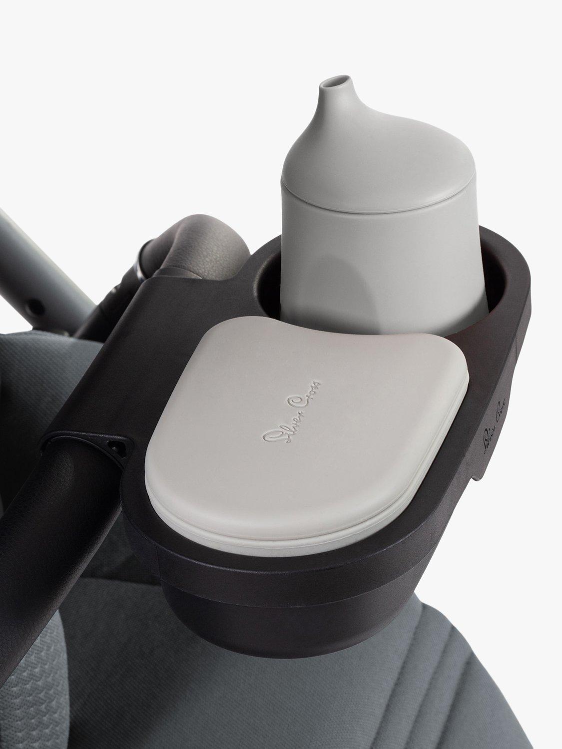 Encouraging independent eating, the Silver Cross snack tray is ideal for snacking on the go. It attaches easily to the pram bumper bar with a stylish silicone beaker and snack pot included. When not in use, the snack tray detaches easily.