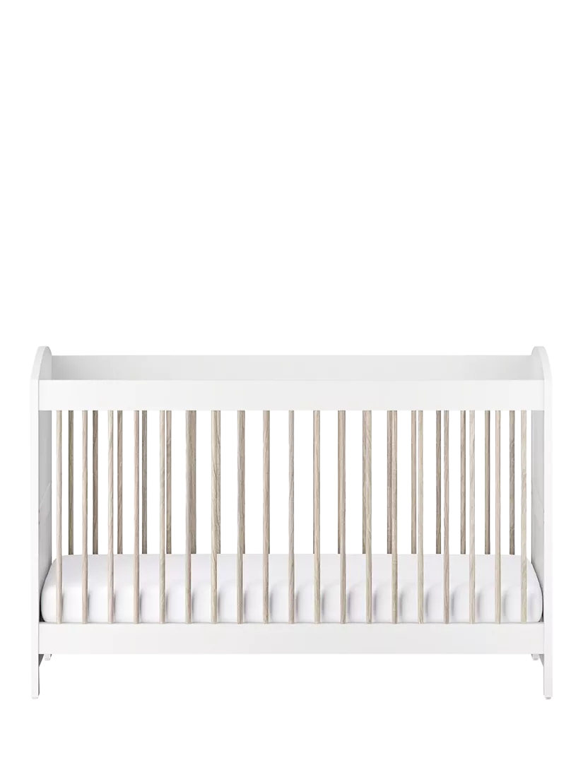 Finished in a timeless white with natural ash details, the Valencia cot to toddler bed will fit seamlessly into any nursery space and will suit every stage of your little one’s growth from their first night at home up to their toddler years. With three mattress heights, the cotbed should be used in the highest setting for your newborn and lowered gradually as they start to roll, sit and stand.
