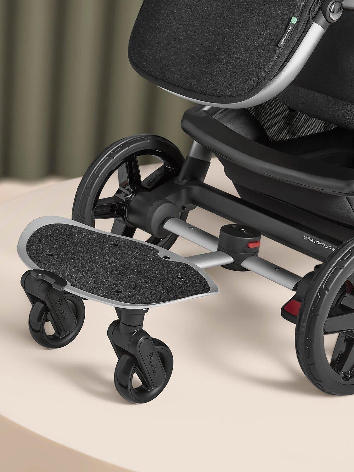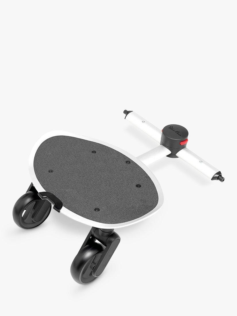 This easy-to-use ride-on board is compatible with the Silver Cross Wave pram and connects in seconds with no extra fixing. It's finished in tough and durable aluminium with a coarse-textured board surface for maximum grip. The ride-on board features two swivel wheels with puncture-free tyres, and independent suspension for the most comfortable hop-on ride. It also comes with a handy strap, which attaches to the basket of your pram system, allowing you to lift the board and store it vertically when not in use.