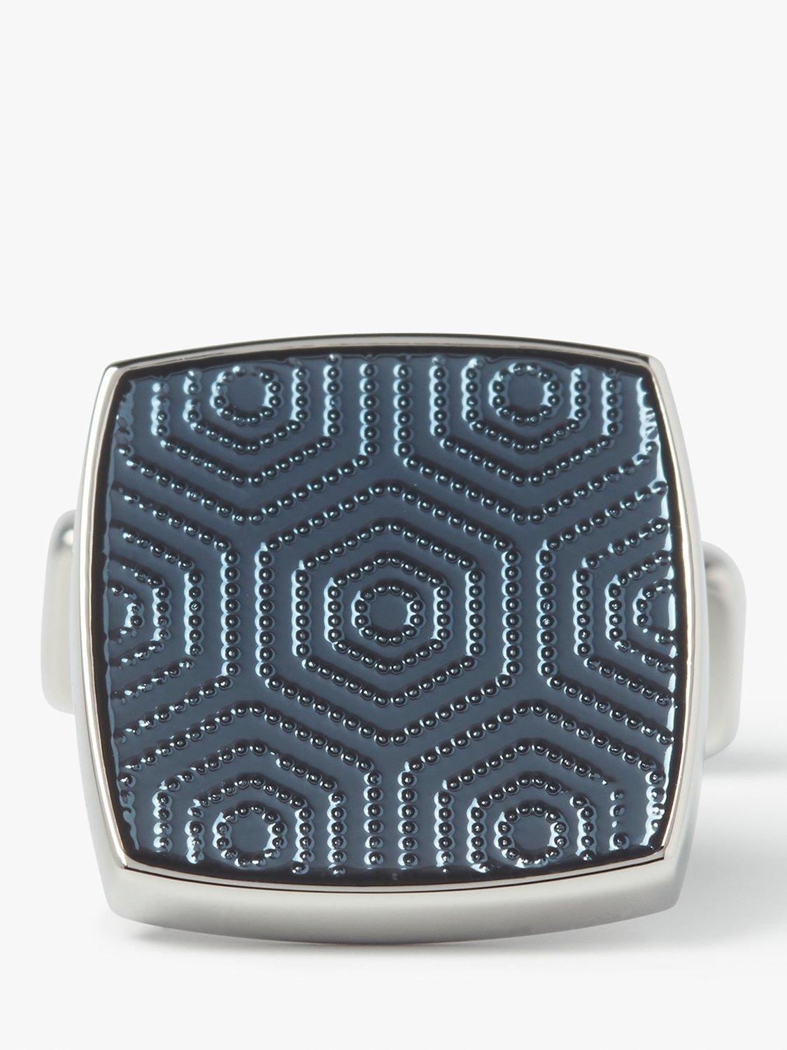 This soft geometric design of the Adagio cufflinks from Simon Carter is produced using a guilloche technique of stamping, overlaid with enamel resin. The effect is layered and sophisticated, while the case is rhodium plated solid brass.