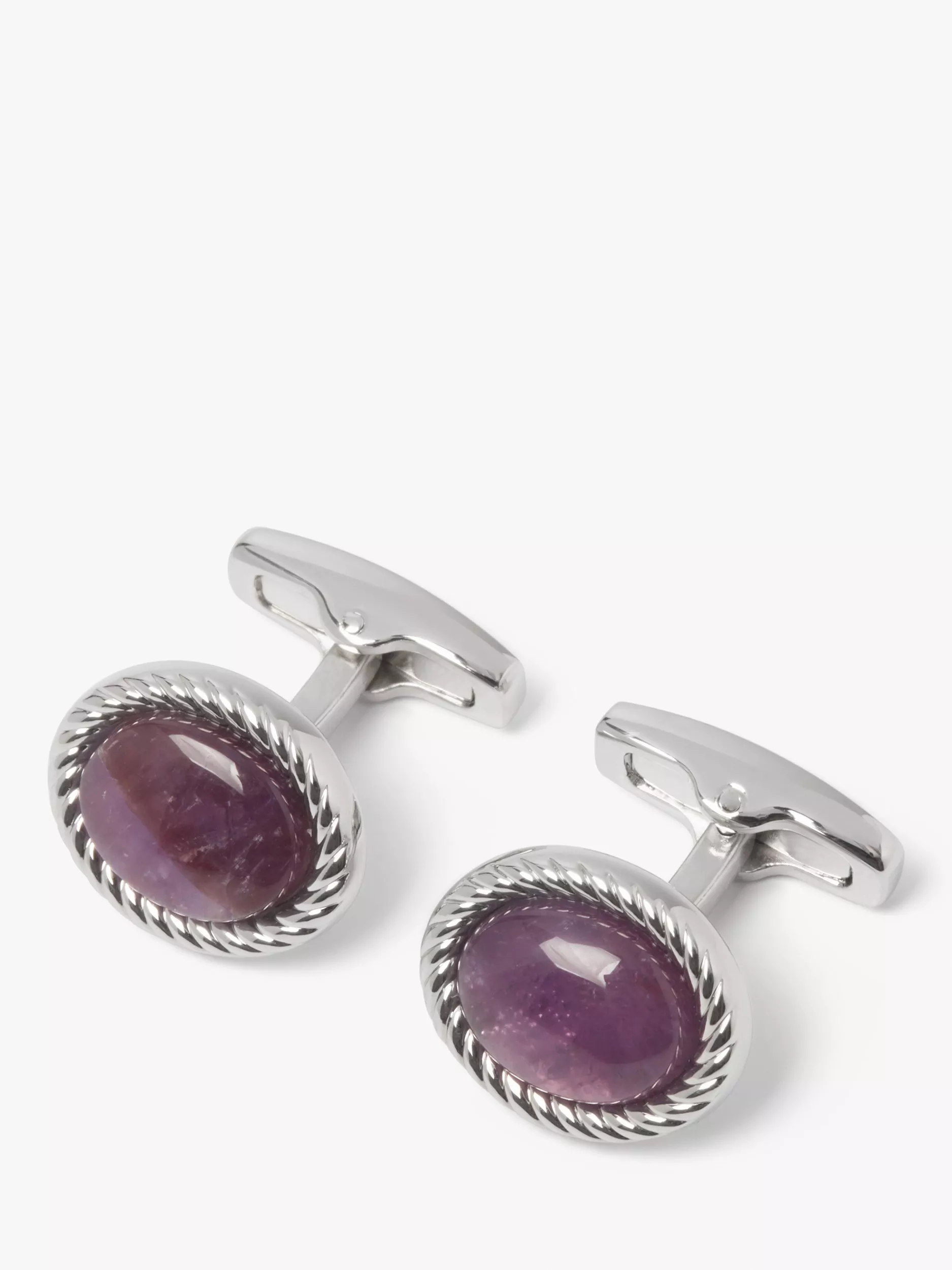These cufflinks are an elegant rope-edge oval design, with a semi-precious stone in the centre.