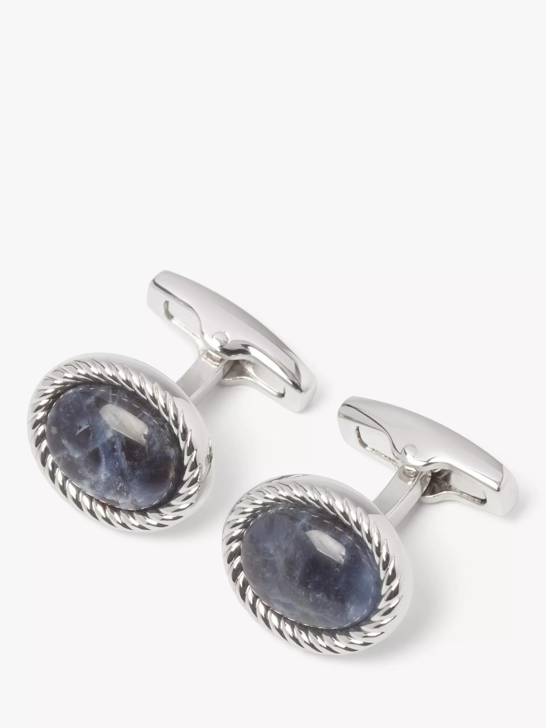 These cufflinks are an elegant rope-edge oval design, with a semi-precious stone in the centre.