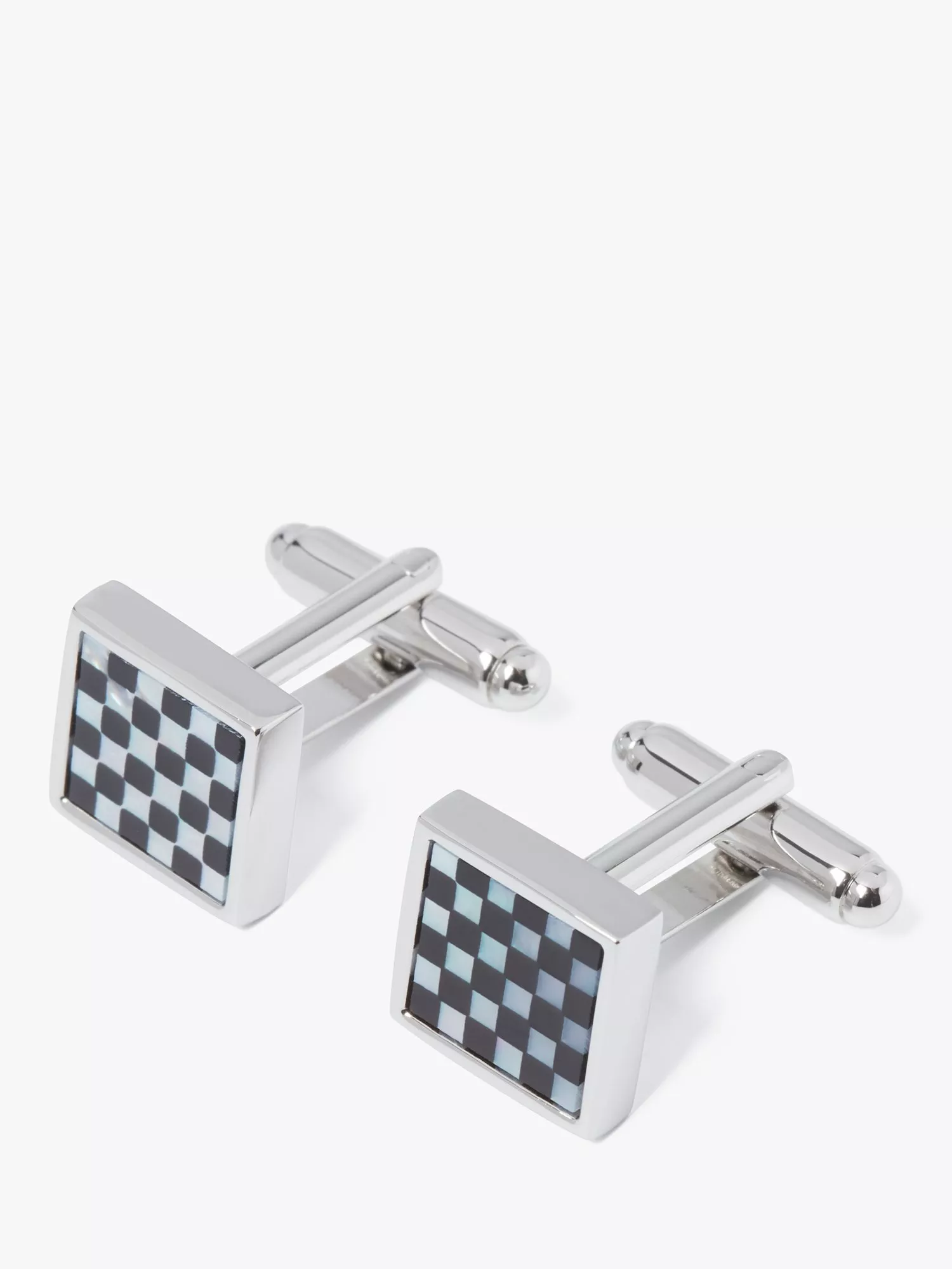 Simon CarterChequer Mop and Onyx Cufflinks, Silver/White/Black