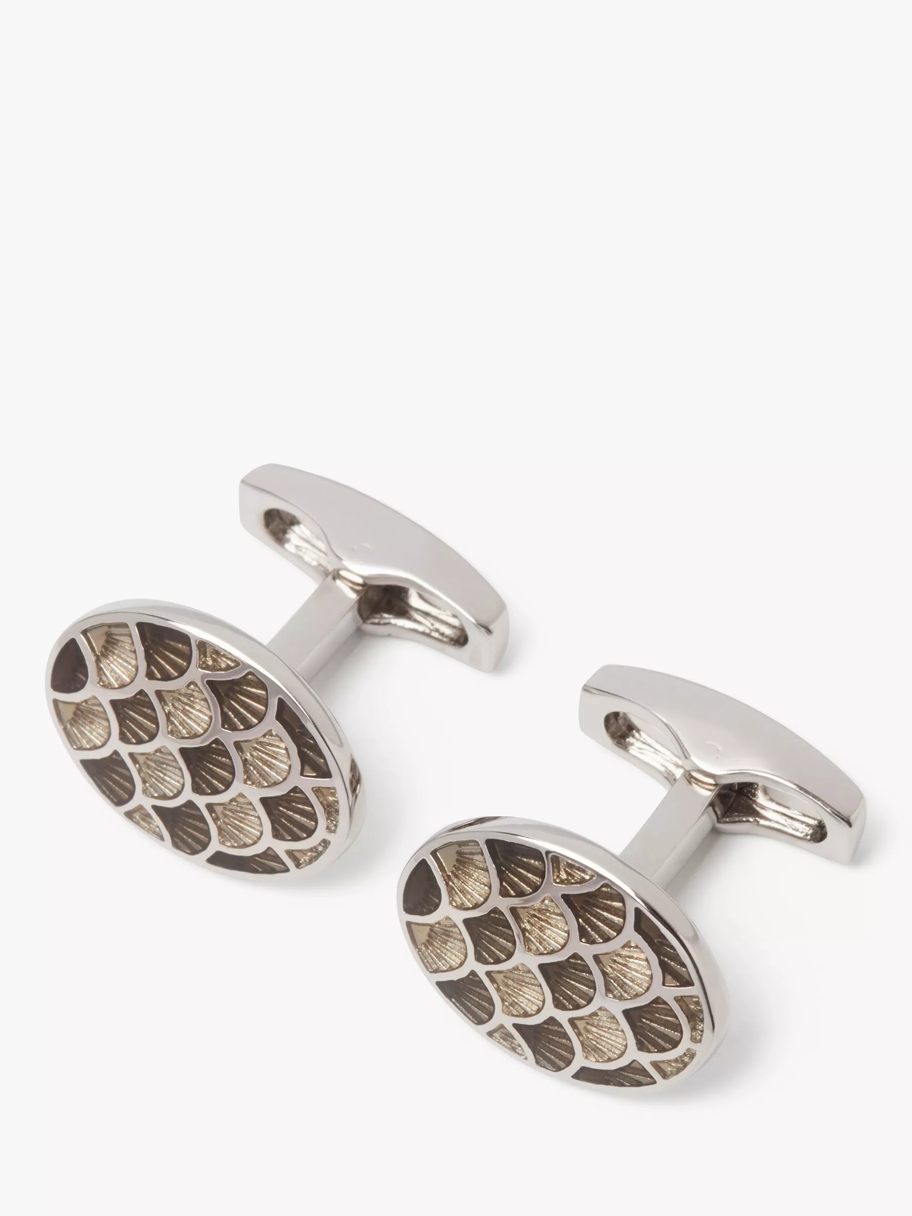 This charming pair of guilloché design cufflinks from Simon Carter are inspired by Aegean motifs of shells or fish scales,