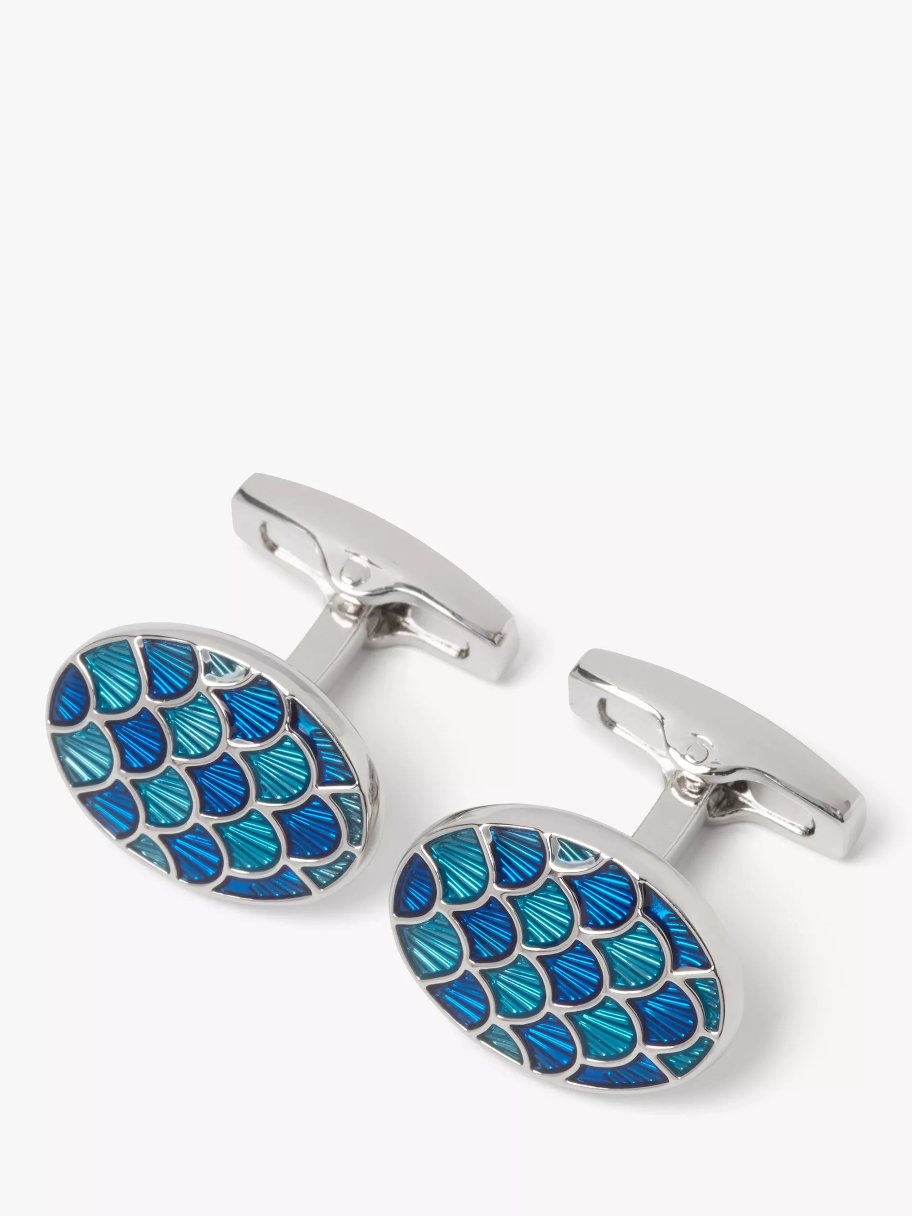 This charming pair of guilloché design cufflinks from Simon Carter are inspired by Aegean motifs of shells or fish scales,