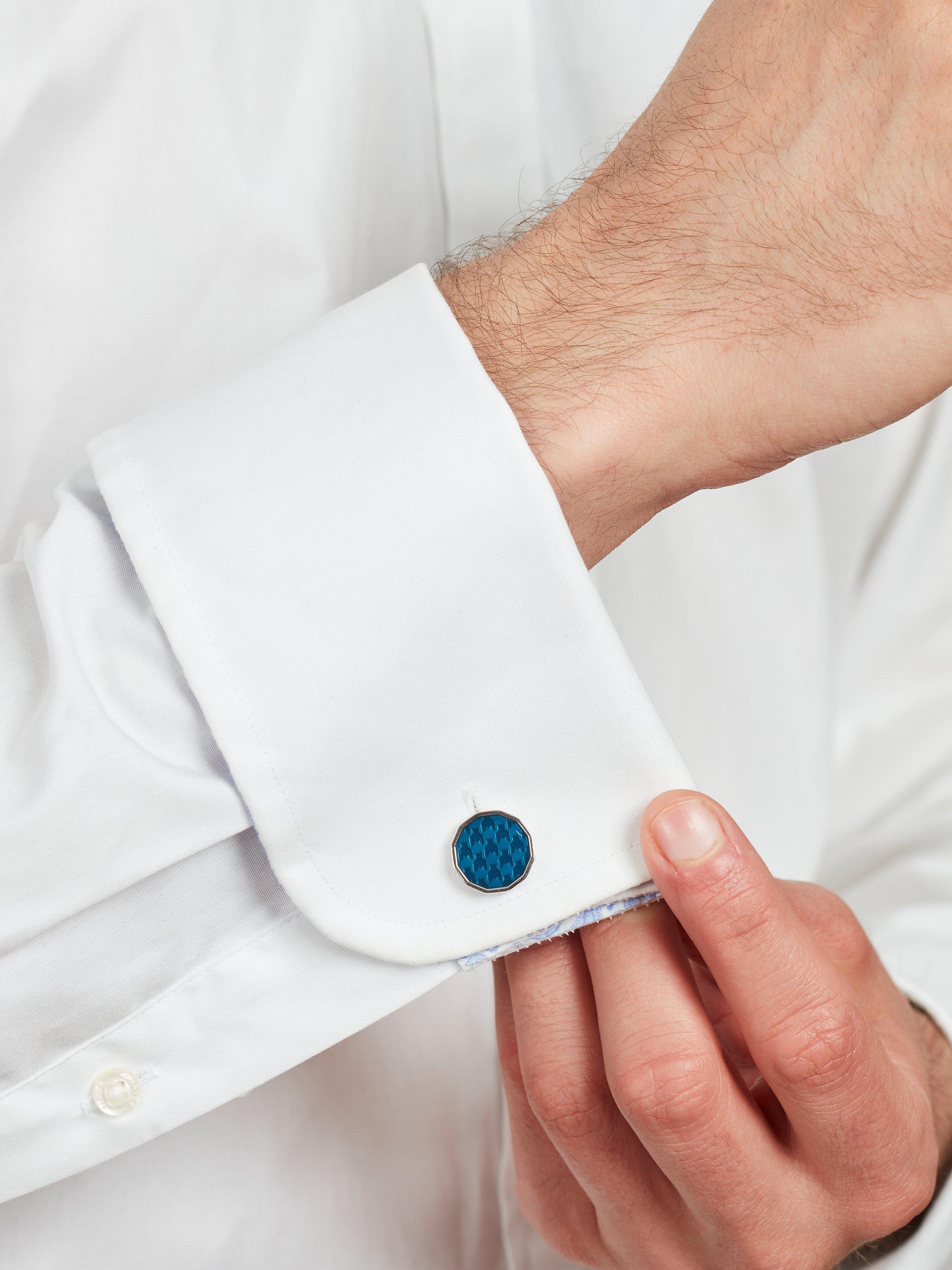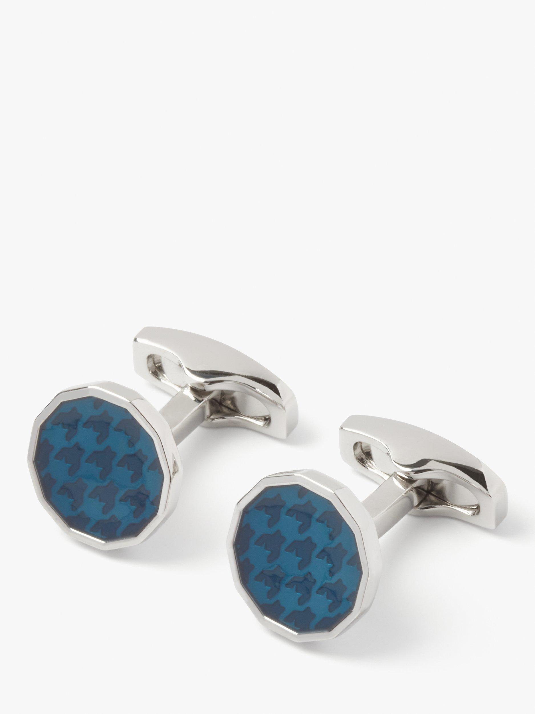 Add a smart finishing touch to your outfit with these sophisticated cufflinks from Simon Carter. On these delicate 12-sided cufflinks, a dogtooth pattern shows through a navy enamel finish.