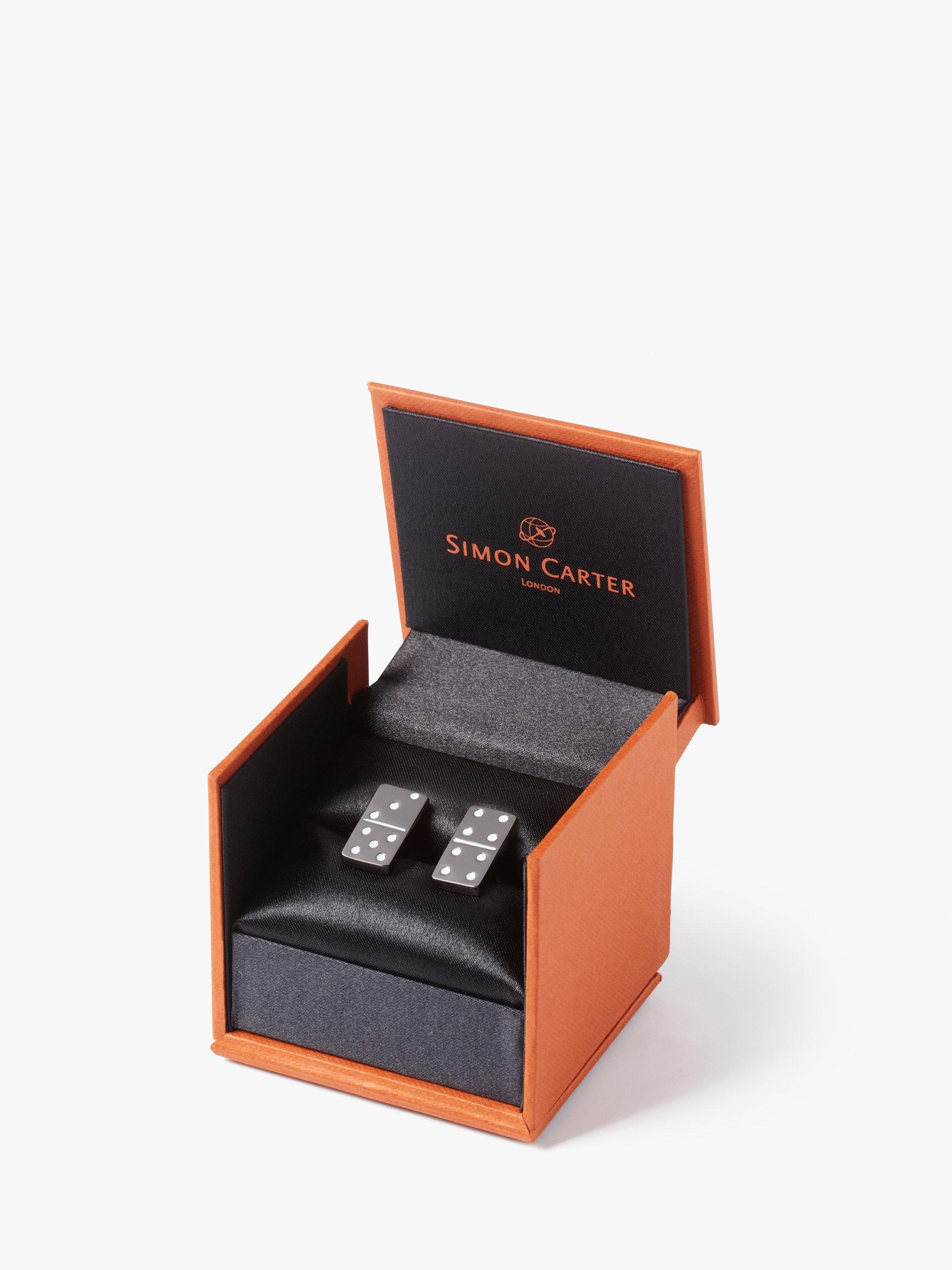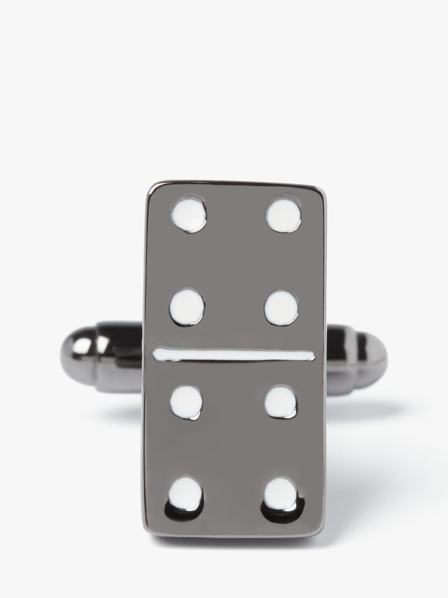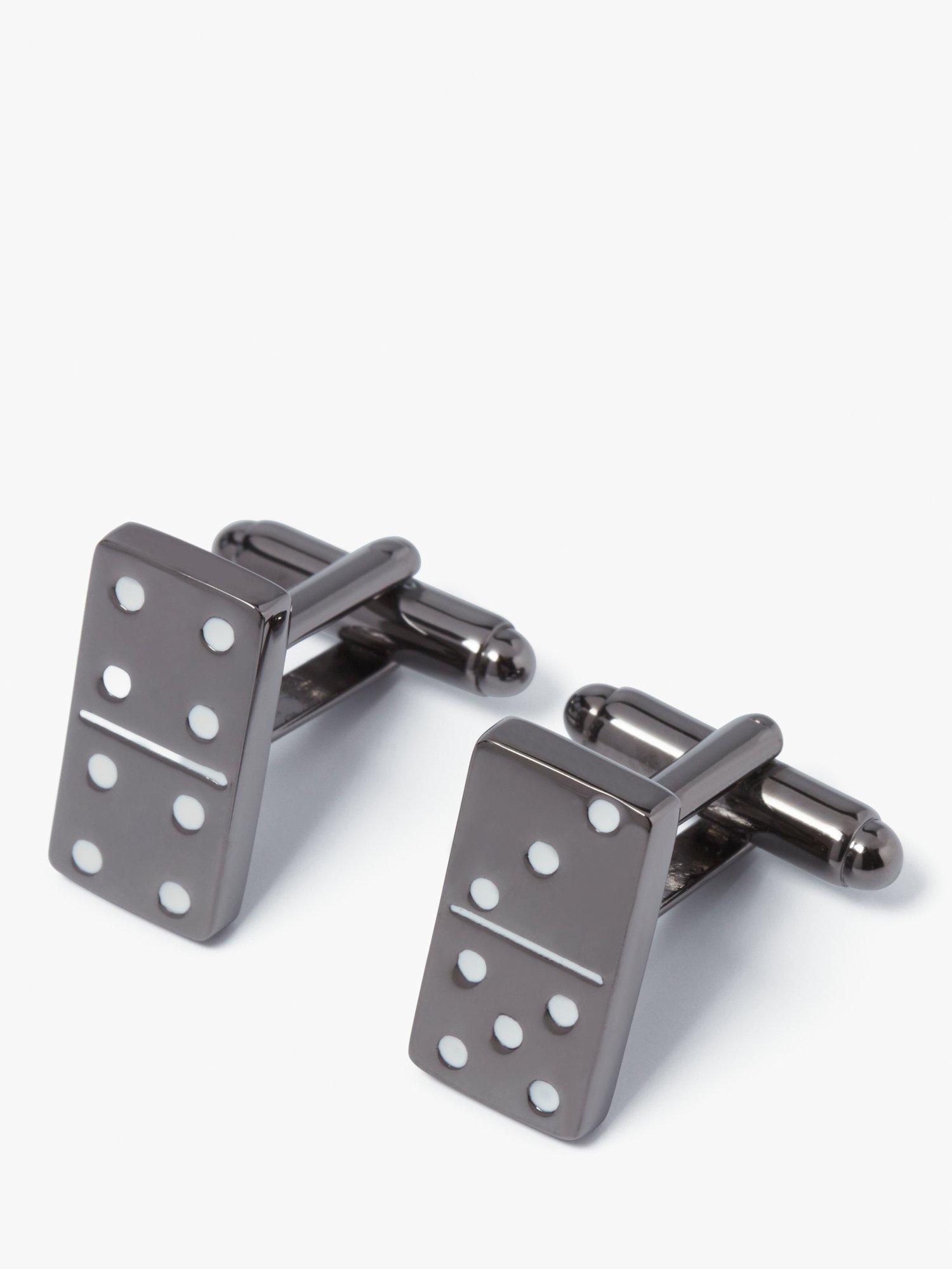 These Domino cufflinks by Simon Carter are created with gunmetal plating and white enamel infills.