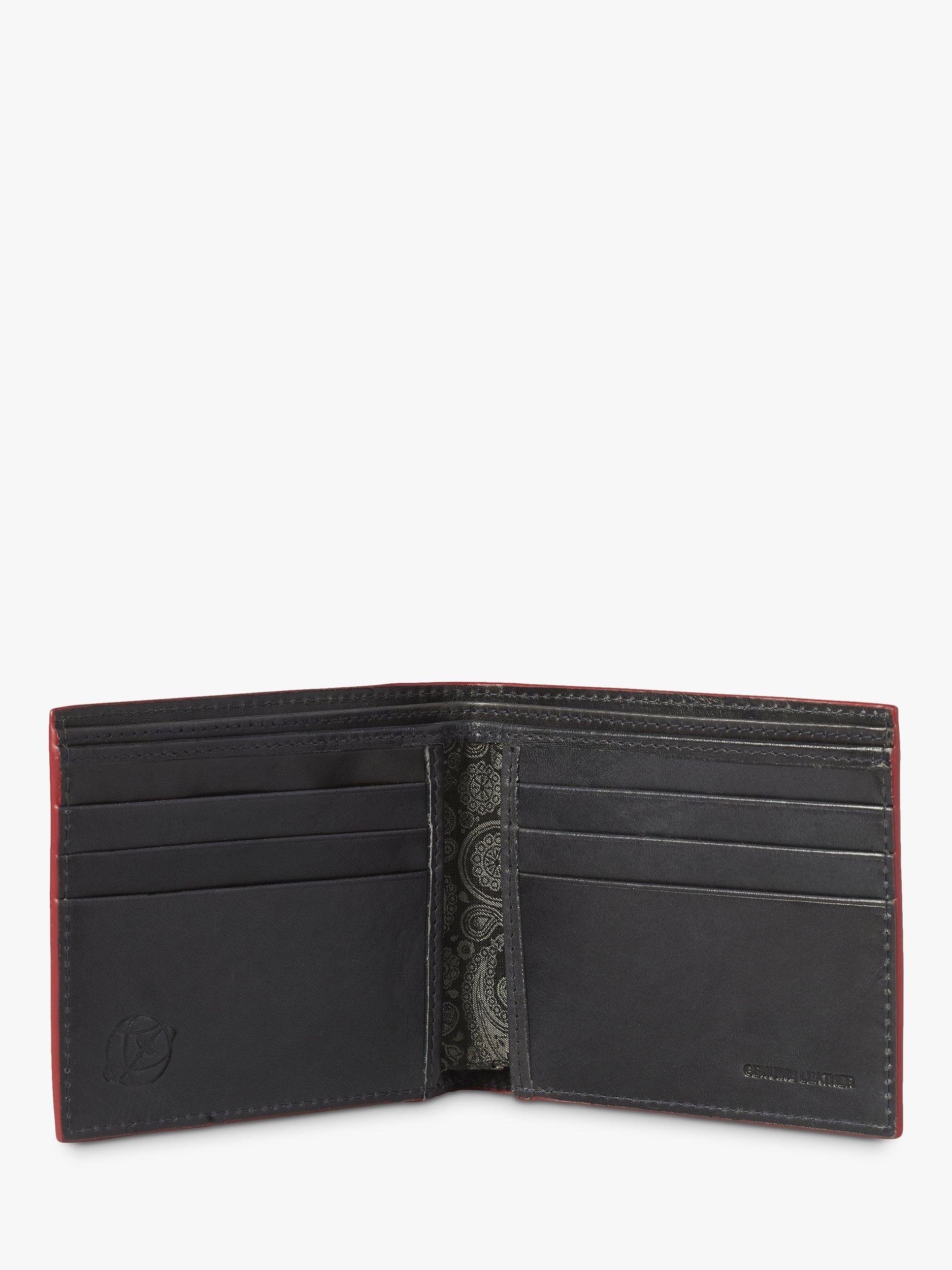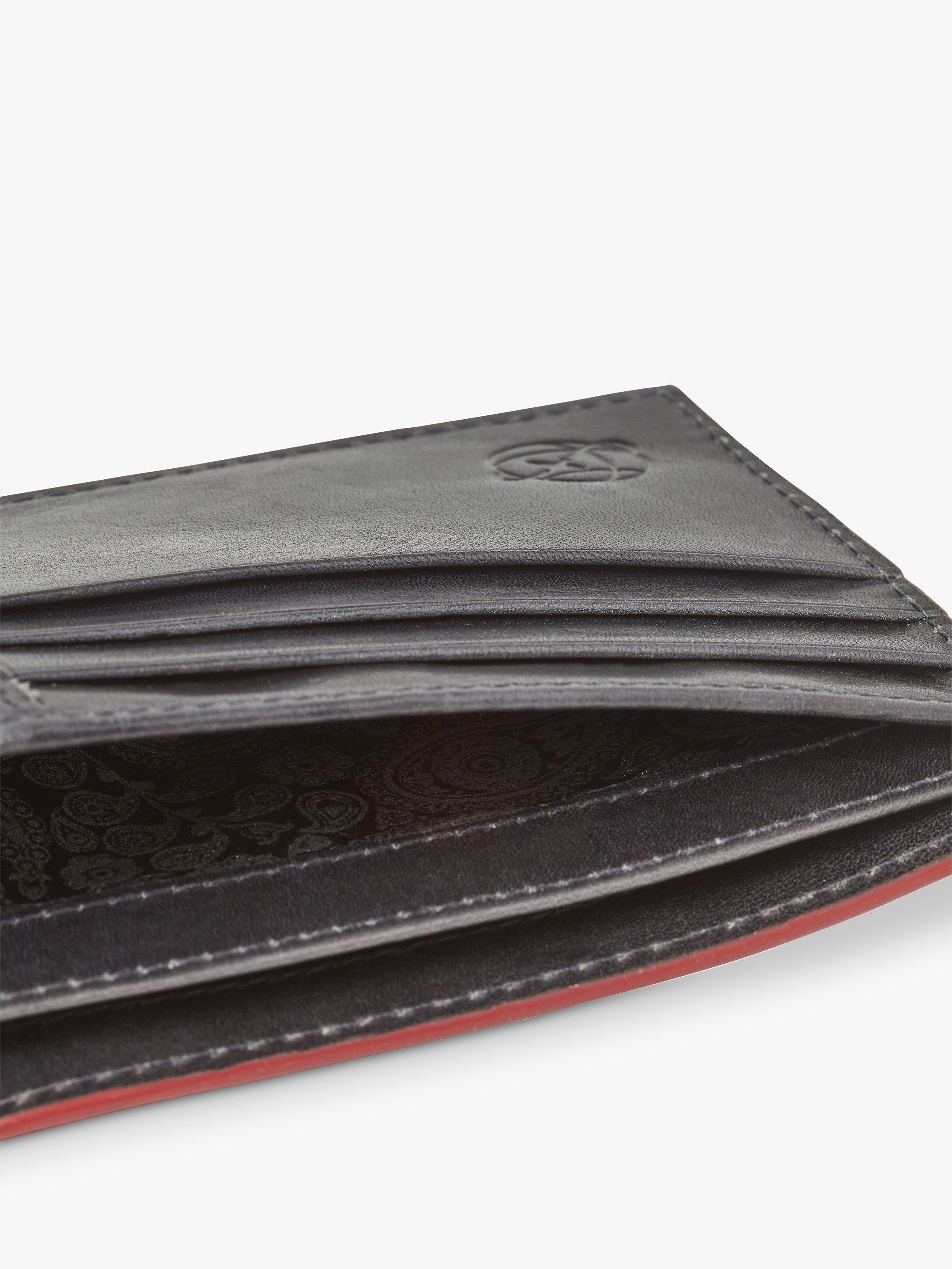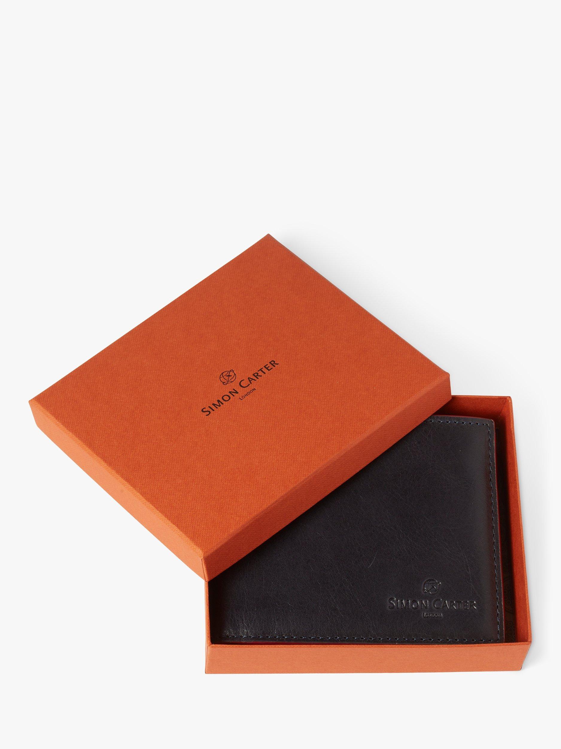 Made from high quality leather, this useful jeans wallet features six card compartments, two for notes and two side compartments. The wallet is lined with an in-house paisley jacquard lining and finished with a Simon Carter signature piped edge to contrast nicely with the deep leather tone.