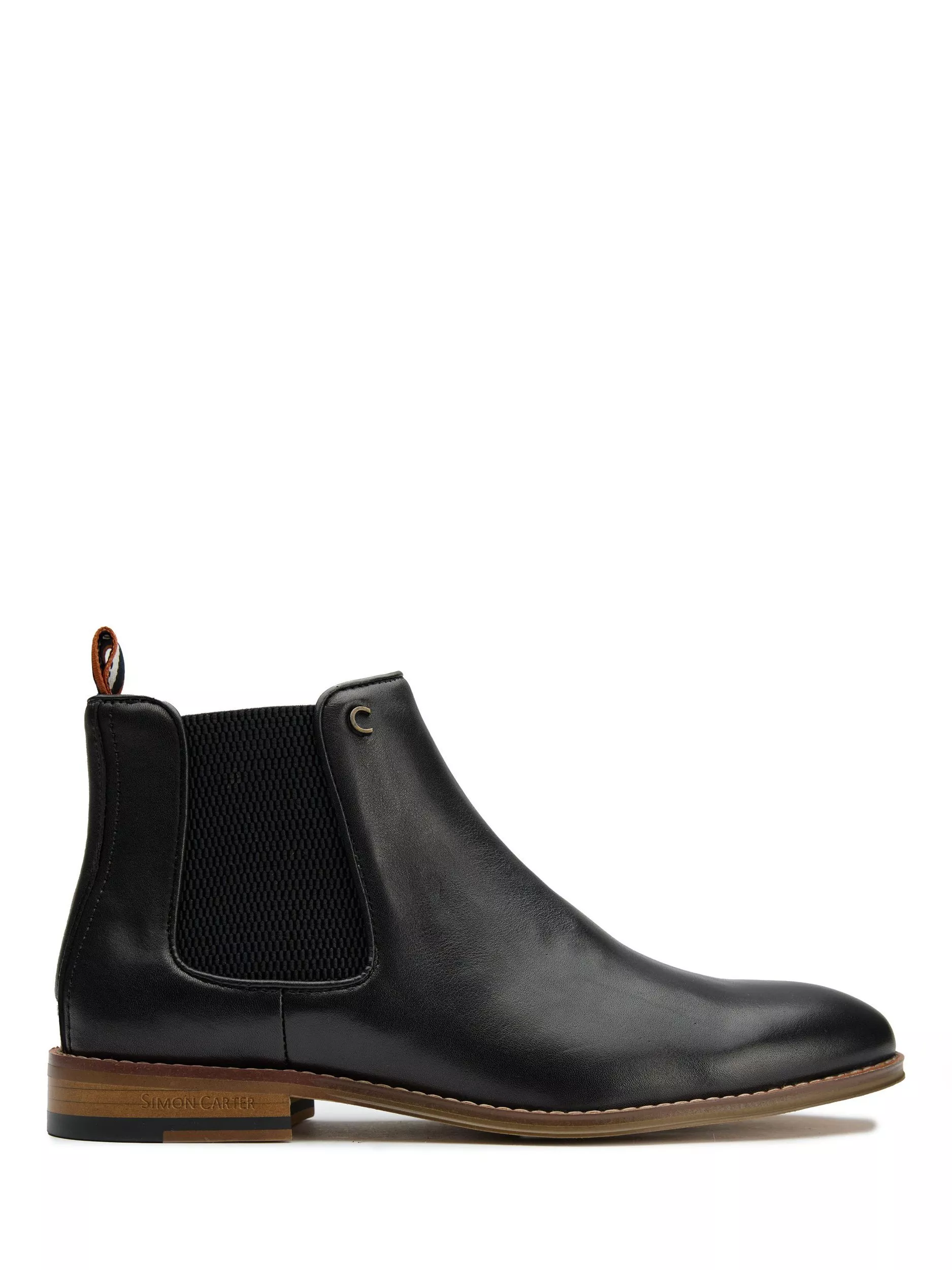 Chelsea boots with a smooth leather upper, designer branded textile heel tab, fine leather heel detail and exclusive printed lining and sock. These exclusive Simon Carter men's boots are your stylish staple for all occasions.