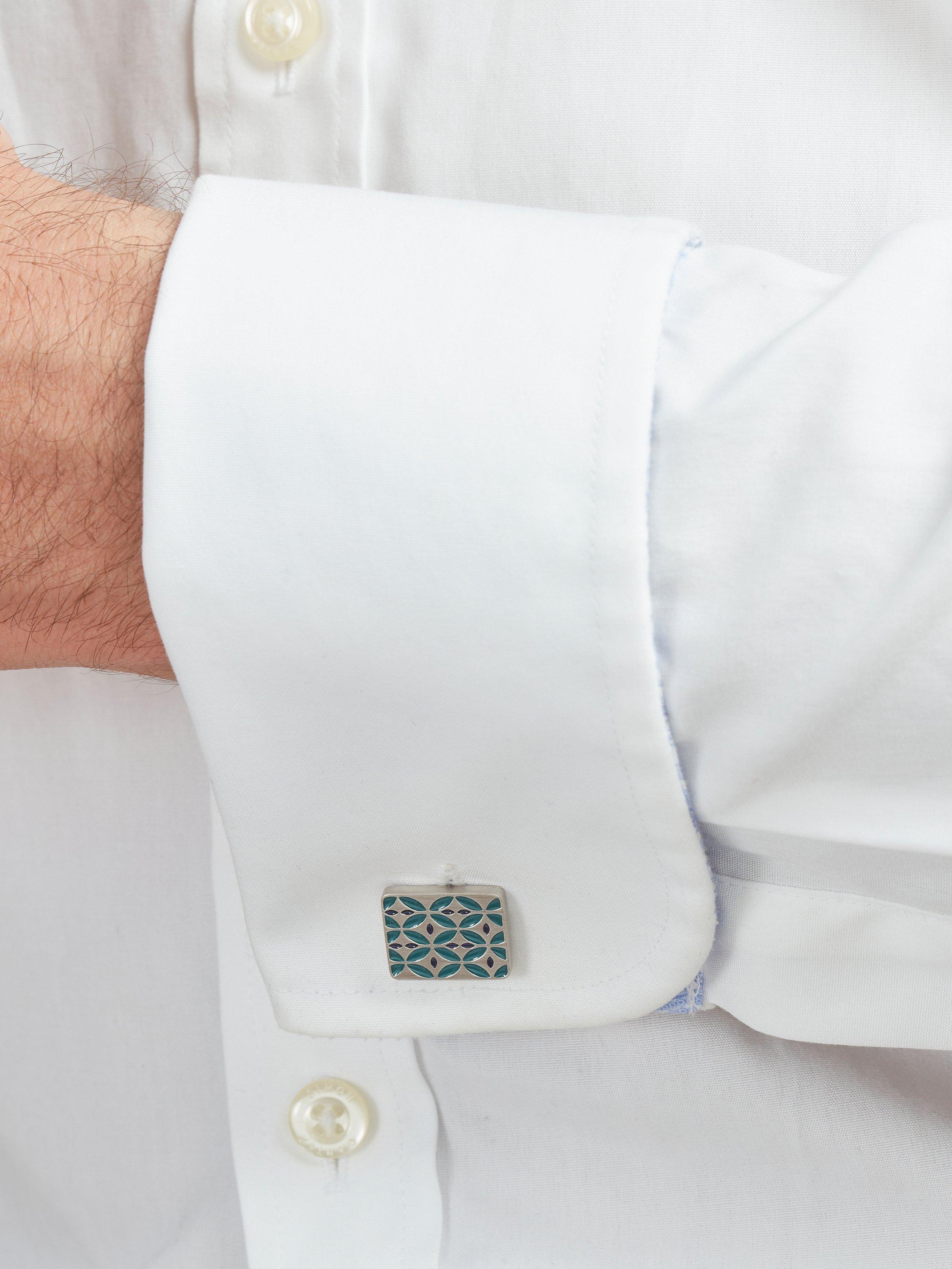 An enamelled retro pattern features on these brushed finish rectangular cufflinks.