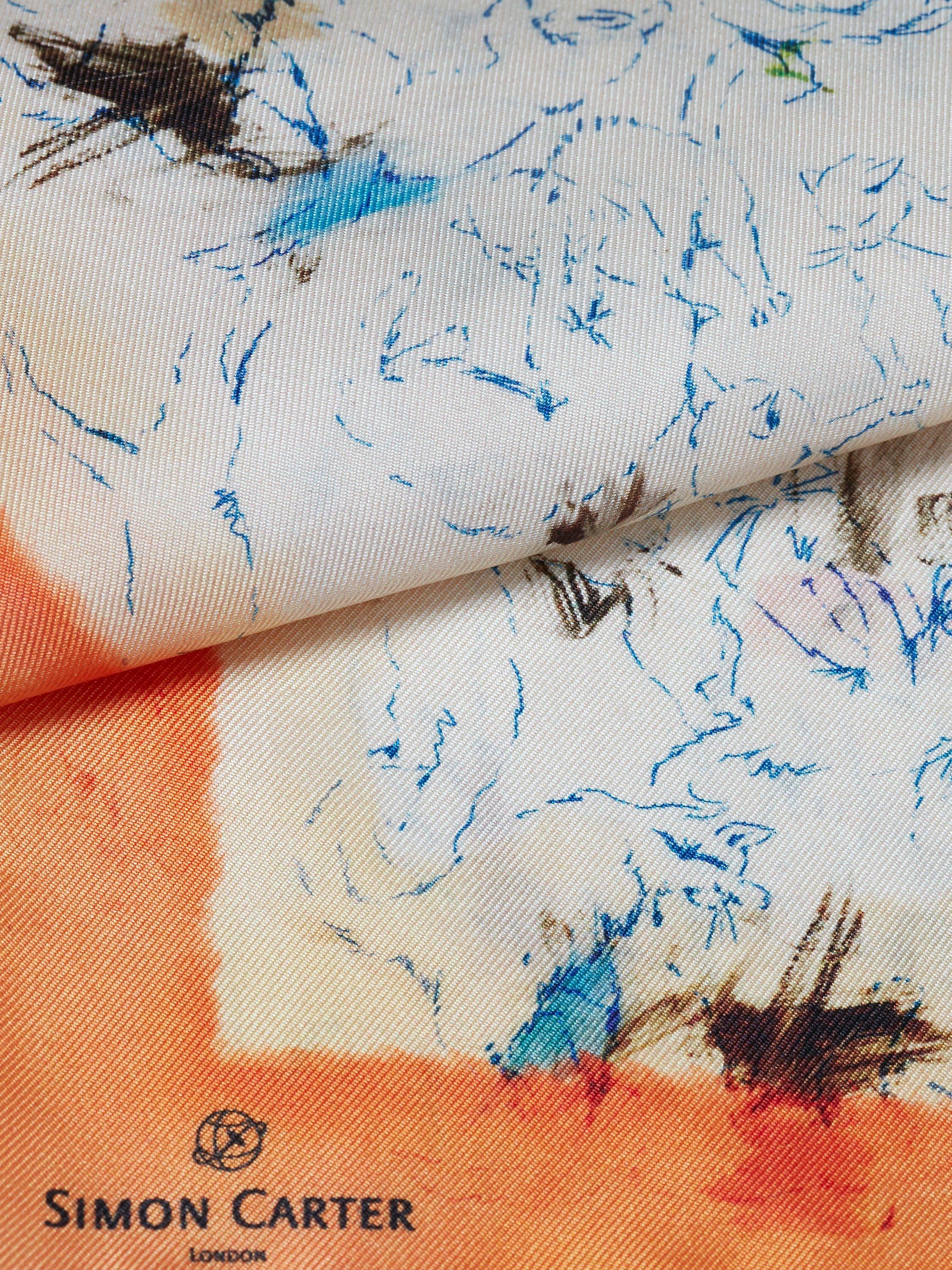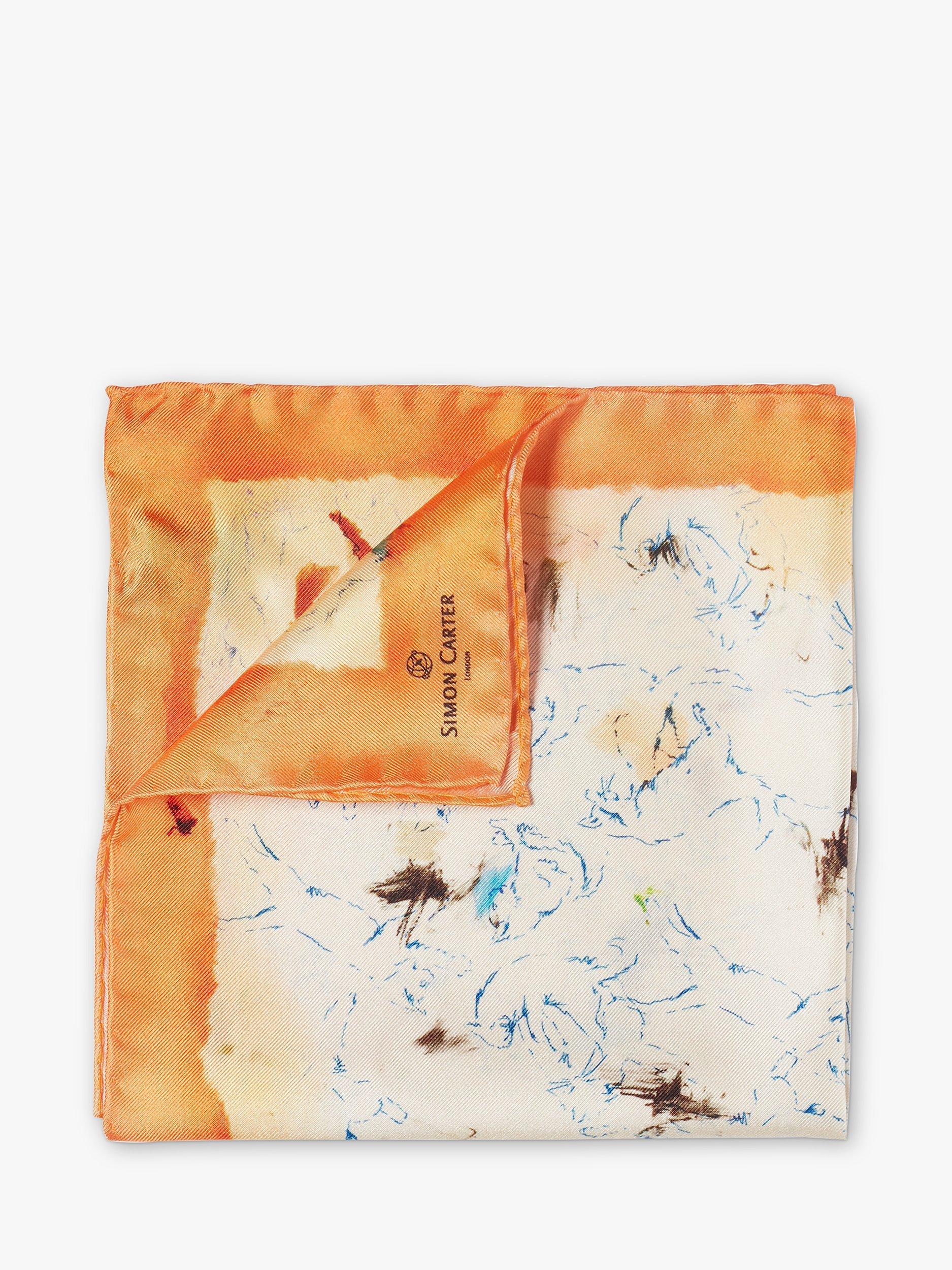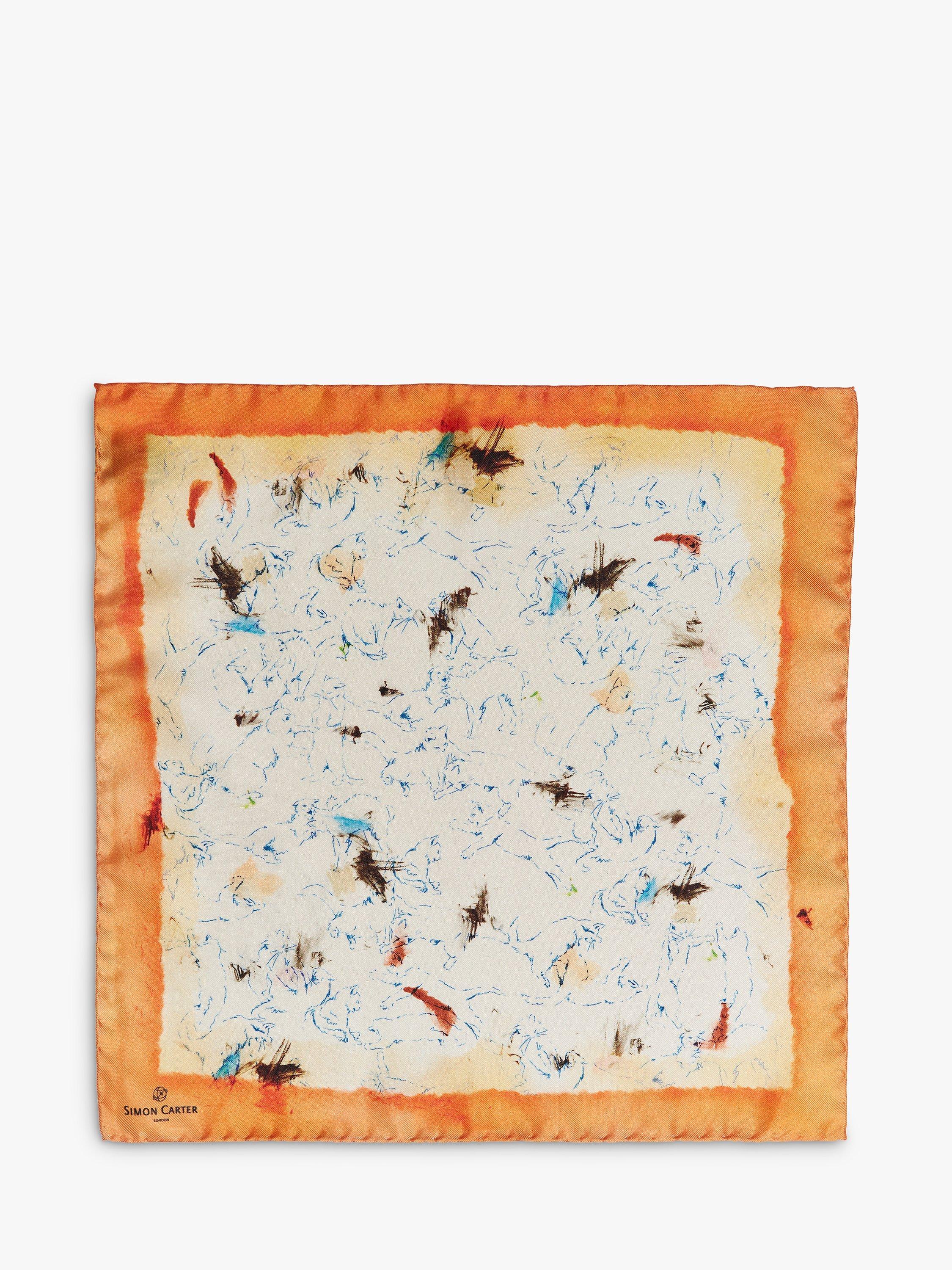 Simon CarterItalian Silk Cat Attack Pocket Square, Orange/Multi
