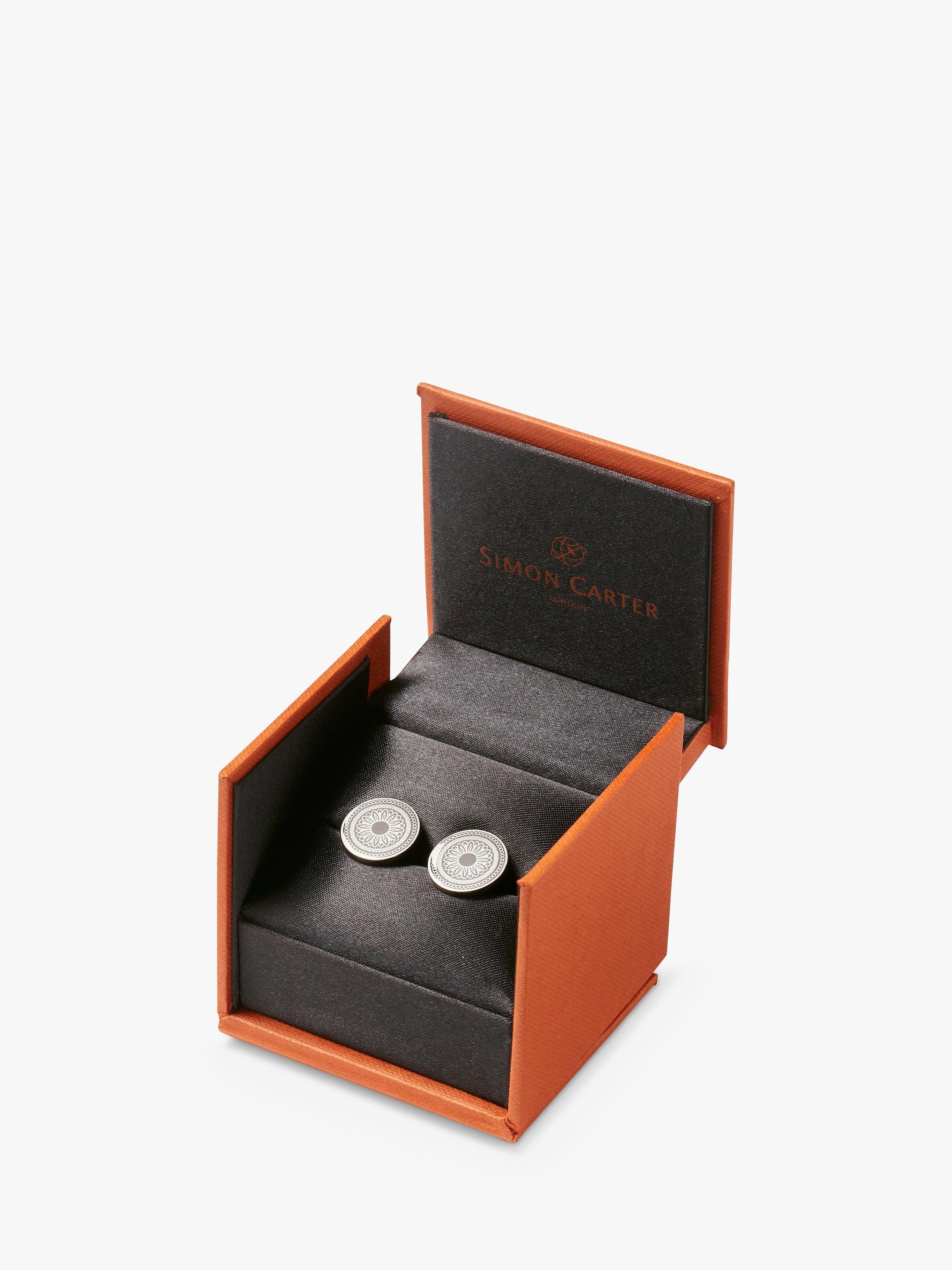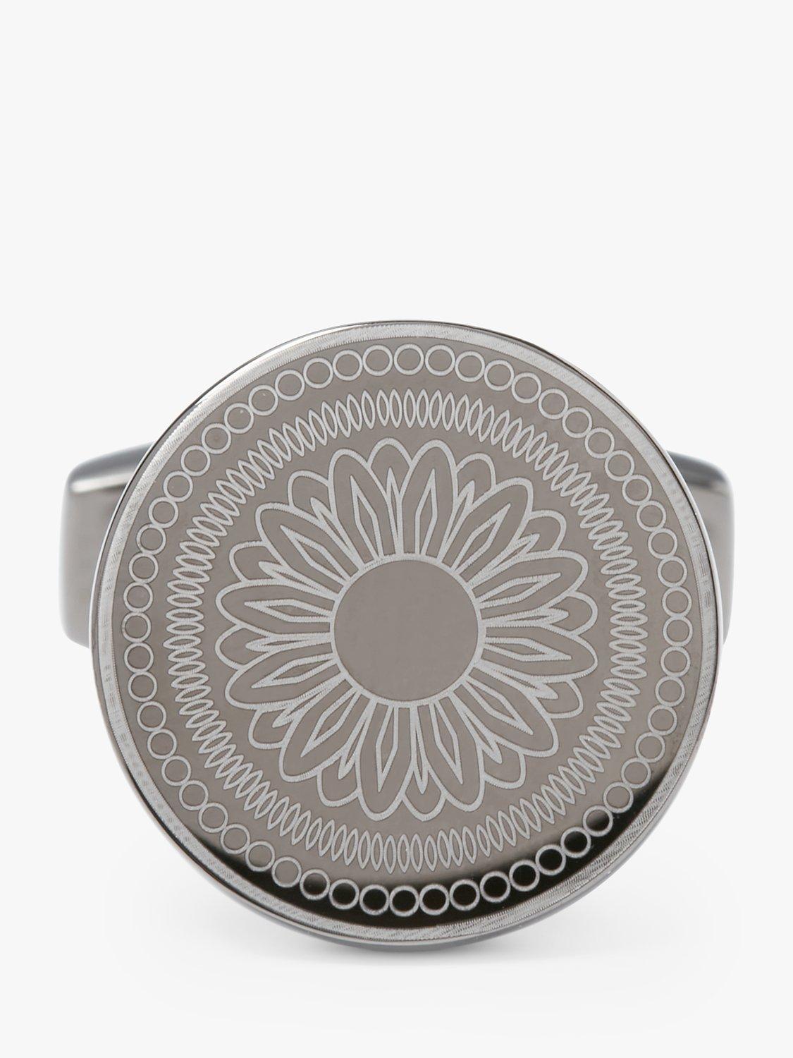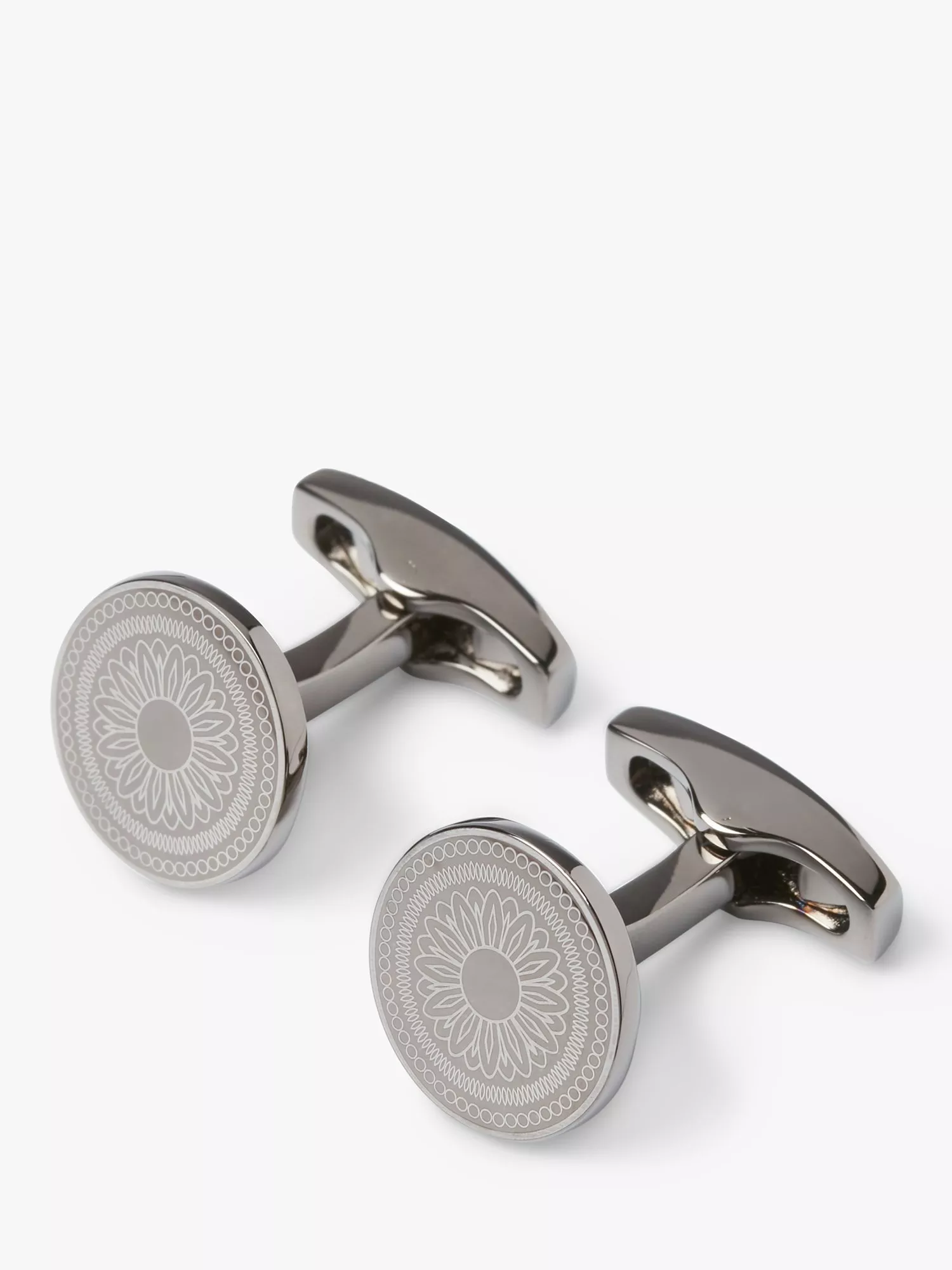 Simon Carter presents these round gunmetal cufflinks laser engraved with a vintage button design and completed with a swivel fixing.