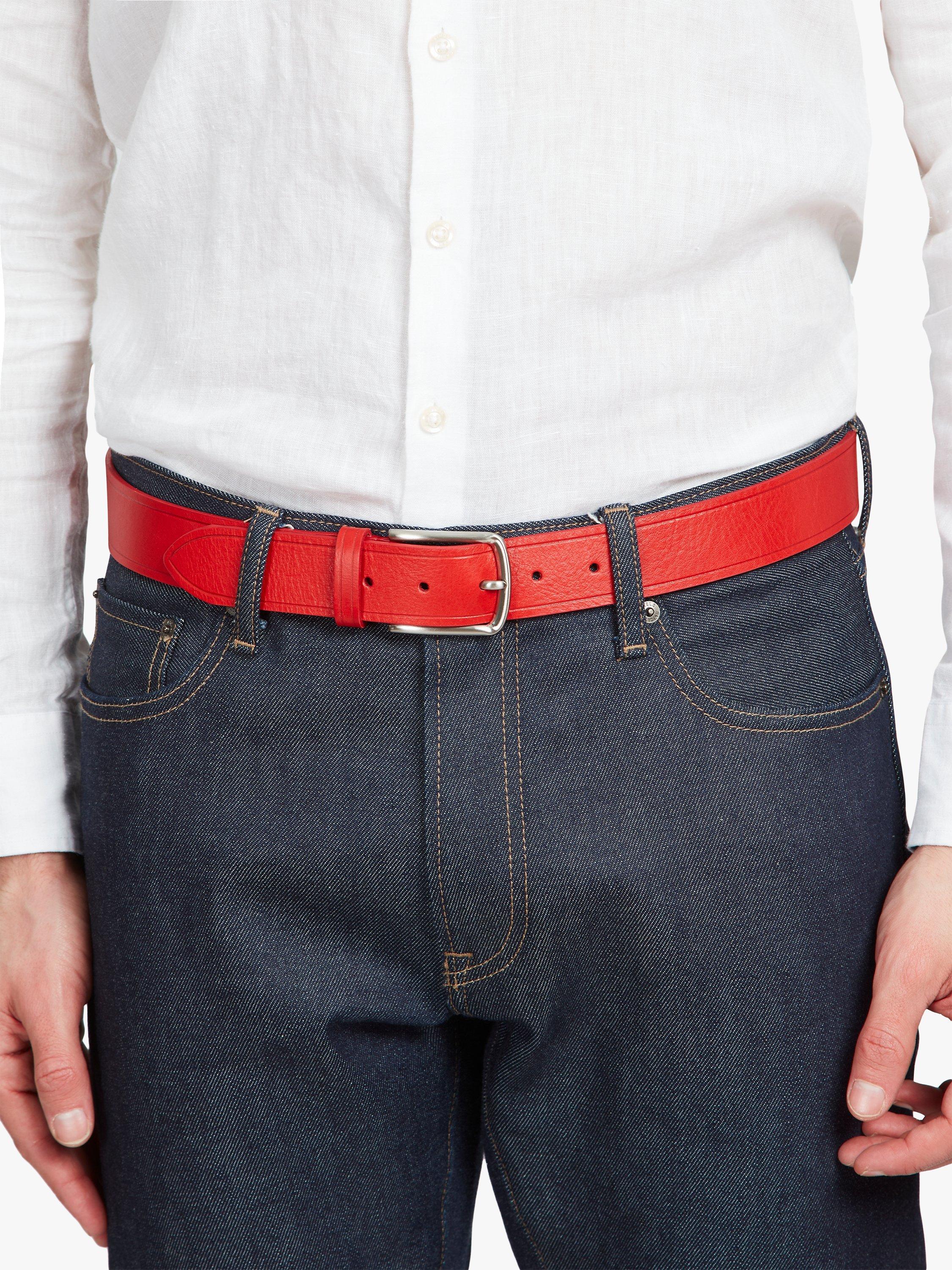 Reinforced with a leather makeup for a long wearing piece, this belt by Simon Carter effortlessly suits a smart wardrobe.