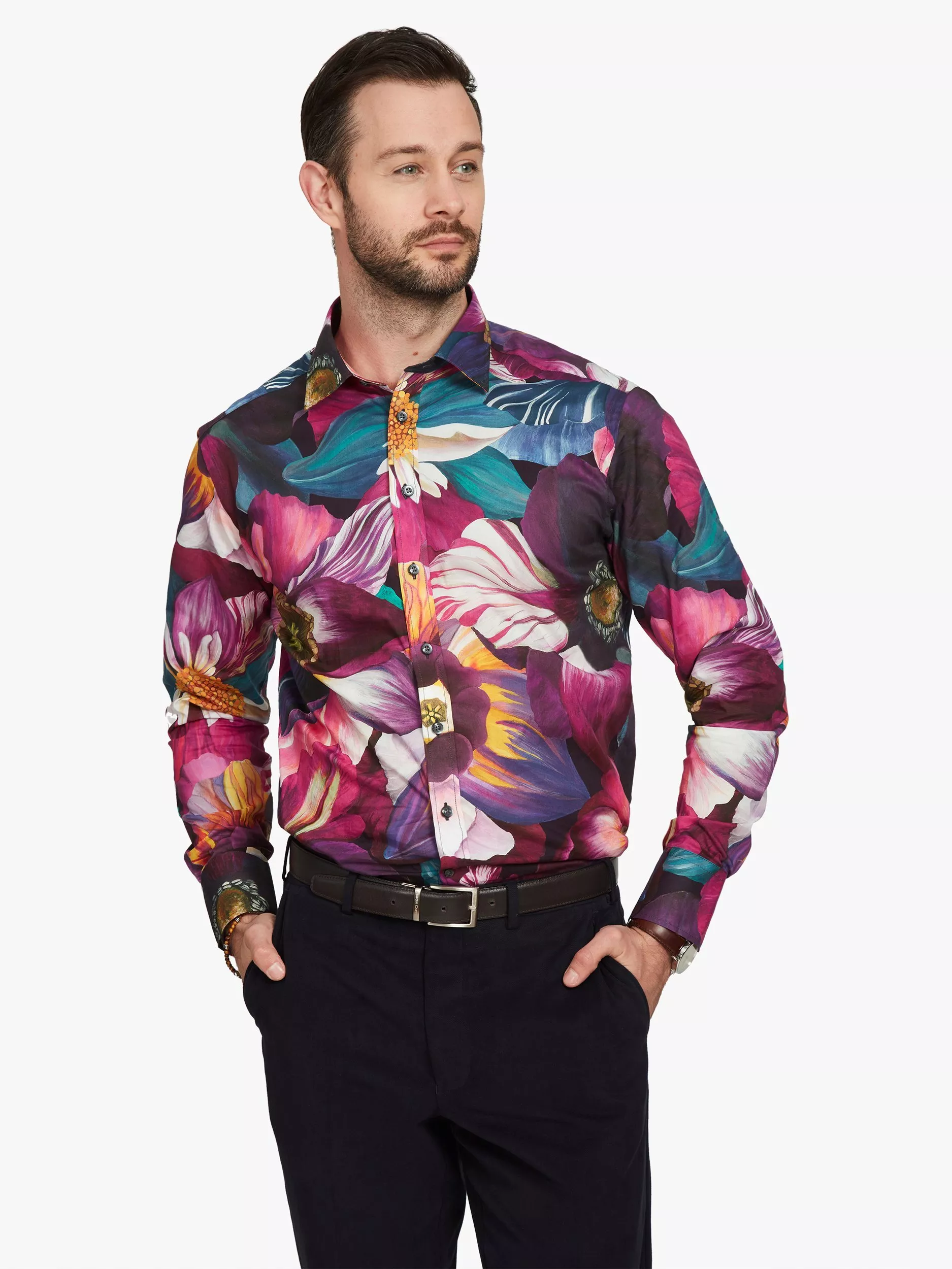 The statement pattern on this gently tailored shirt combines several different petals from various plants together, creating the large-scale bloom design. It's a bold shirt, but it's surprisingly easy to wear. If you want to tone things down, layer over a linen jacket or shacket. It's made from Liberty Tana® lawn cotton and features a three-button cuff.
