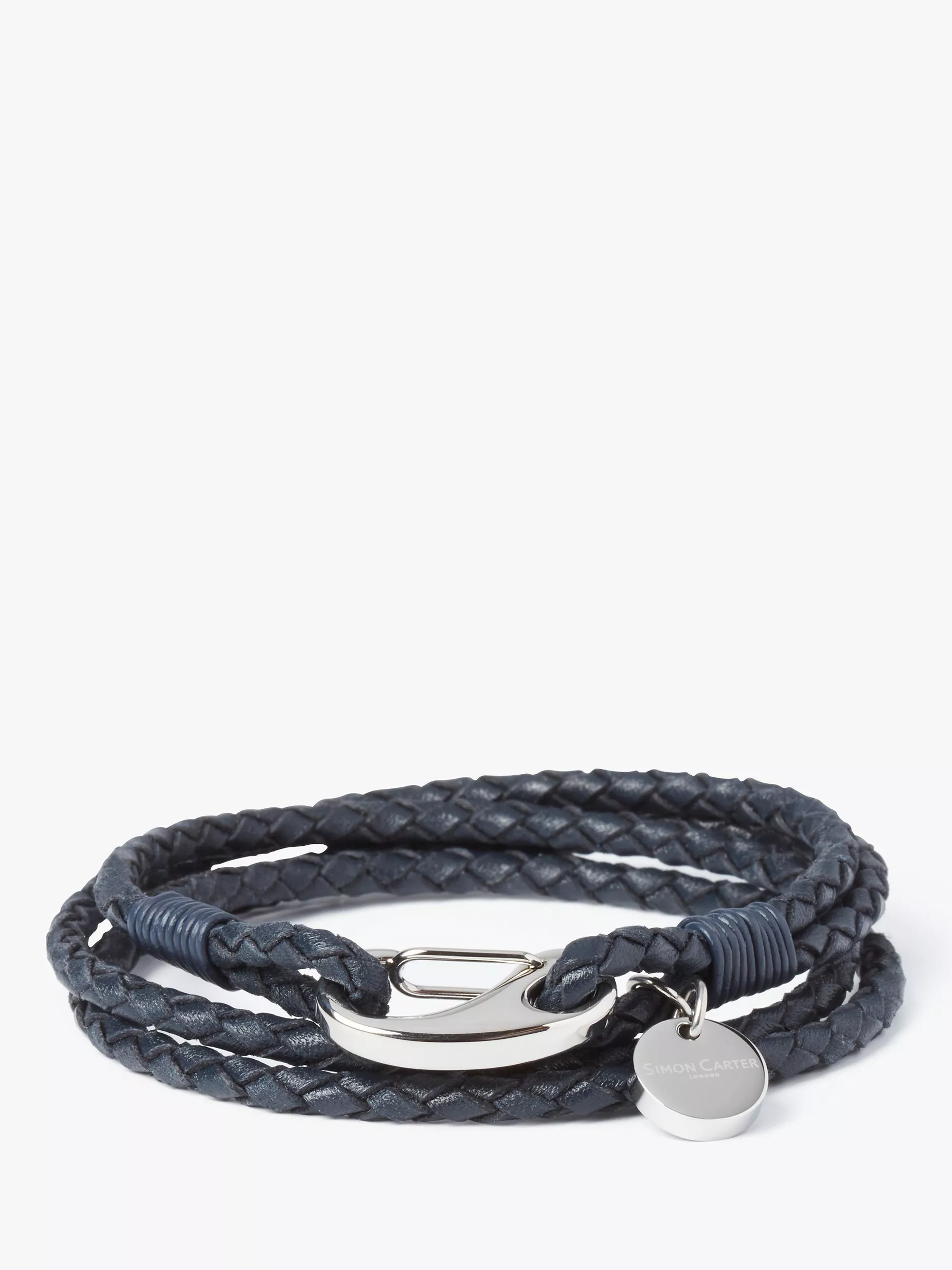 Simon CarterMen's Padstow Leather Wrap Bracelet, Navy