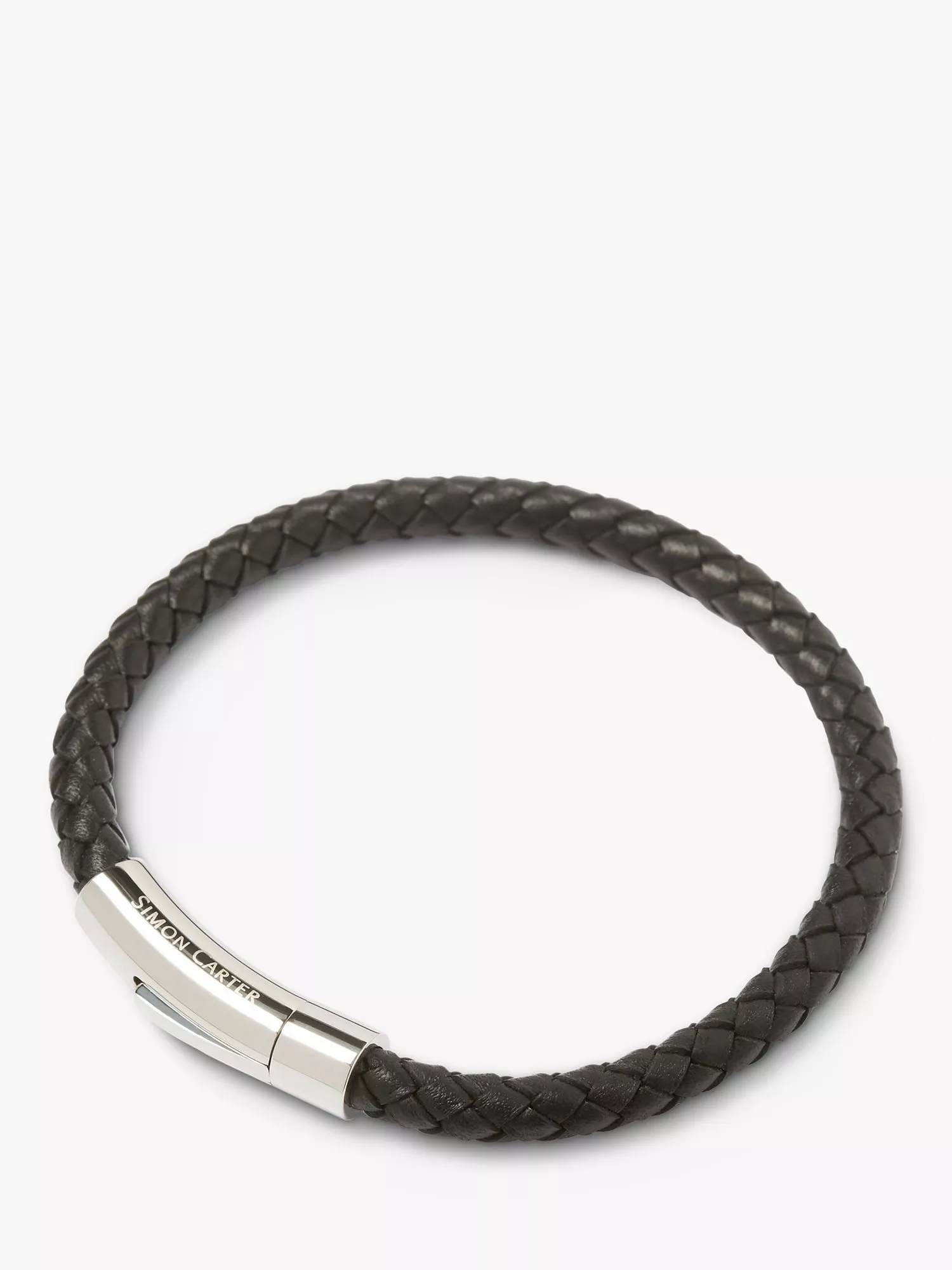 A sporty piece of men's jewellery, this casual Simon Carter leather bracelet presents a leather braided finish and a trigger clasp.