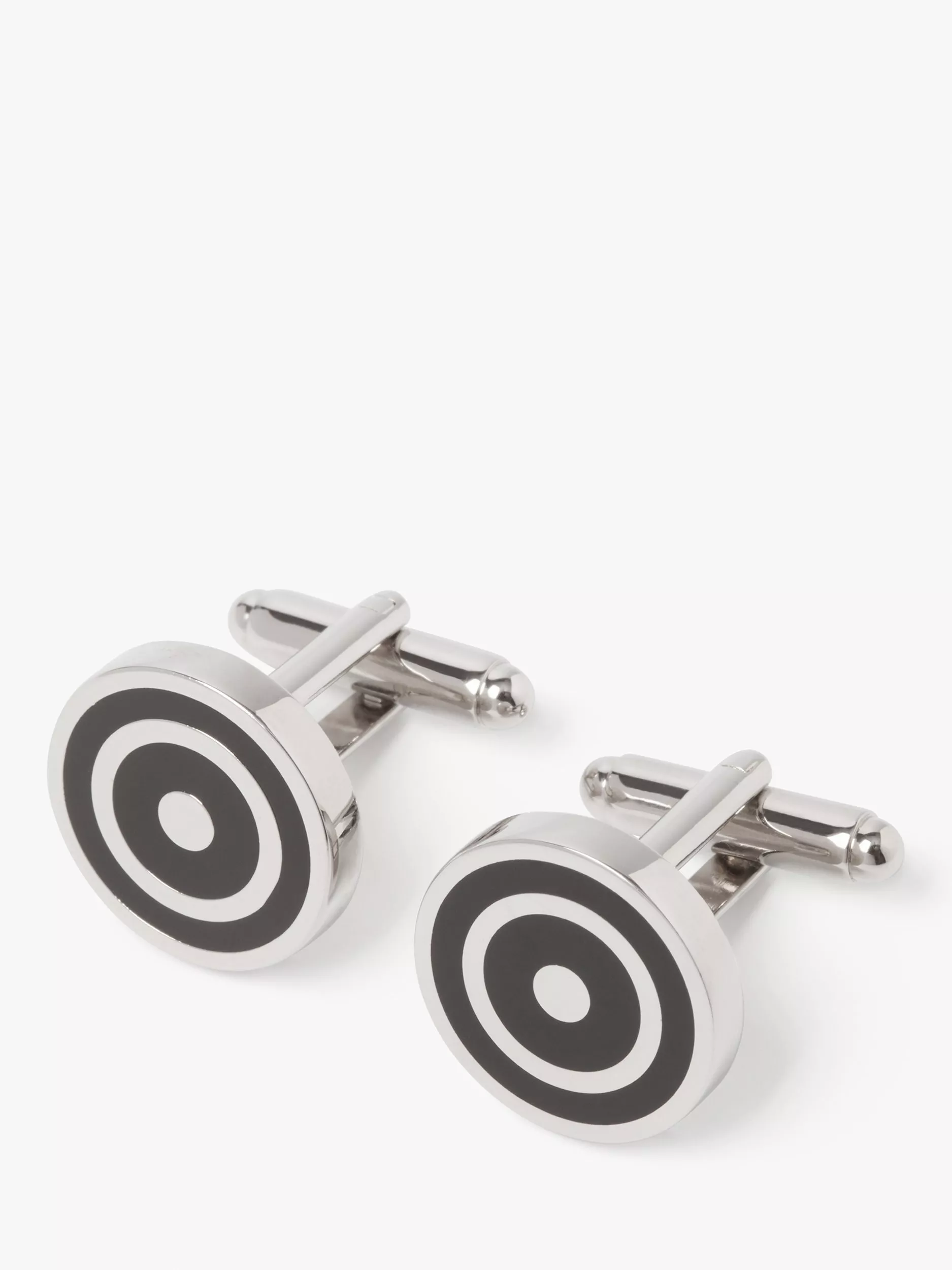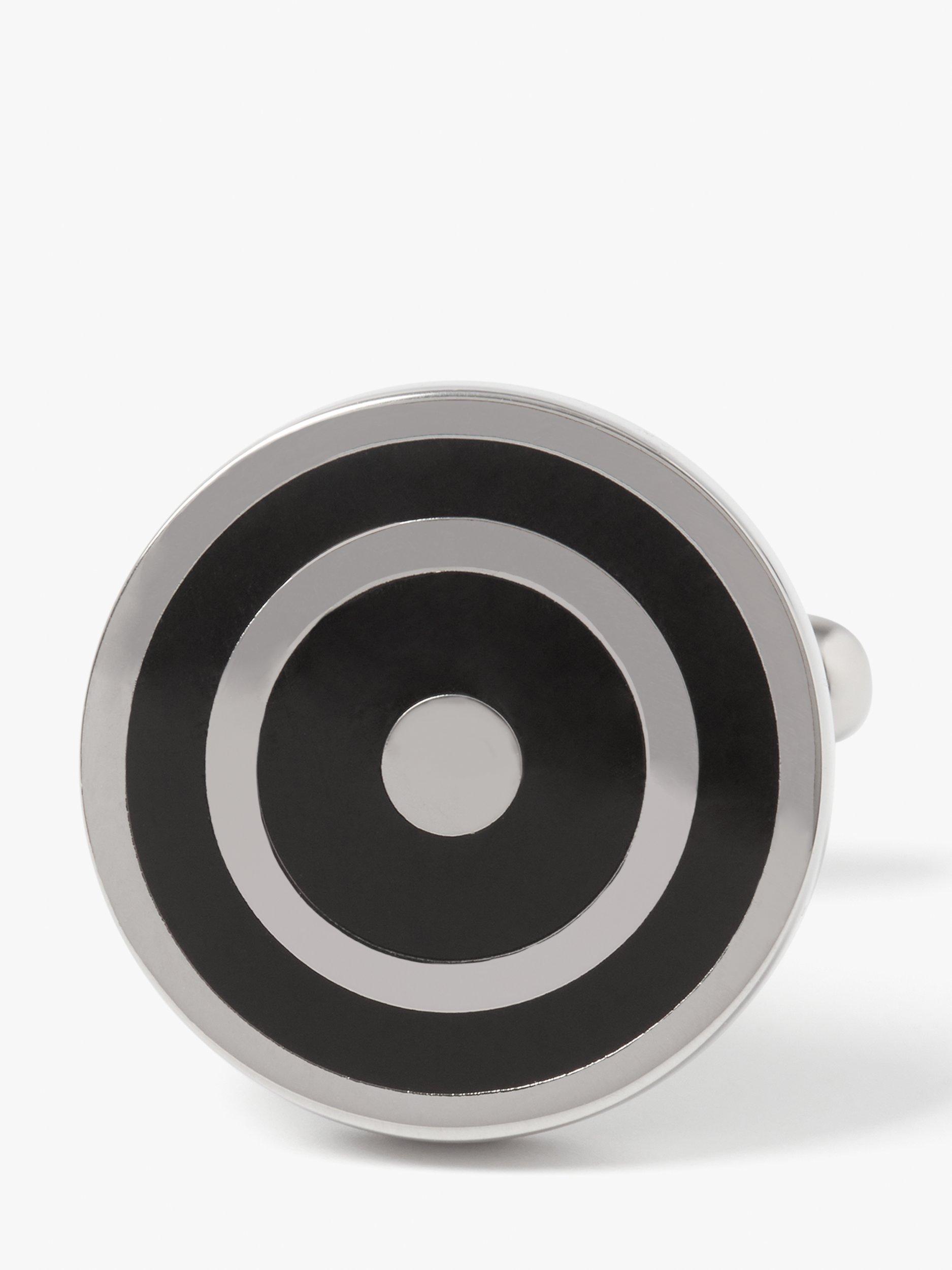Two black, enamelled concentric circles create an eye-catching yet simple cufflink design that adds a smart finishing touch to your outfit.