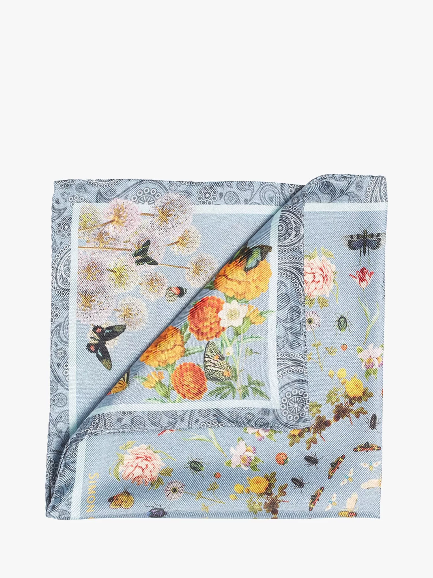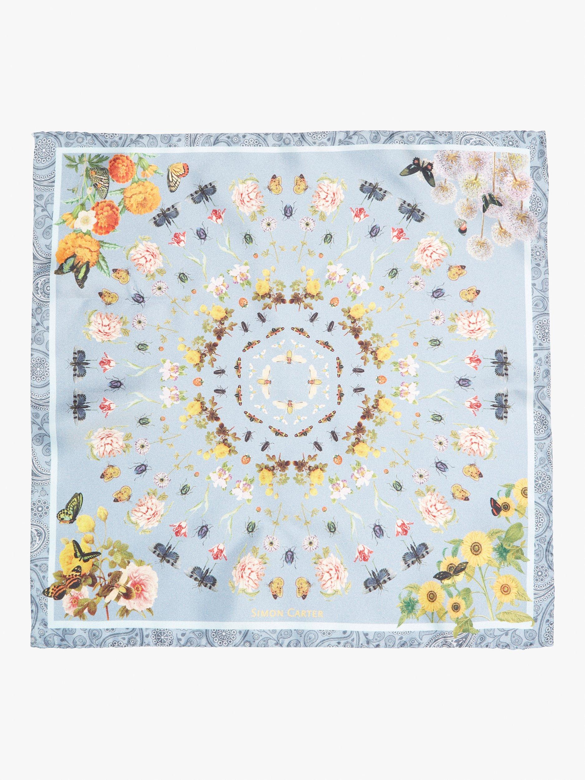 Simon CarterSilk Botanical Pocket Square, Blue Multi