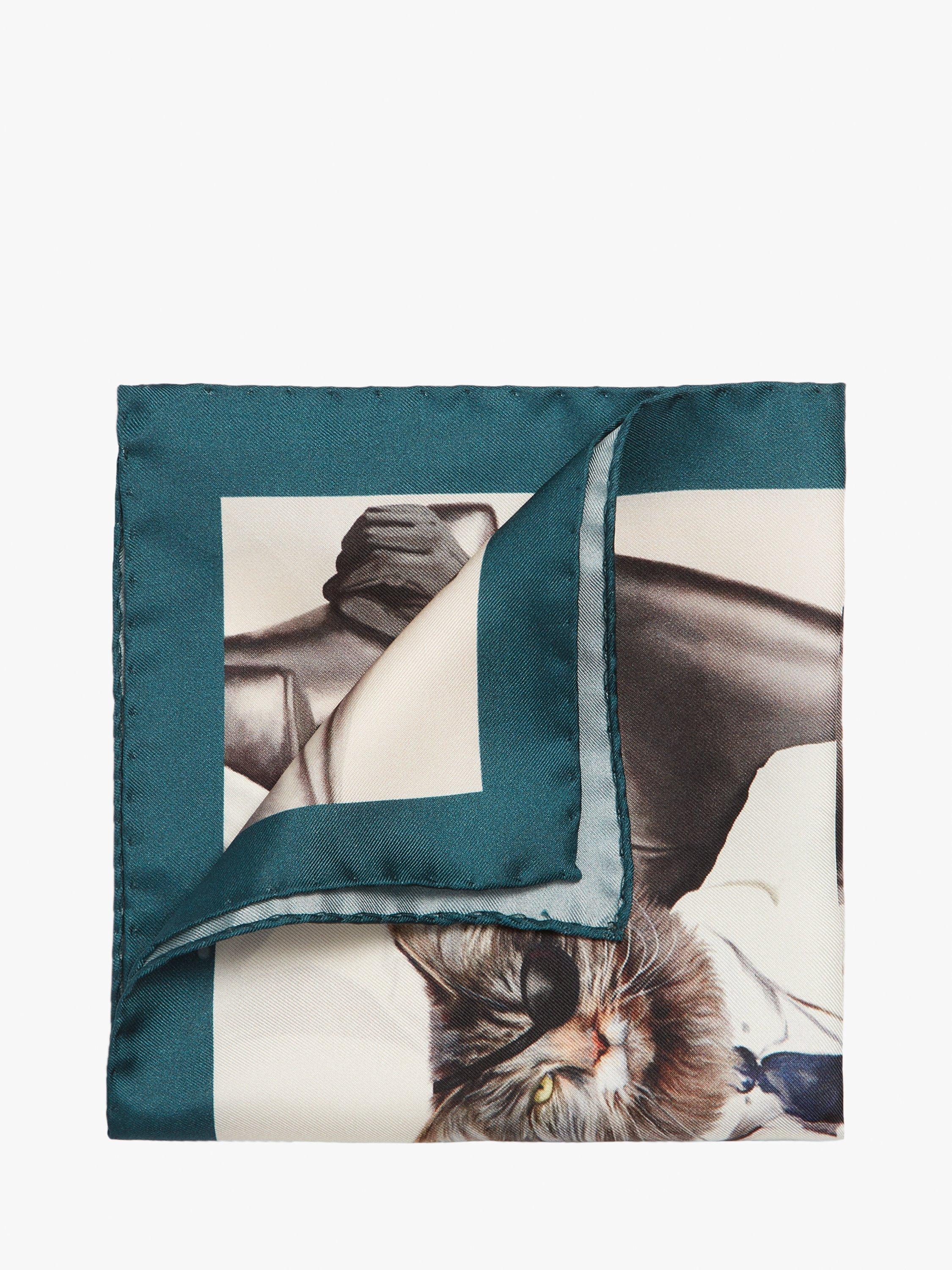 Crafted from pure silk, complete your sartorial selection with this elegant pocket square. Featuring a beautifully drawn 'evil cat' design, it's the gent's ideal finishing touch.