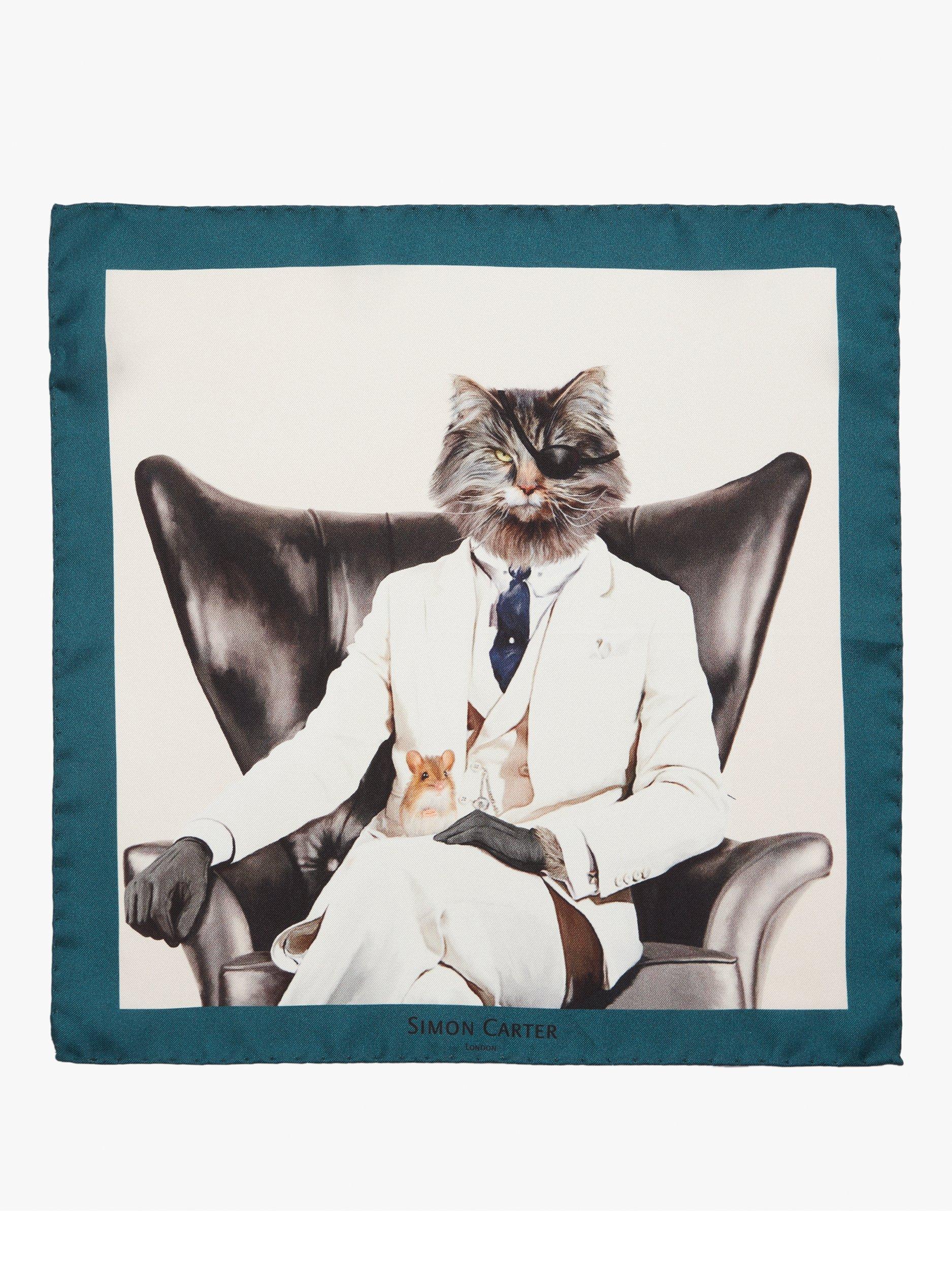 Simon CarterSilk Evil Cat Pocket Square, Blue Multi
