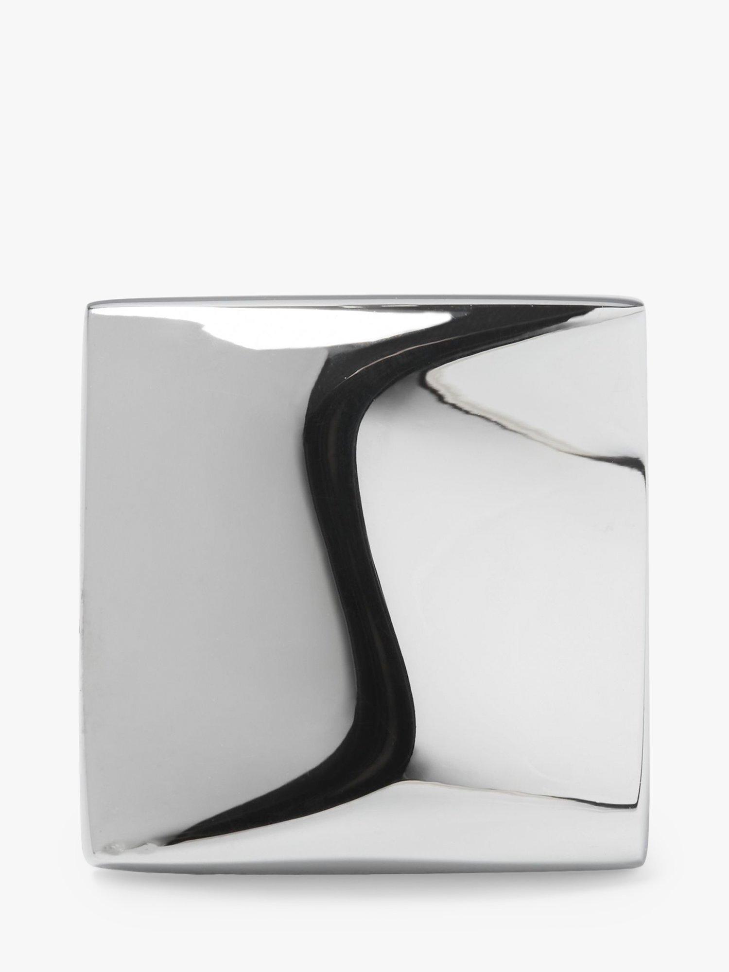 Featuring an organic square shape with a highly polished finish they're are sculptural, simple and elegant and easily attach at the back with a swivel bar fastener.