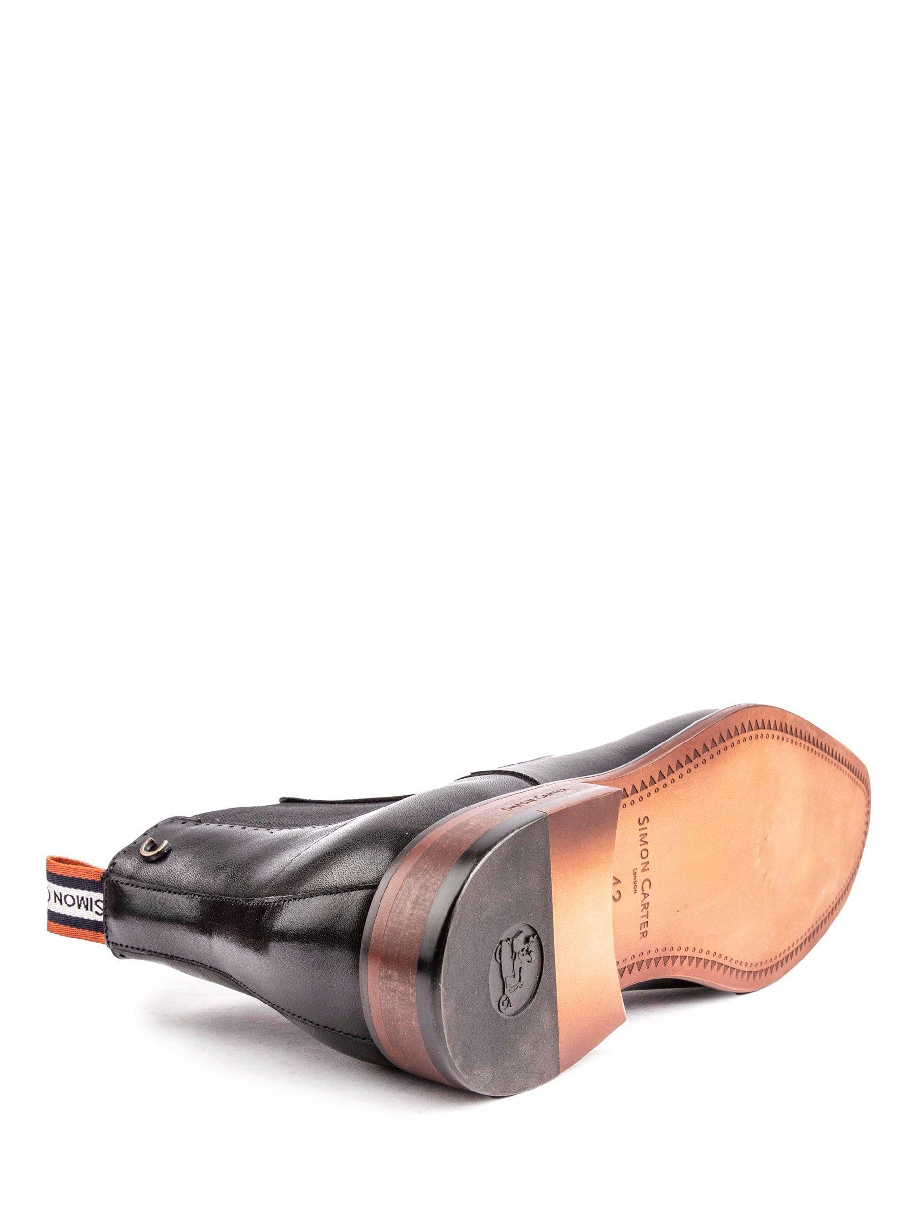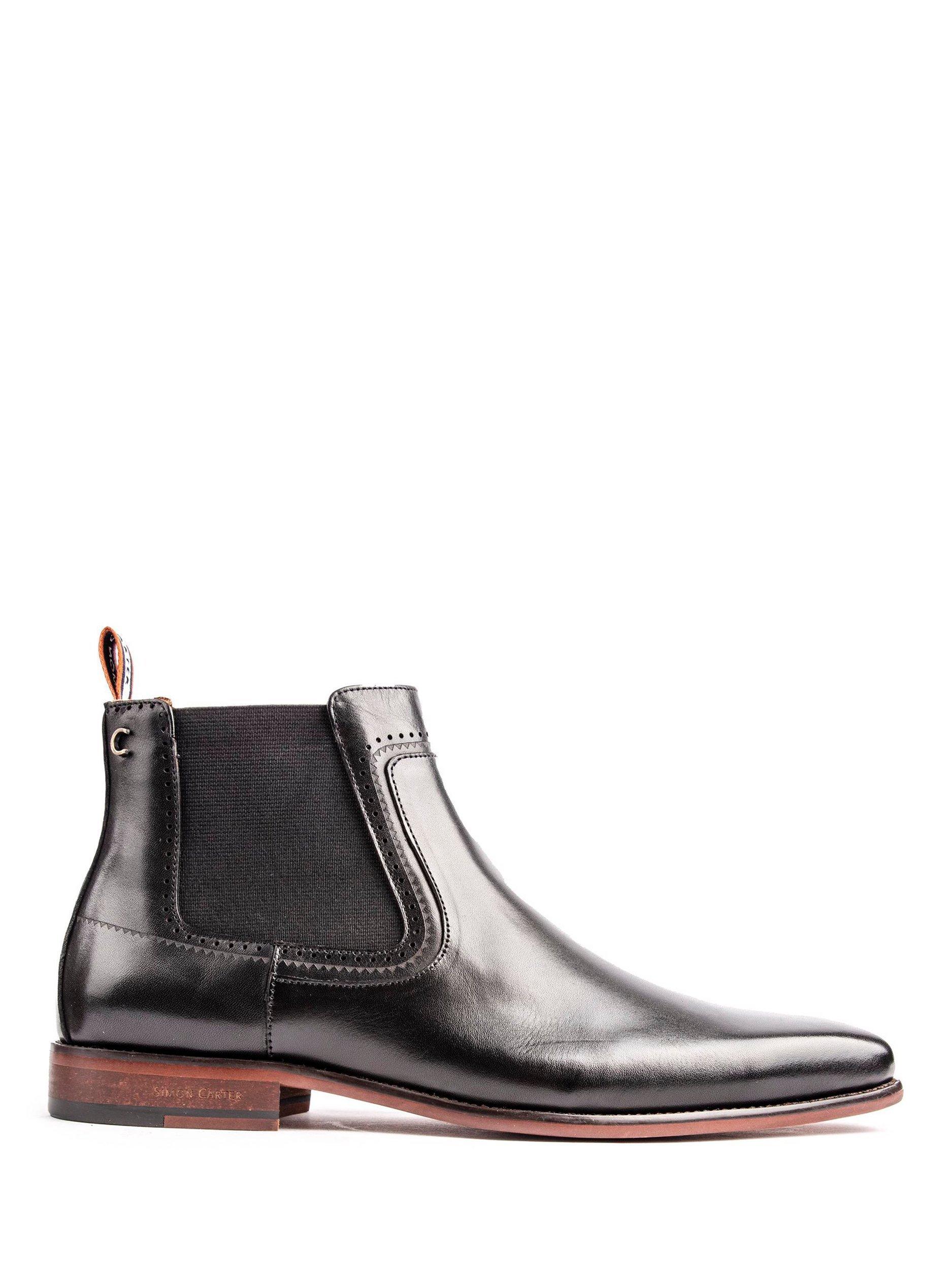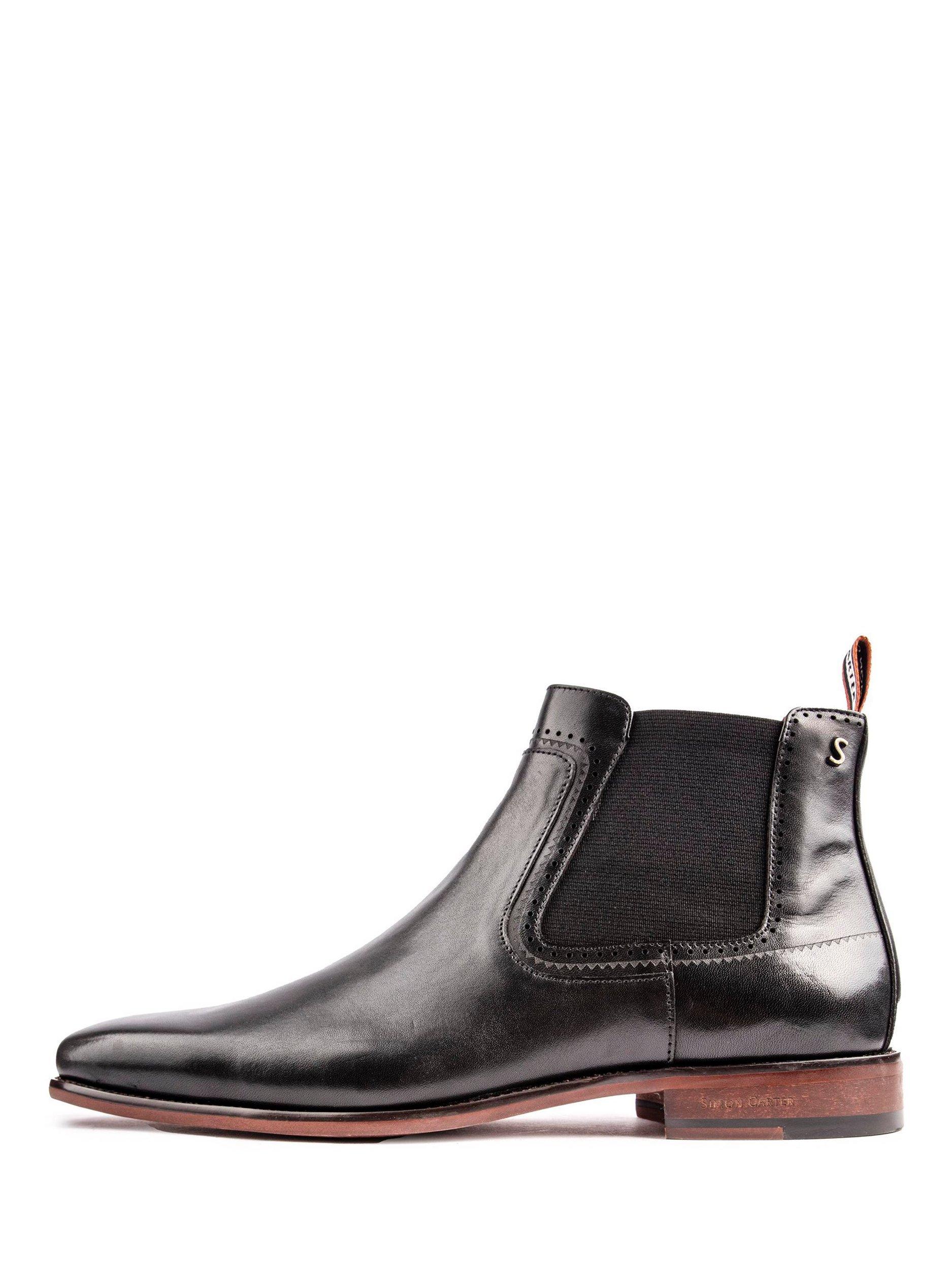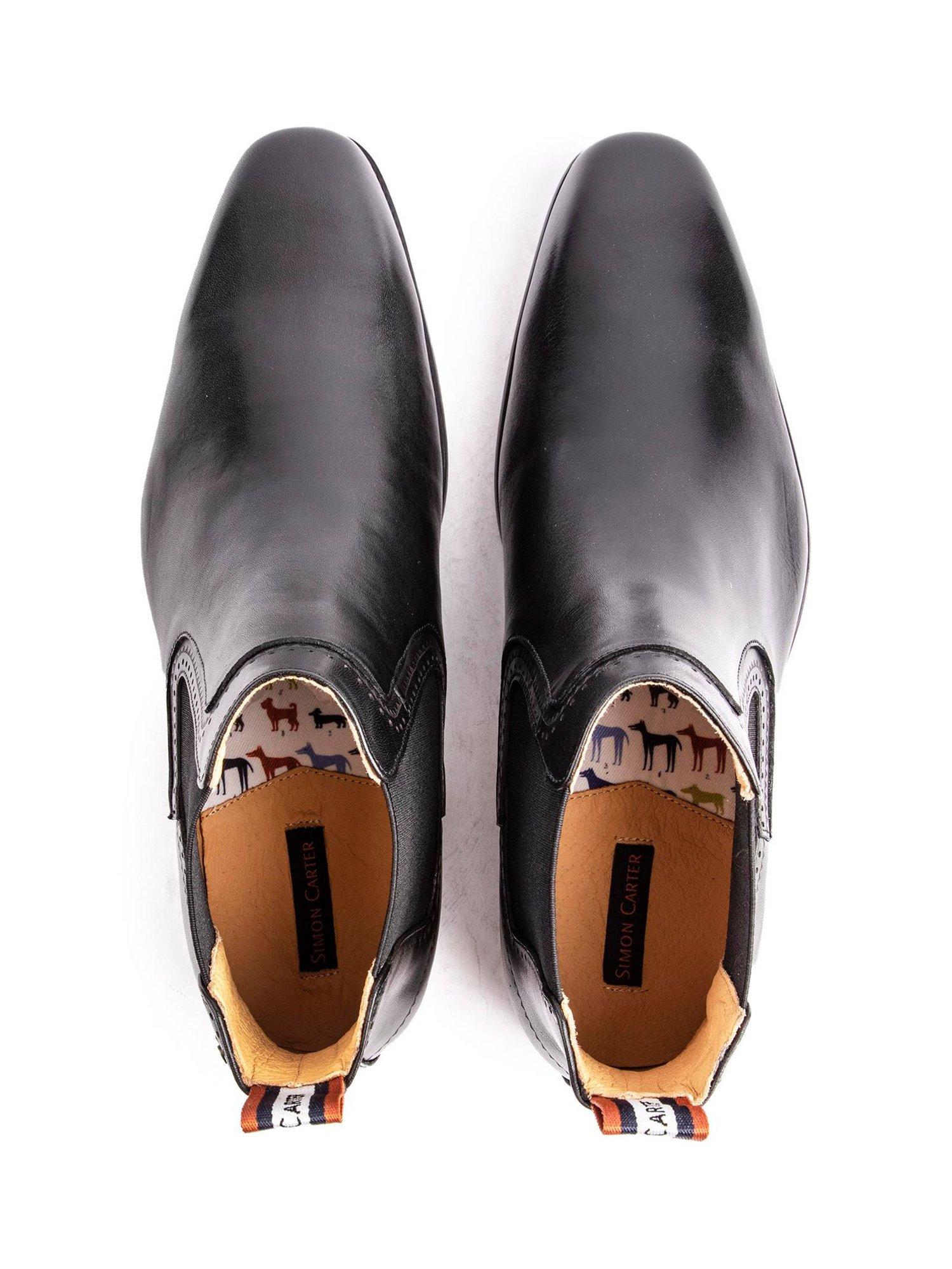From Simon Carter, these Terrier pull-on Chelsea boots have a smooth leather upper, double elasticated gussets and delicate stitch detailing.