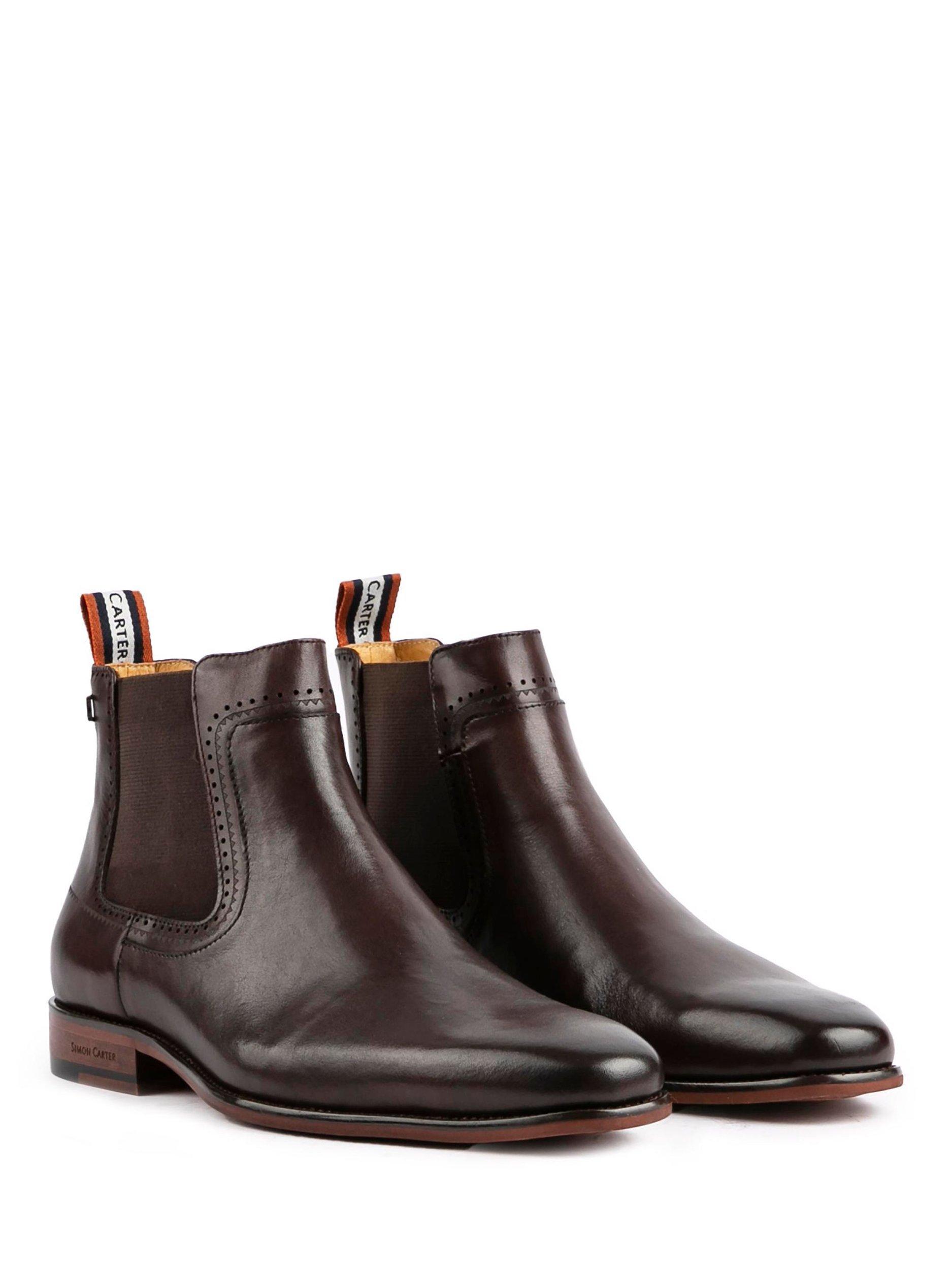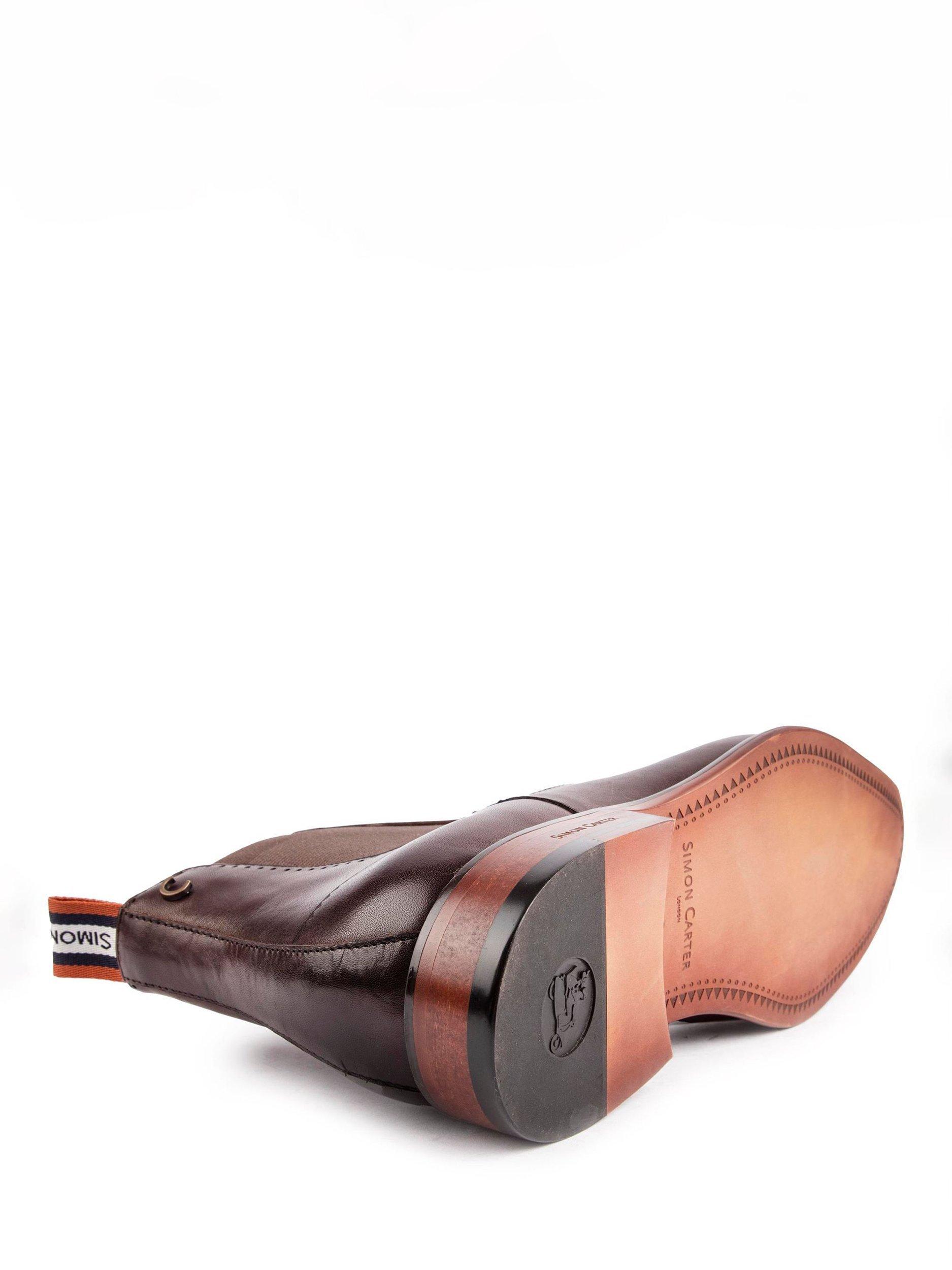 From Simon Carter, these Terrier pull-on Chelsea boots have a smooth leather upper, double elasticated gussets and delicate stitch detailing.