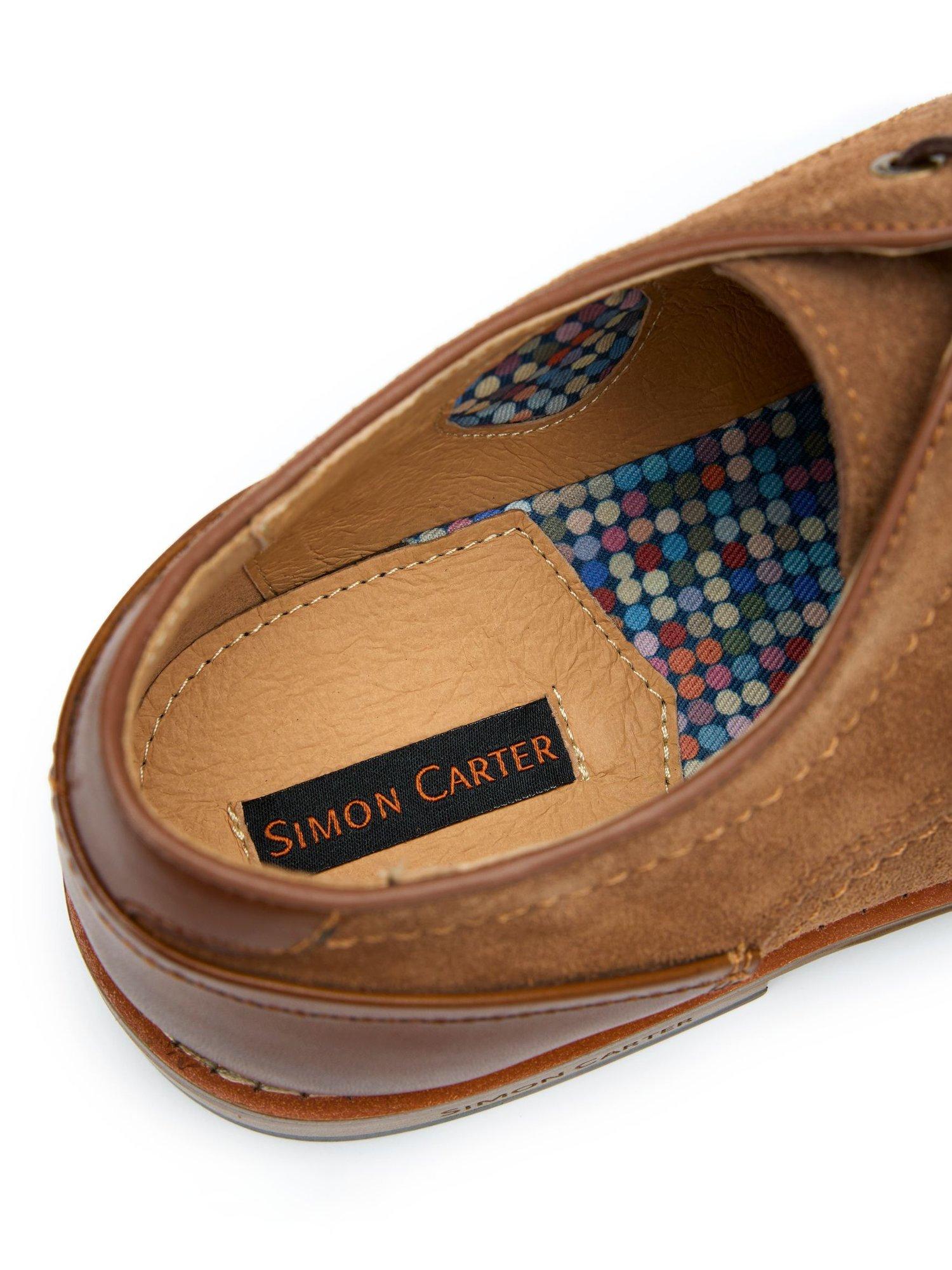From Simon Carter, these casual lace-up Weir shoes have been made from suede and feature leather detailing on the heel and a colourful Simon Carter-designed sock print.