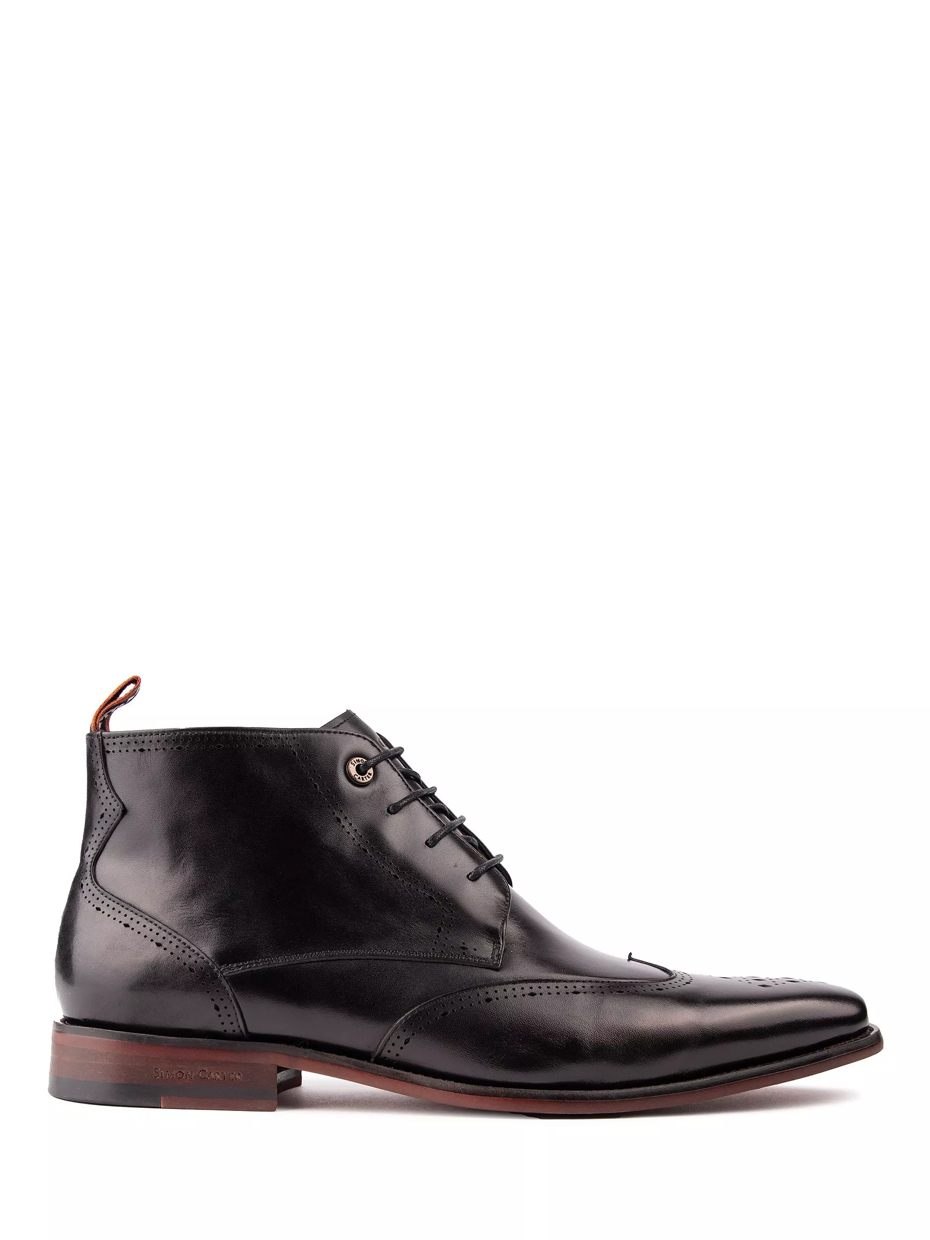 What truly sets them apart are the charming and tasteful embellishments inspired by Simon Carter's signature style. From intricate brogue detailing to discreetly integrated whimsical elements, these boots celebrate individuality in every aspect. Whether you're dressing for a formal occasion or adding character to your everyday ensemble, the Simon Carter Whisker Men's Brogue Chukka Boot promises to be your go-to choice for timeless elegance with a touch of personality. Elevate your style today!