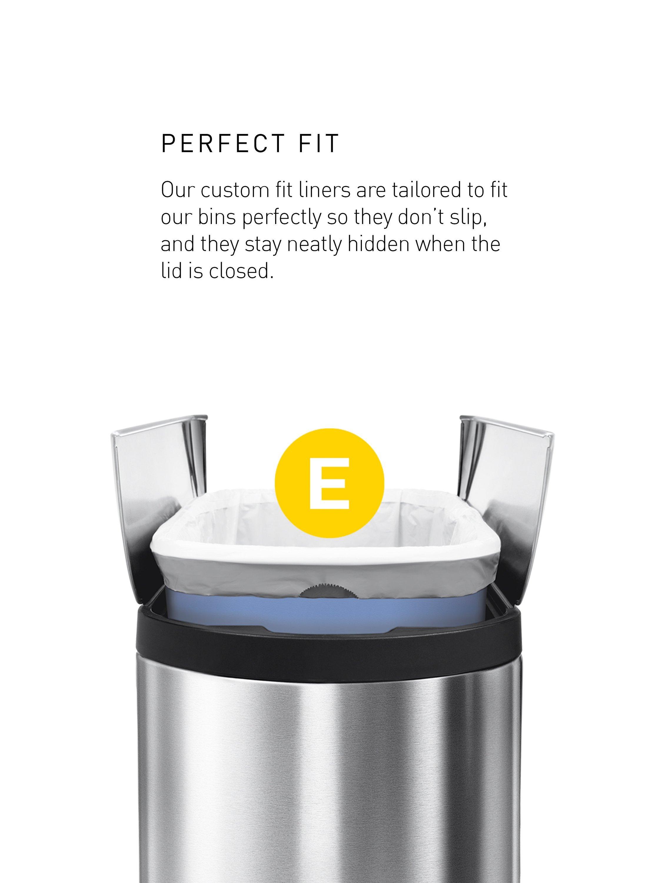 - Custom fit liners: tailored to fit simplehuman bins perfectly so they don't slip and the bag stays completely hidden when the lid is closed