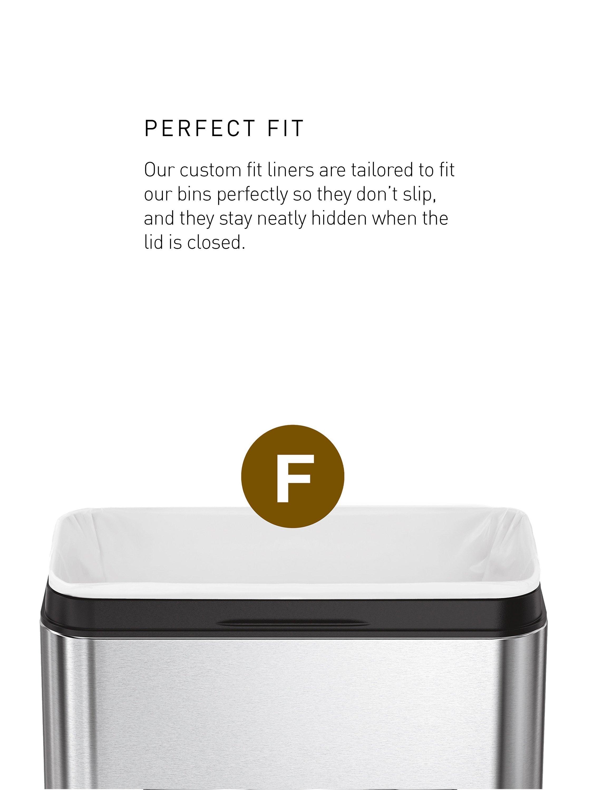 - Custom fit liners: tailored to fit simplehuman bins perfectly so they don't slip and the bag stays completely hidden when the lid is closed