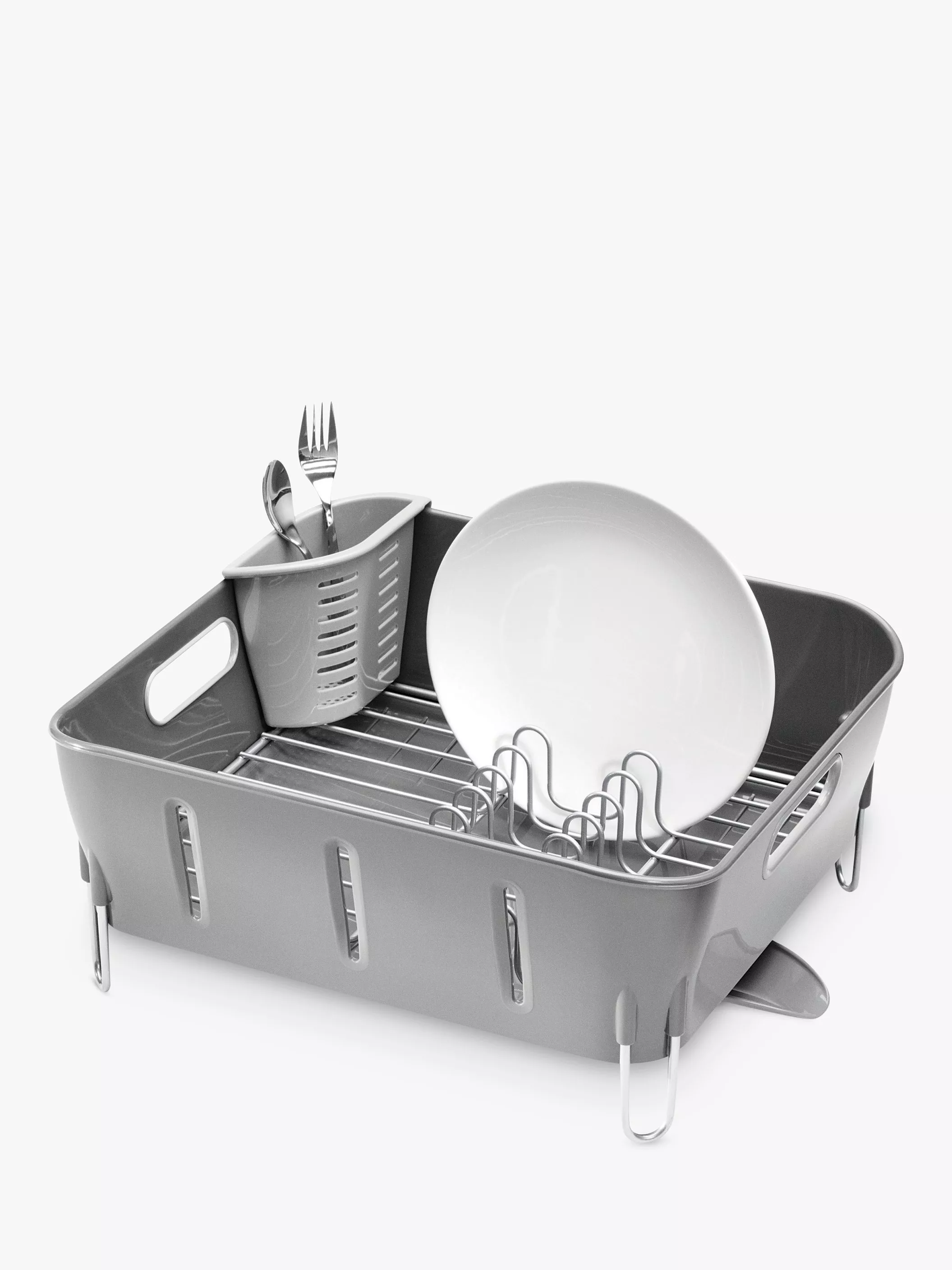 Great for small kitchens, the simplehuman compact dishrack fits perfectly in the sink or on the worktop. Keep it in the sink to save space or set it on the worktop and let