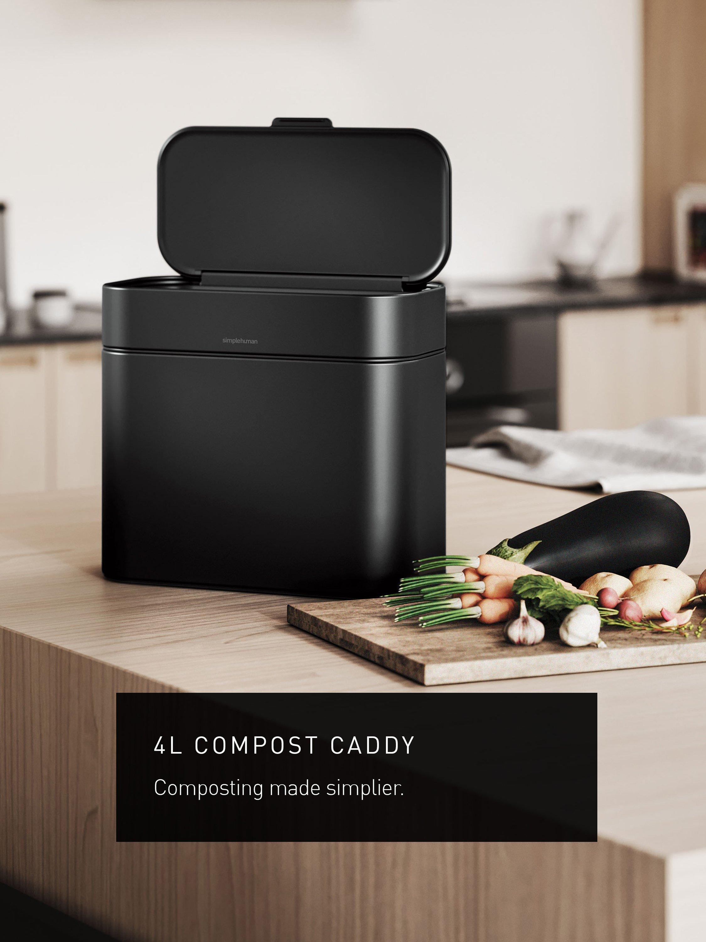 - composting made simpler: the simplehuman compost caddy conveniently docks on the side of simplehuman liner rim bins encouraging you to separate organic matter from general waste, making waste management even more efficient