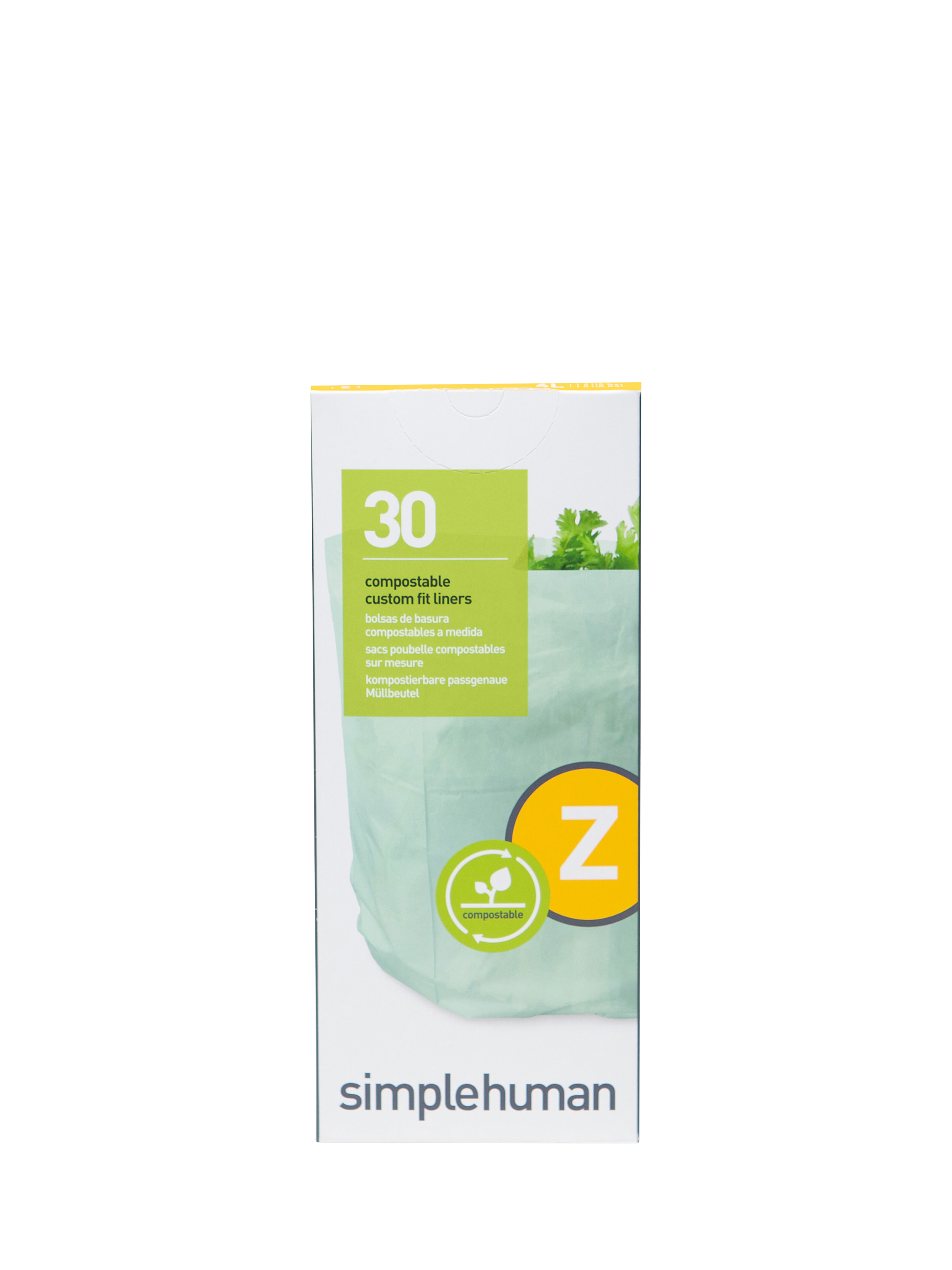 These compostable liners are designed to fit the simplehuman compost caddy perfectly and are certified compostable for home or commercial use. They decompose fully so are safe to throw out into your compost along with your food scraps.