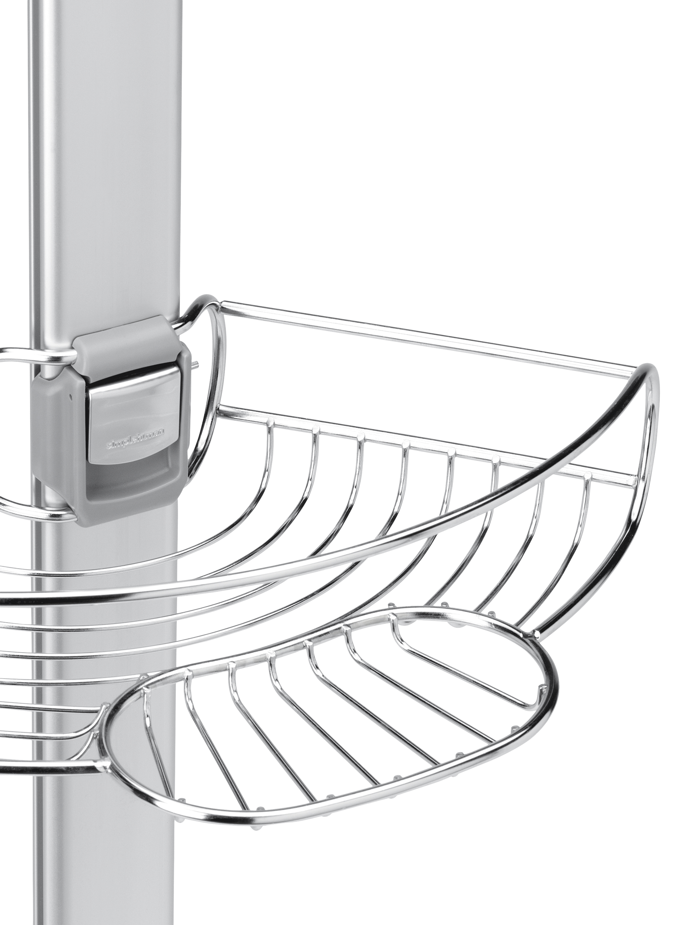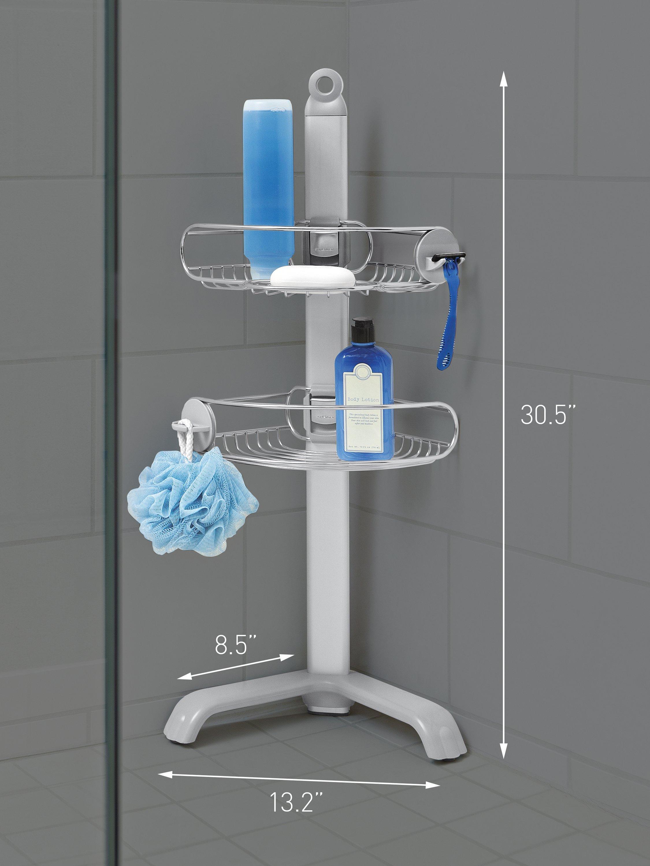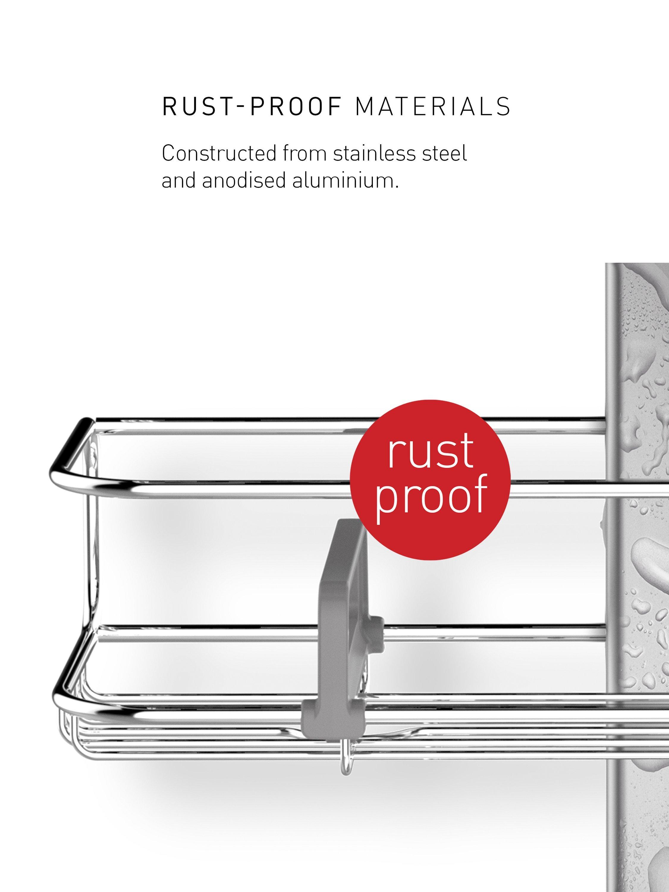 The simplehuman corrosion-resistant stainless steel corner shower caddy maximises your storage space in corners. It has adjustable wire-frame shelves that slide up and down a reinforced aluminium pole. And together with a soap dish, a toothbrush/razor holder and two hooks to hang a sponge or washcloth, these shelves hold all your shower essentials. Its adjustable pronged feet ensure the caddy will be stable - even on uneven floors.