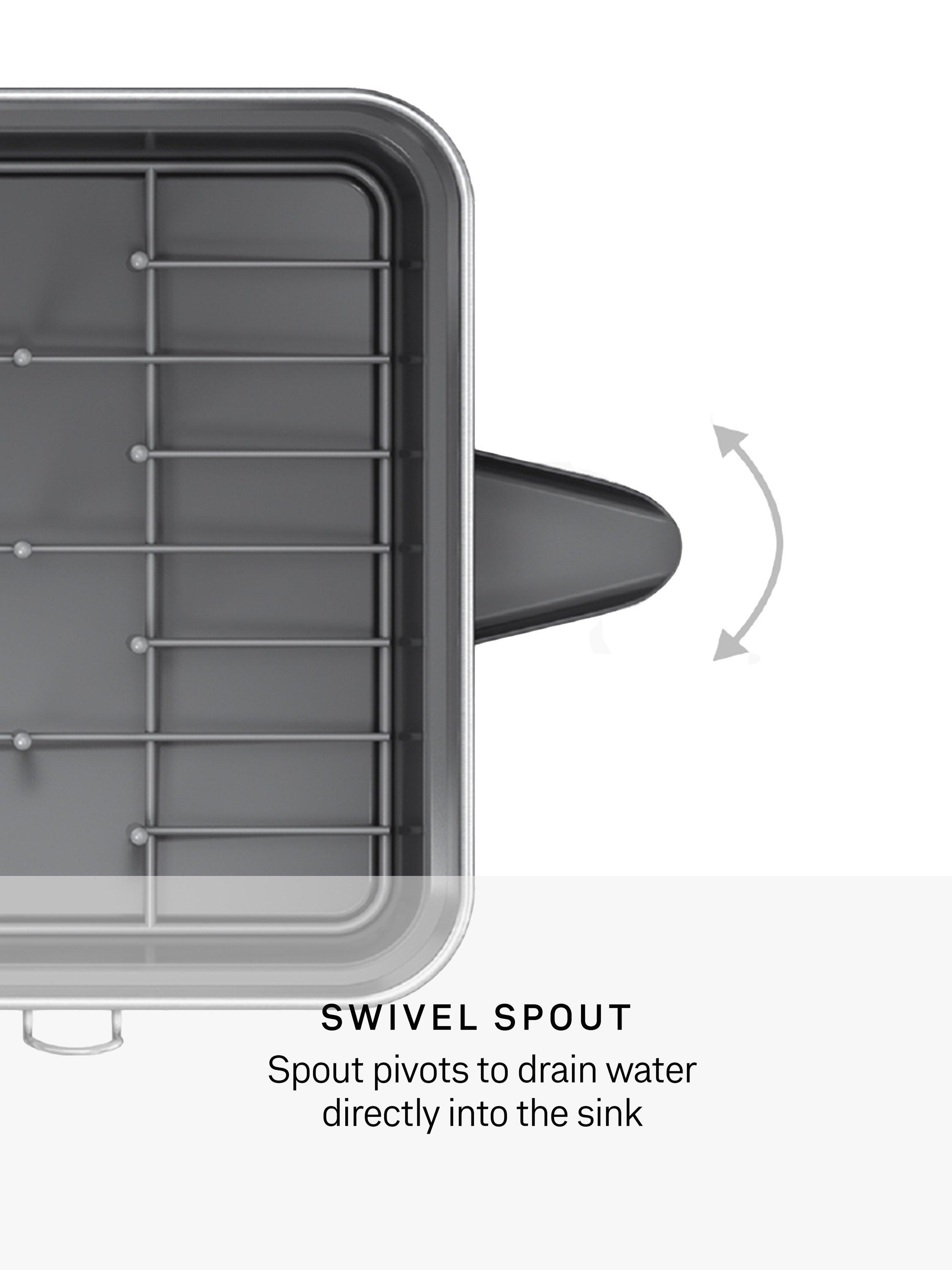 Its swivel spout rotates 360 degrees in any direction so it drains water directly into the sink - no matter how you place the dishrack on your countertop - and can be removed for easy cleaning.