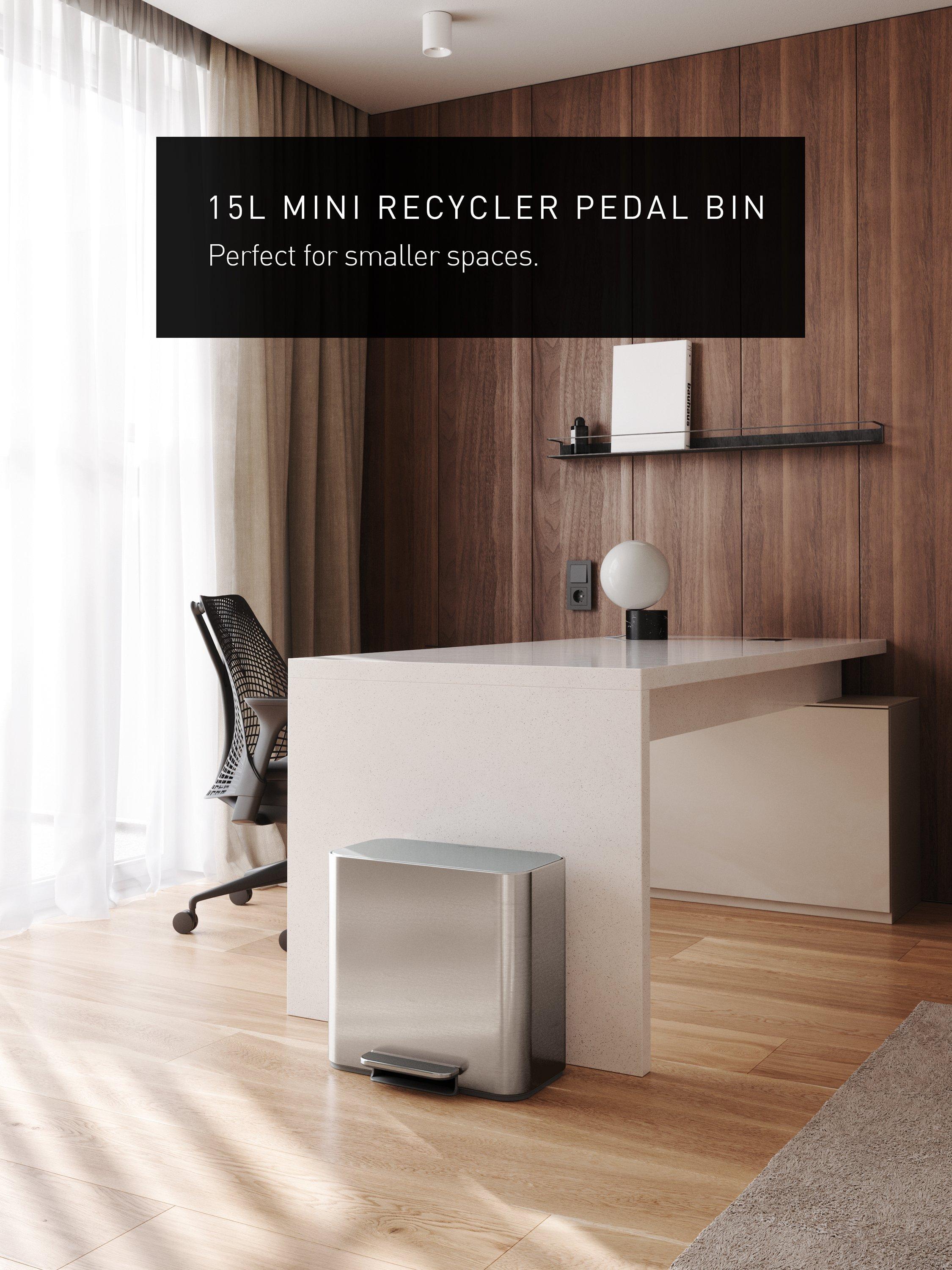 SimplehumanMini Recycler Pedal Bin, 15L, Brushed Stainless Steel