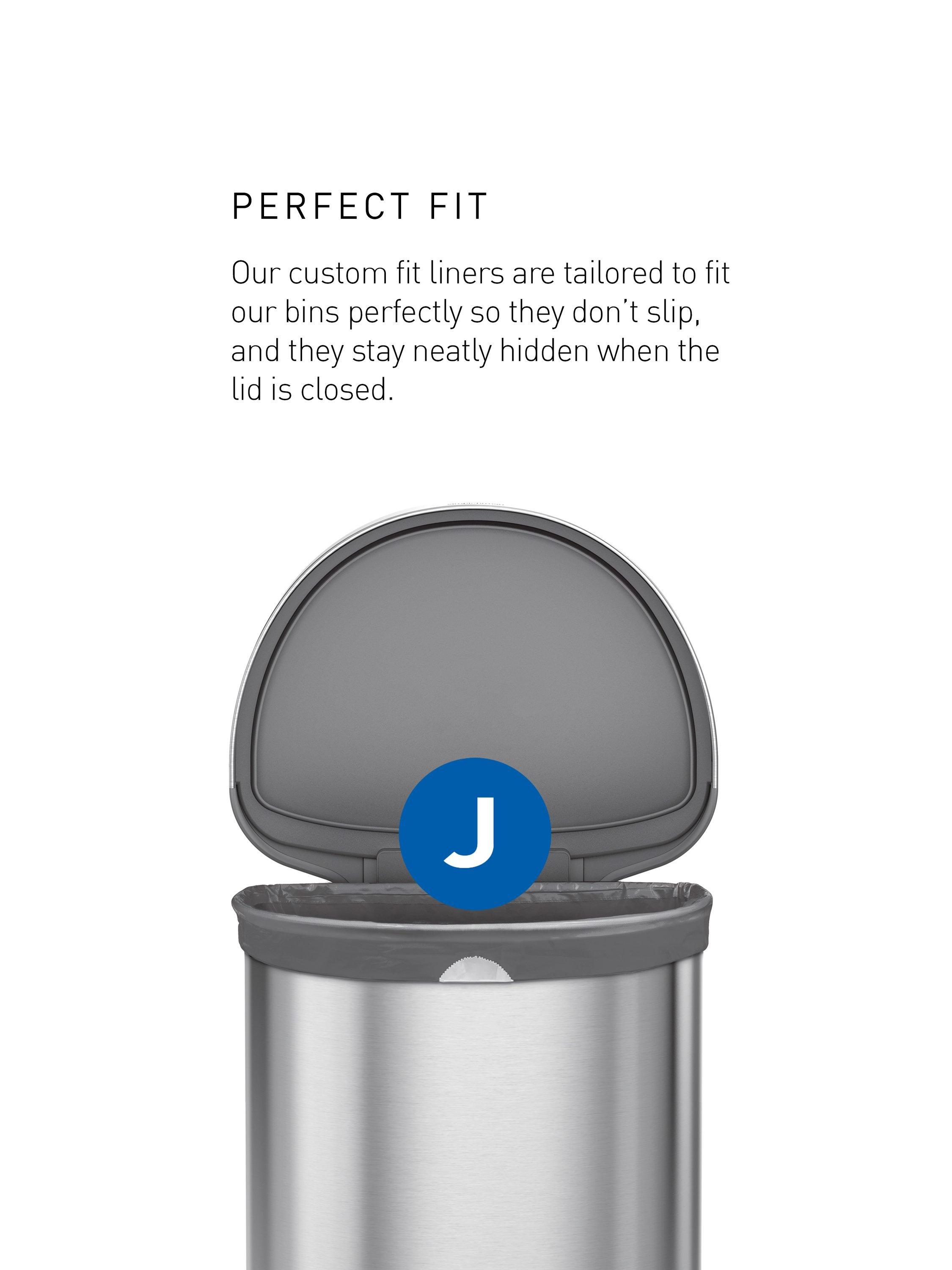 Refill packs are designed to fit perfectly inside sensor and pedal bins with simplehuman's built-in liner pocket system for a faster liner change.