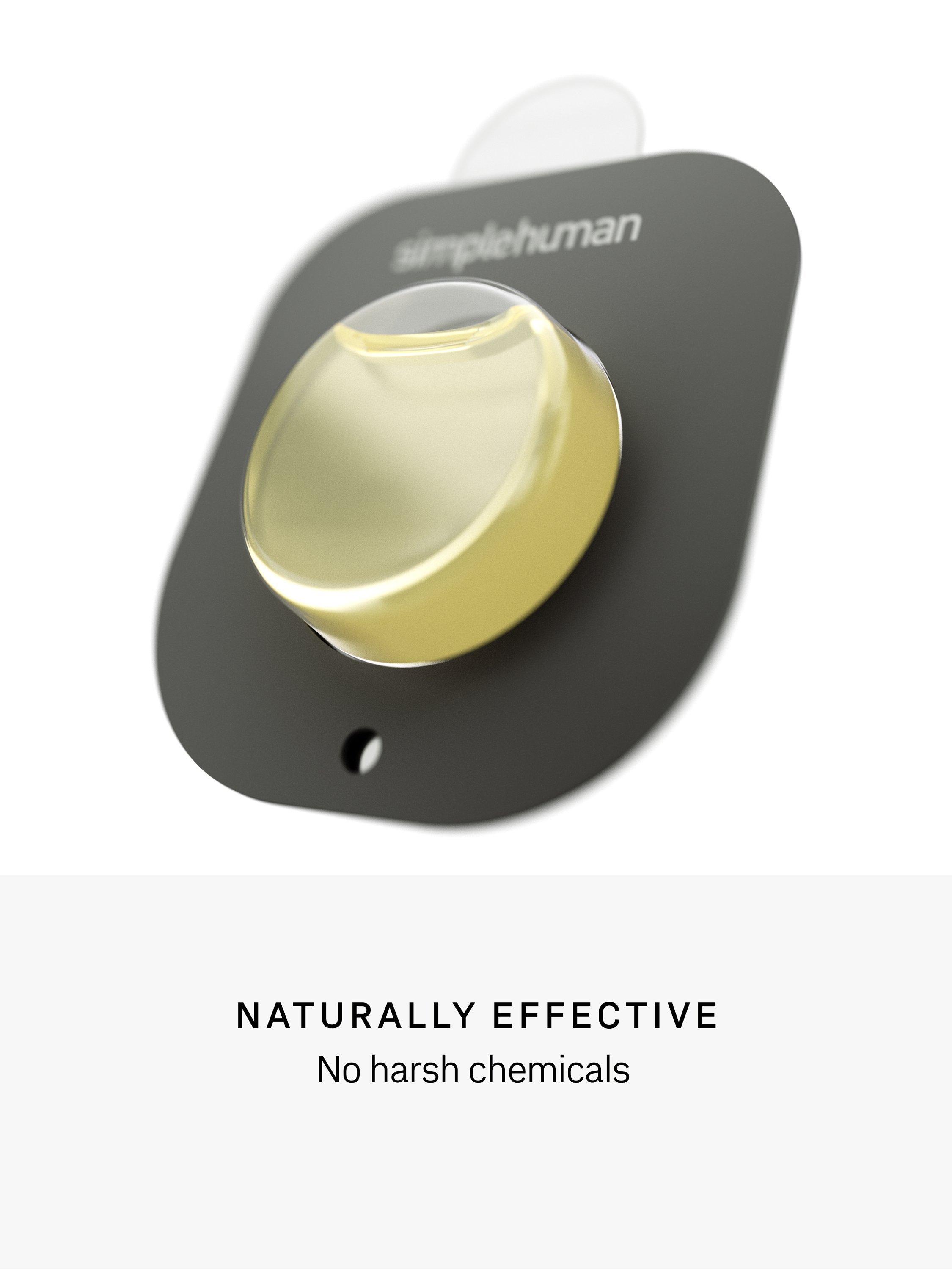 The Odorsorb pod fits discreetly under the lid of your Simplehuman bin to eliminate odours, with active ingredients are all-natural, using a precise, fine-tuned formula of plant oils, with no harsh chemicals and no cover scents.