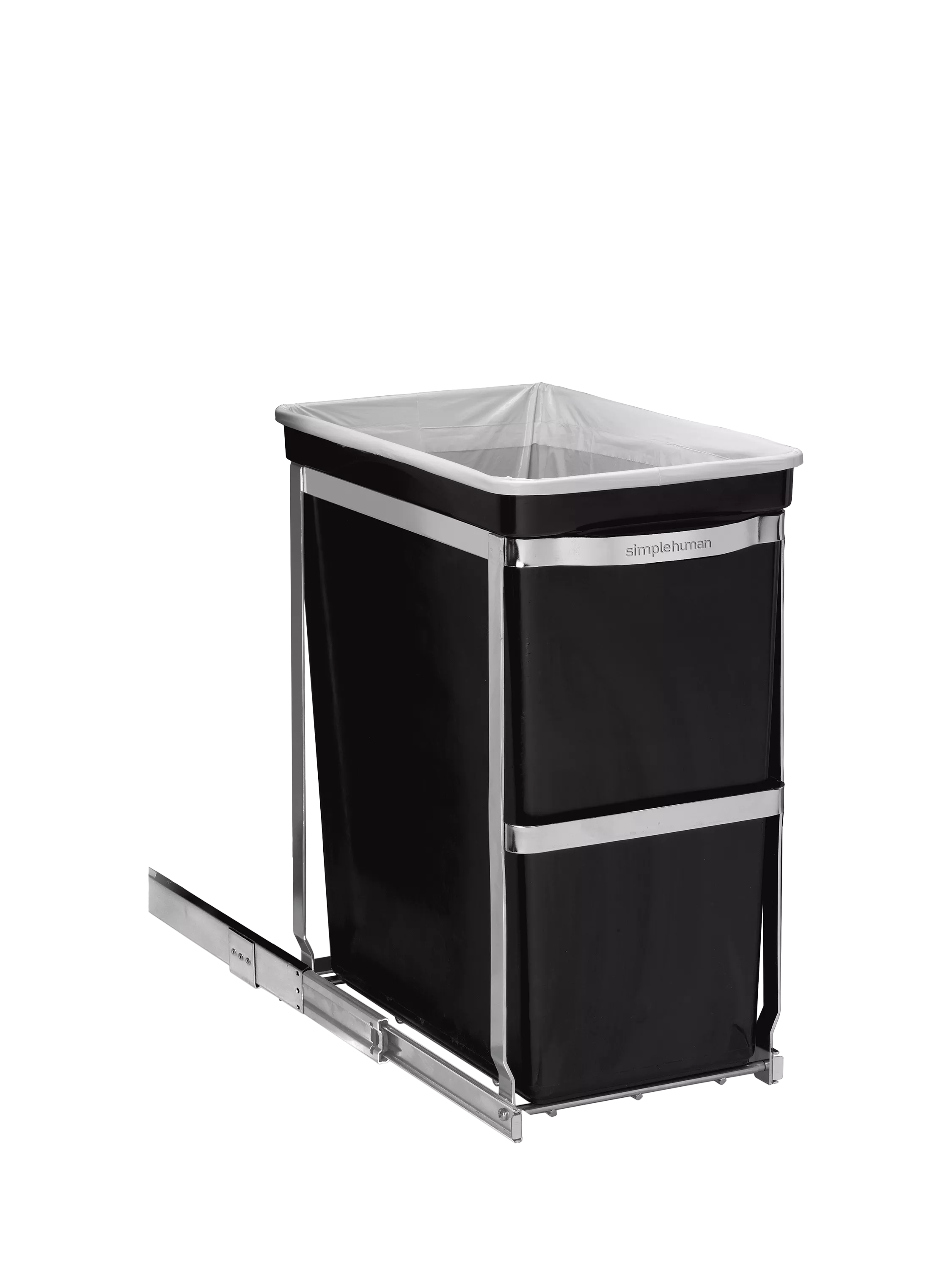 Keep rubbish neatly concealed inside your kitchen cabinet. The simplehuman pull-out bin is easy-to-install and glides out on a smooth, ball bearing track for quick and easy access.
