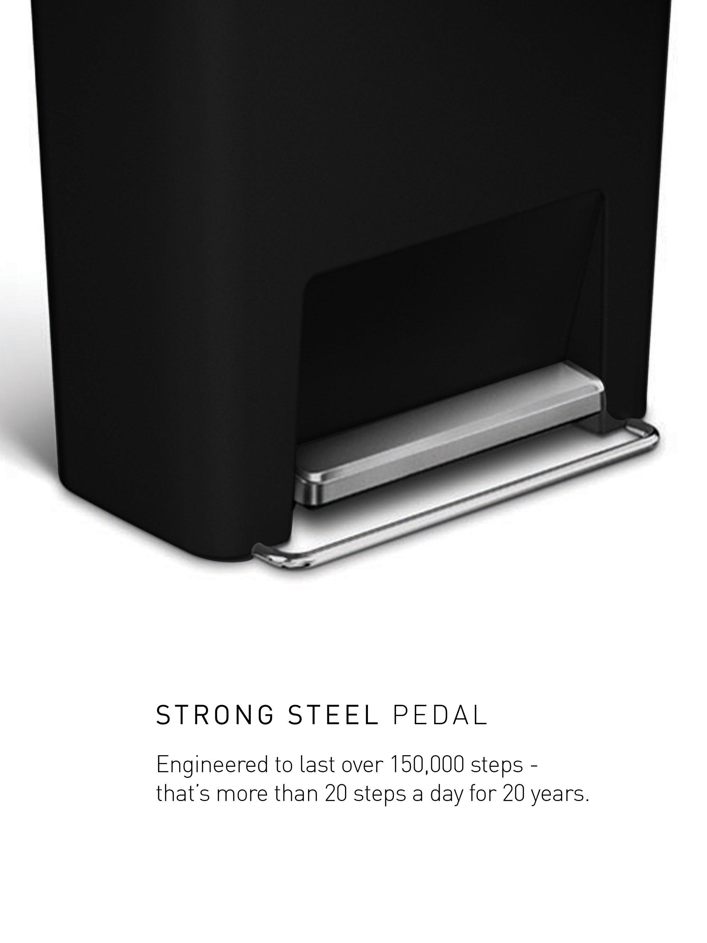 The strong, wide steel pedal is designed to last, and patented lid shox technology ensures a smooth, silent close every time.