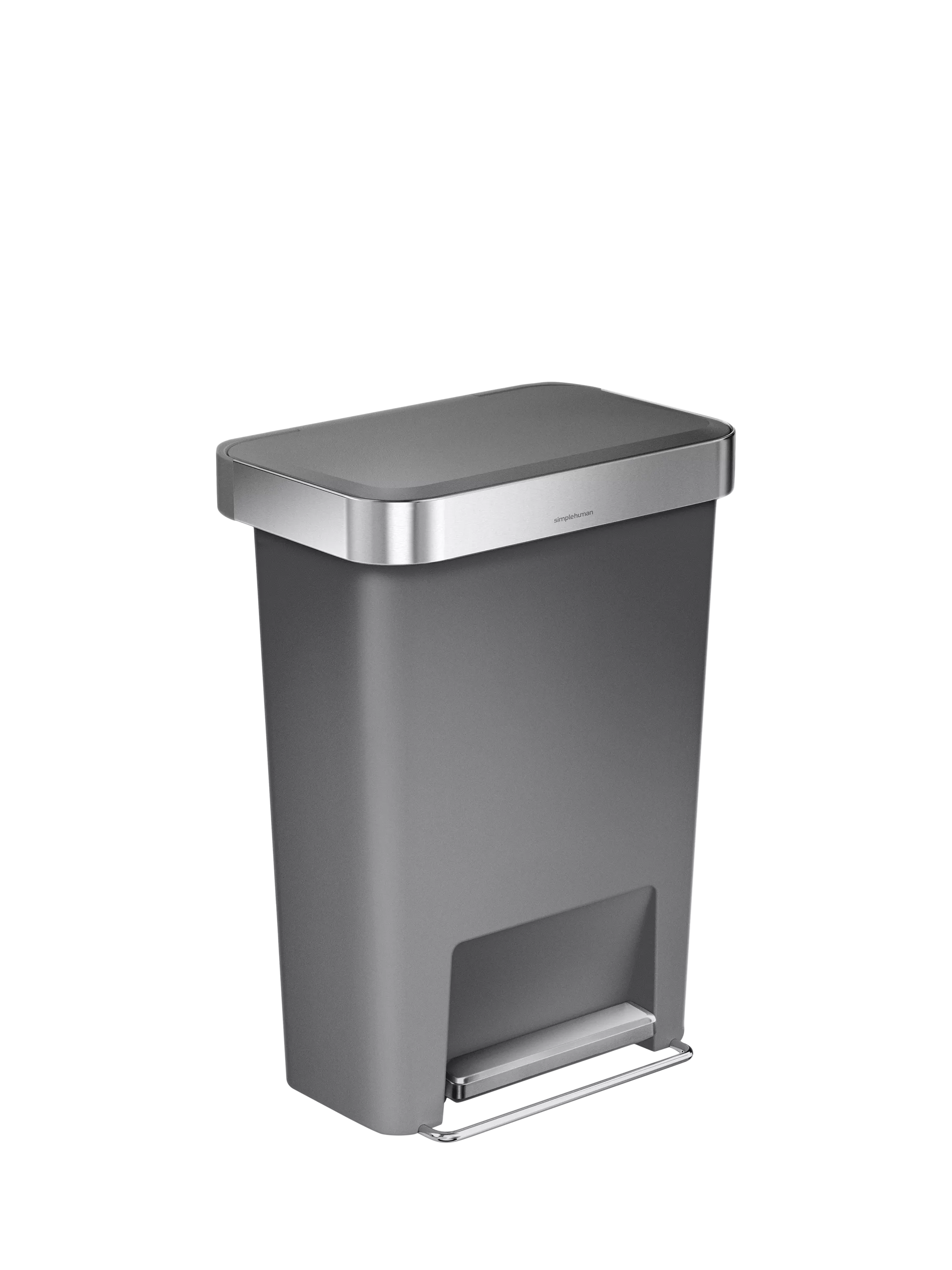 The simplehuman rectangular pedal bin features an innovative 'liner pocket' that keeps liners at your fingertips for a faster liner change. Just slip a liner refill pack into the liner pocket to dispense fresh liners one at a time - no clumsy perforations or unravelling. The bin's stainless steel liner rim grips the liner and keeps it hidden.