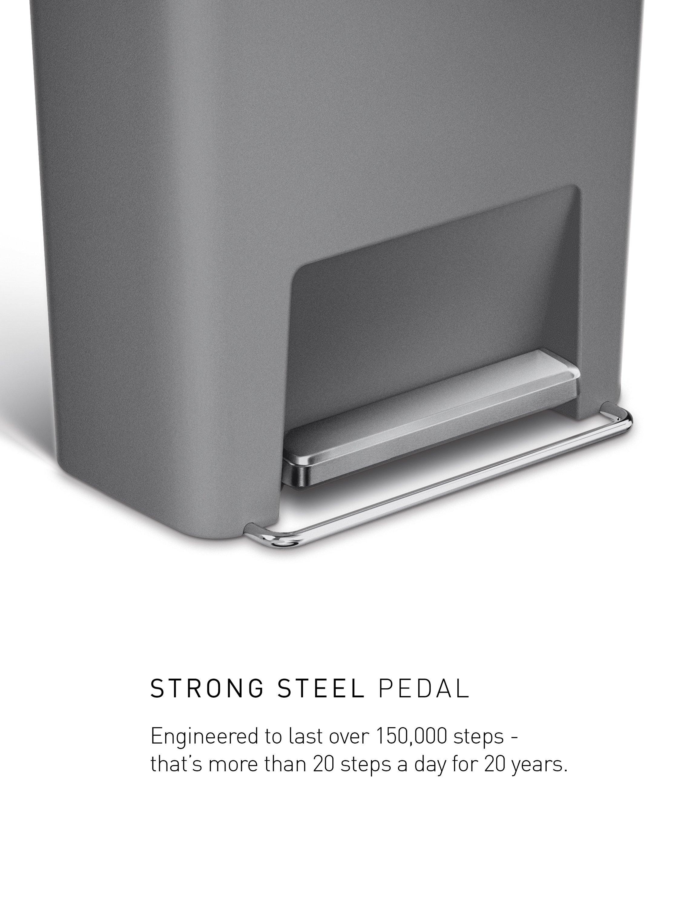 The strong, wide steel pedal is designed to last, and patented lid shox technology ensures a smooth, silent close every time.