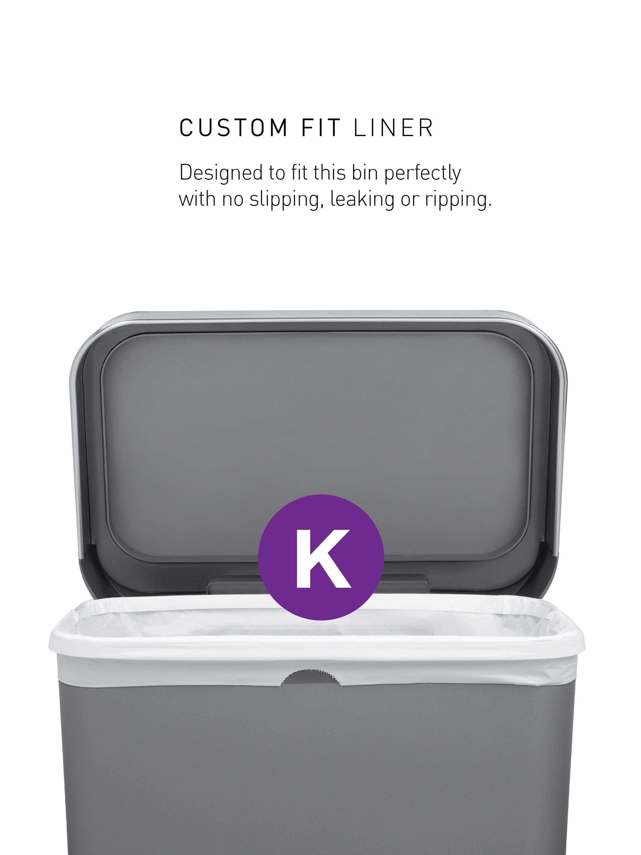 - Perfect fit - extra strong: simplehuman's code K custom fit liners fit this bin perfectly so there's no bunching, slipping or messy bag overhang for a neater, cleaner look They are also extra-thick and double-seamed so you can pack your liner to the rim without rips, leaks or tears