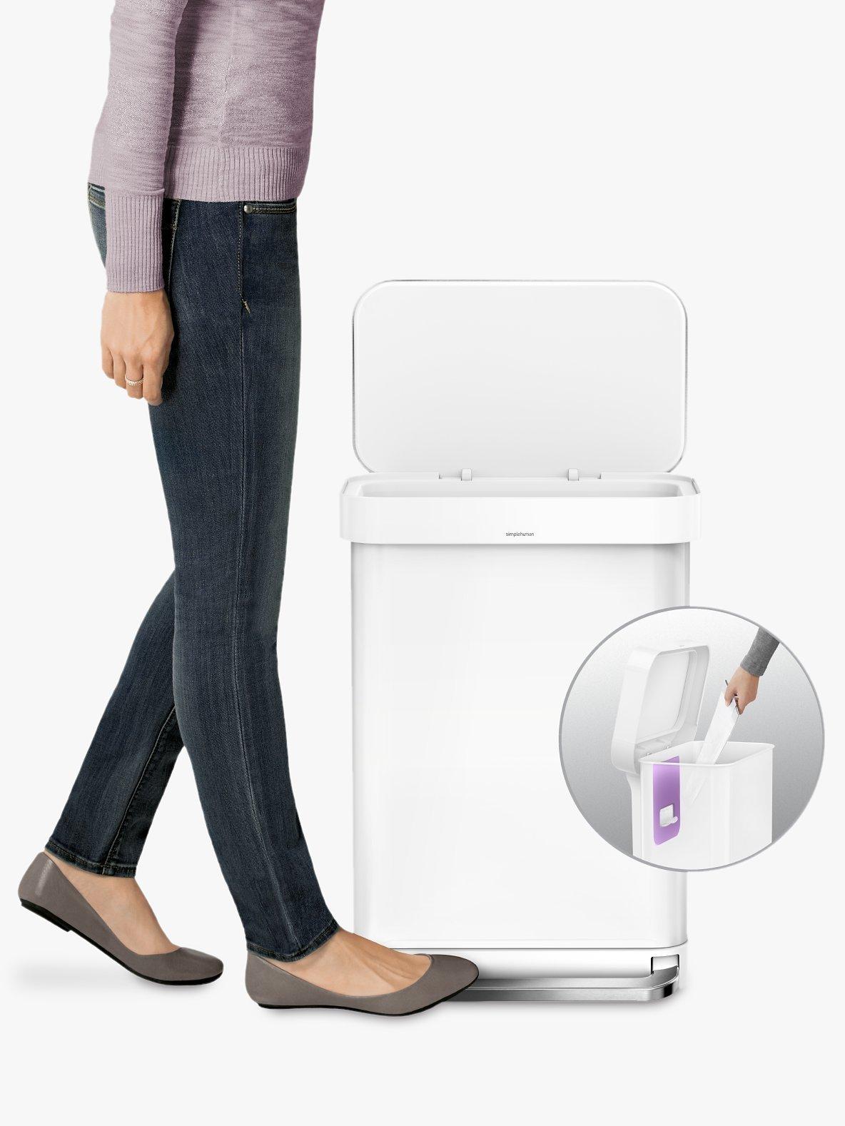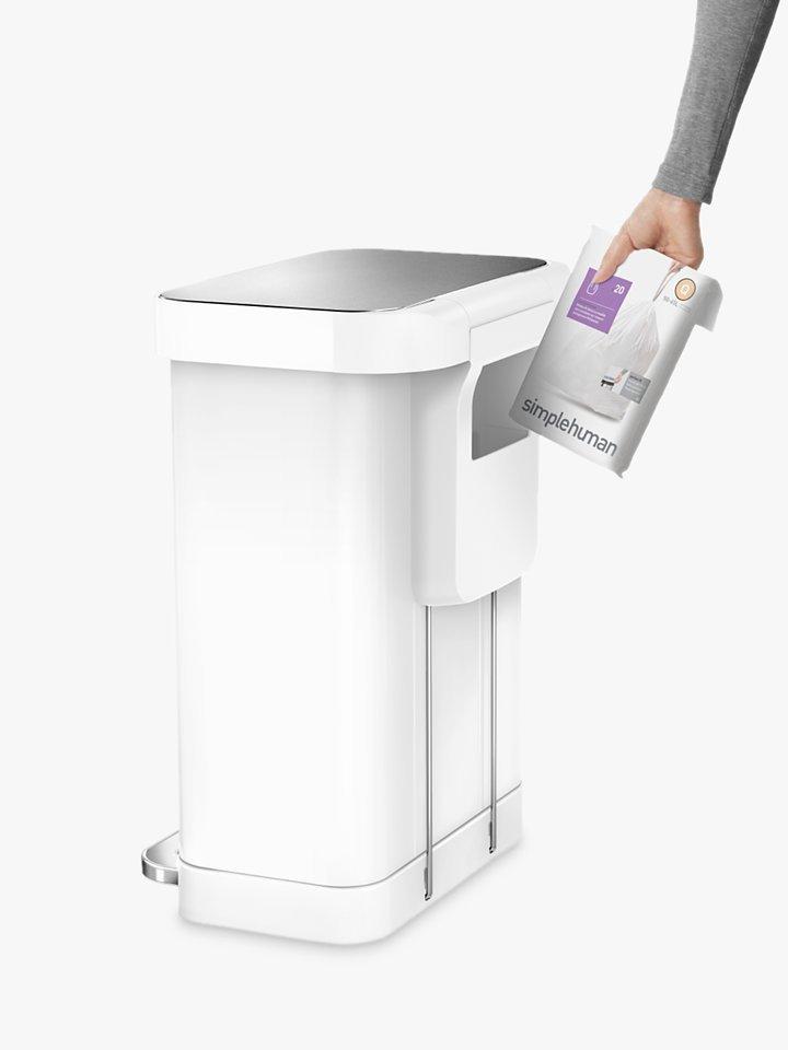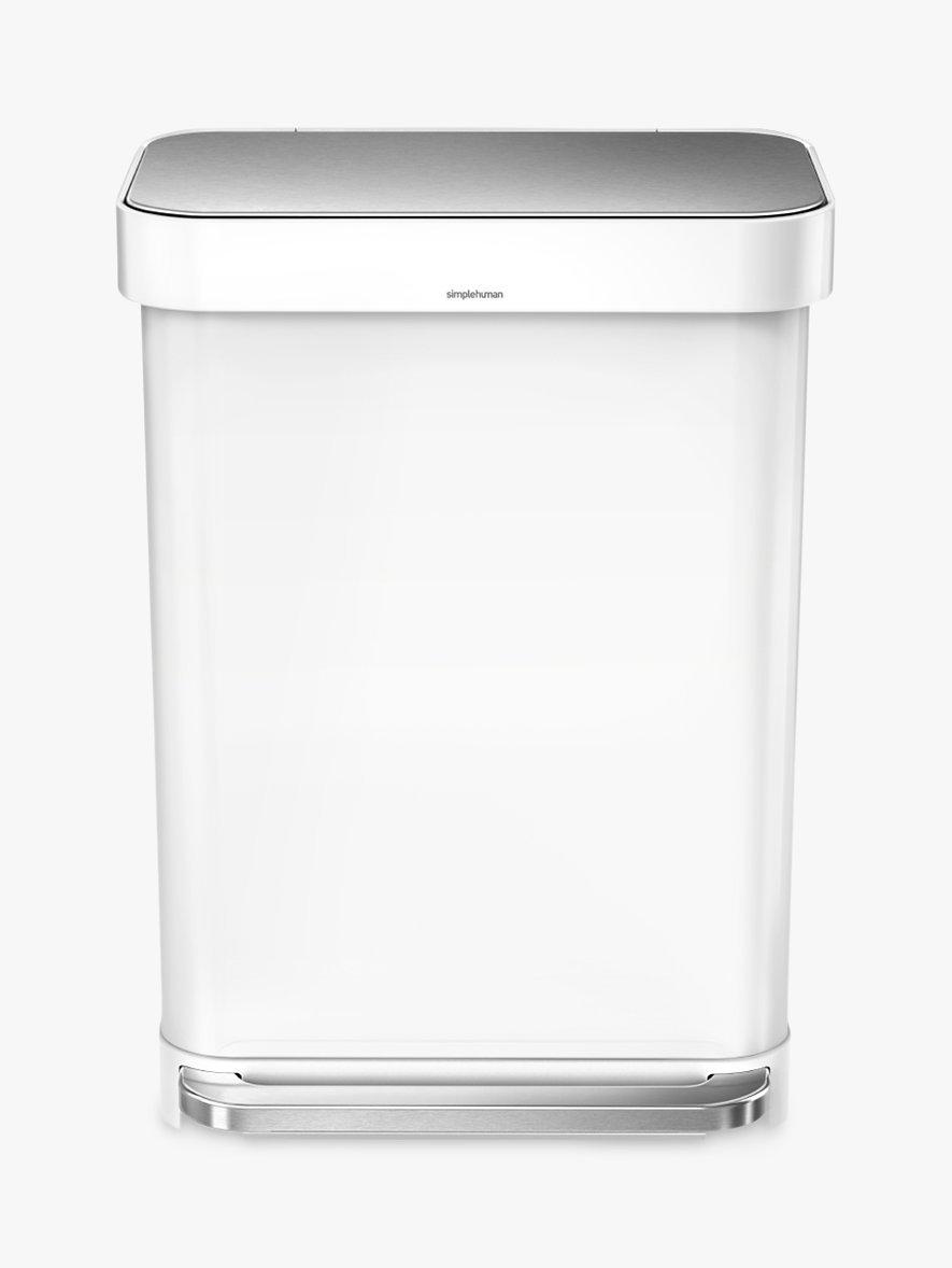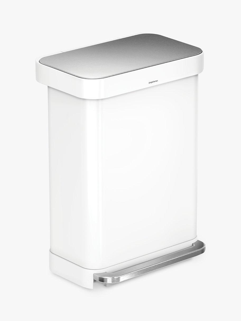 simplehumanRectangular Pedal Bin With Liner Pocket, White / Steel, 55L
