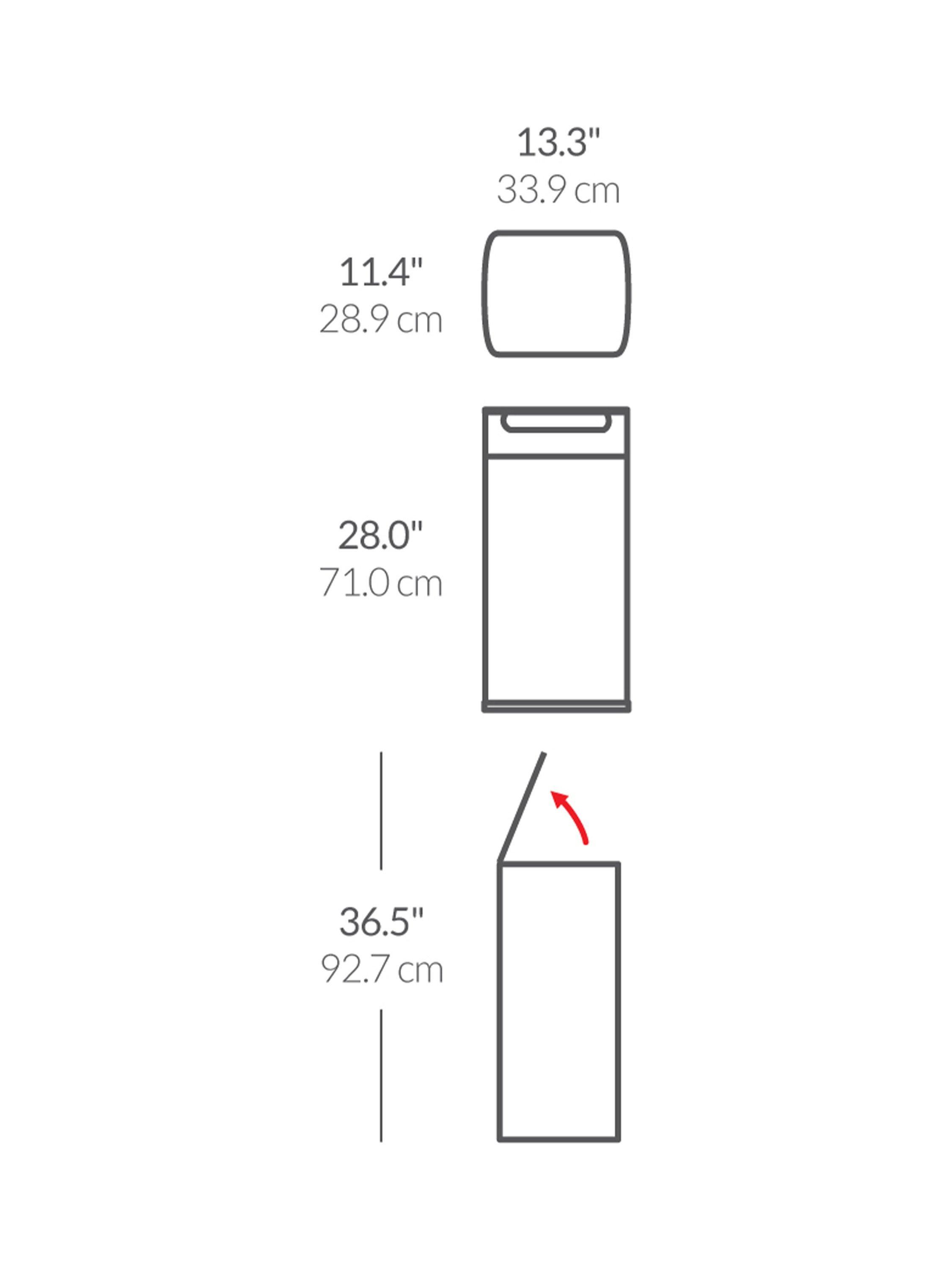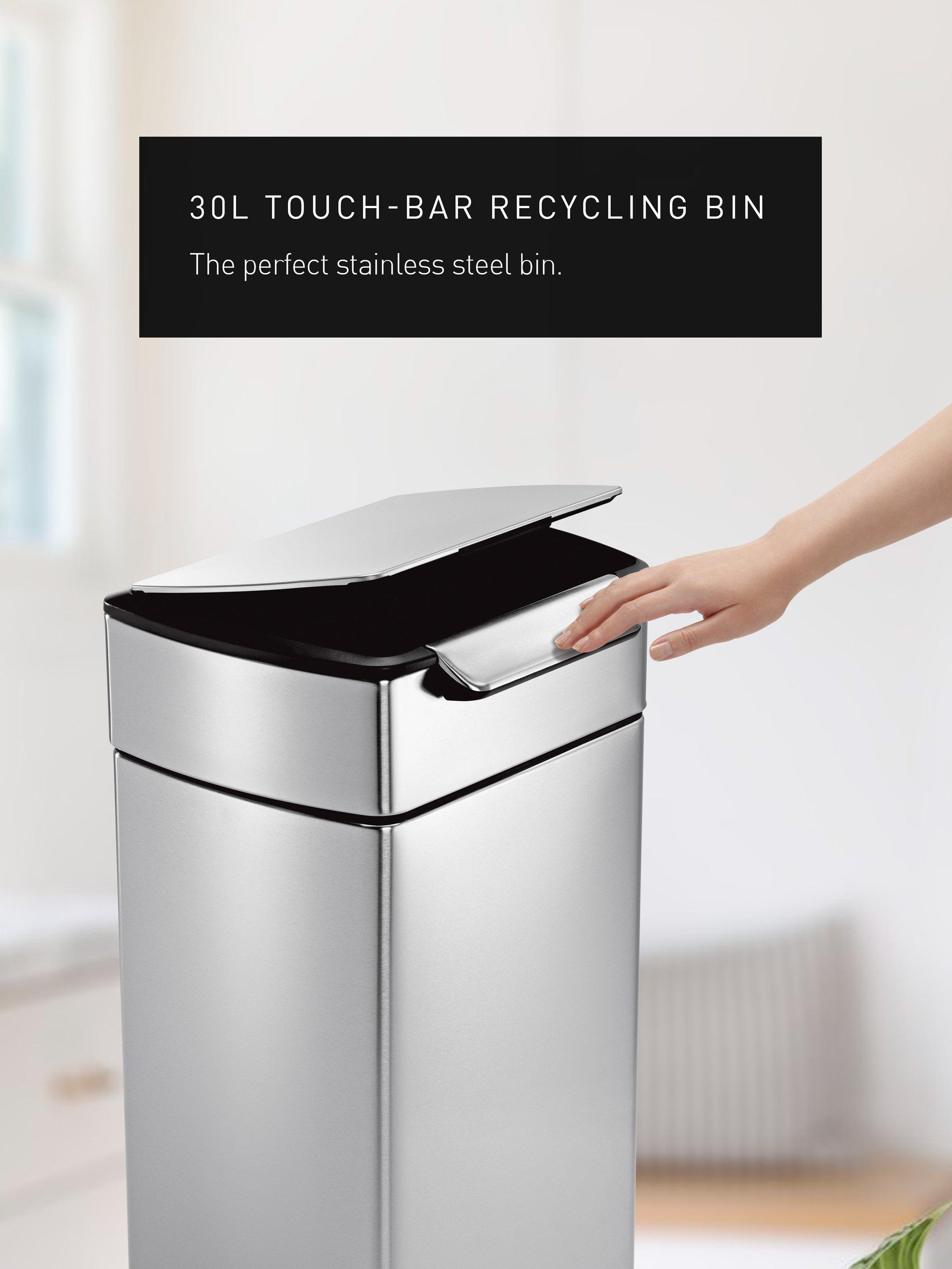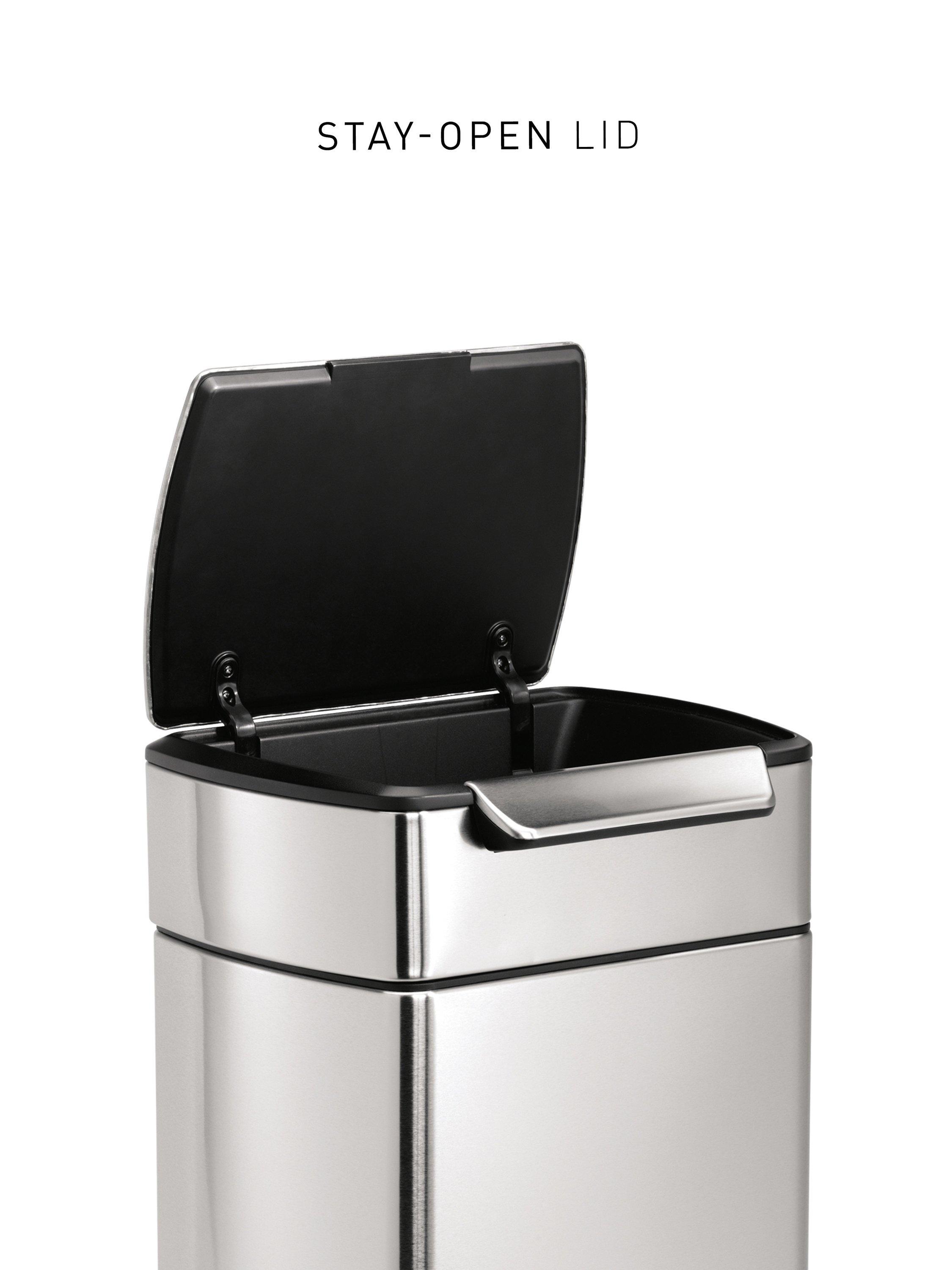 The simplehuman unique touch-bar makes it easy to open the bin from any angle. Just tap with your elbow, bump with your hip or nudge with your knee. And it stays open until you are ready to close it - ideal during food prep or while finishing up long chores.