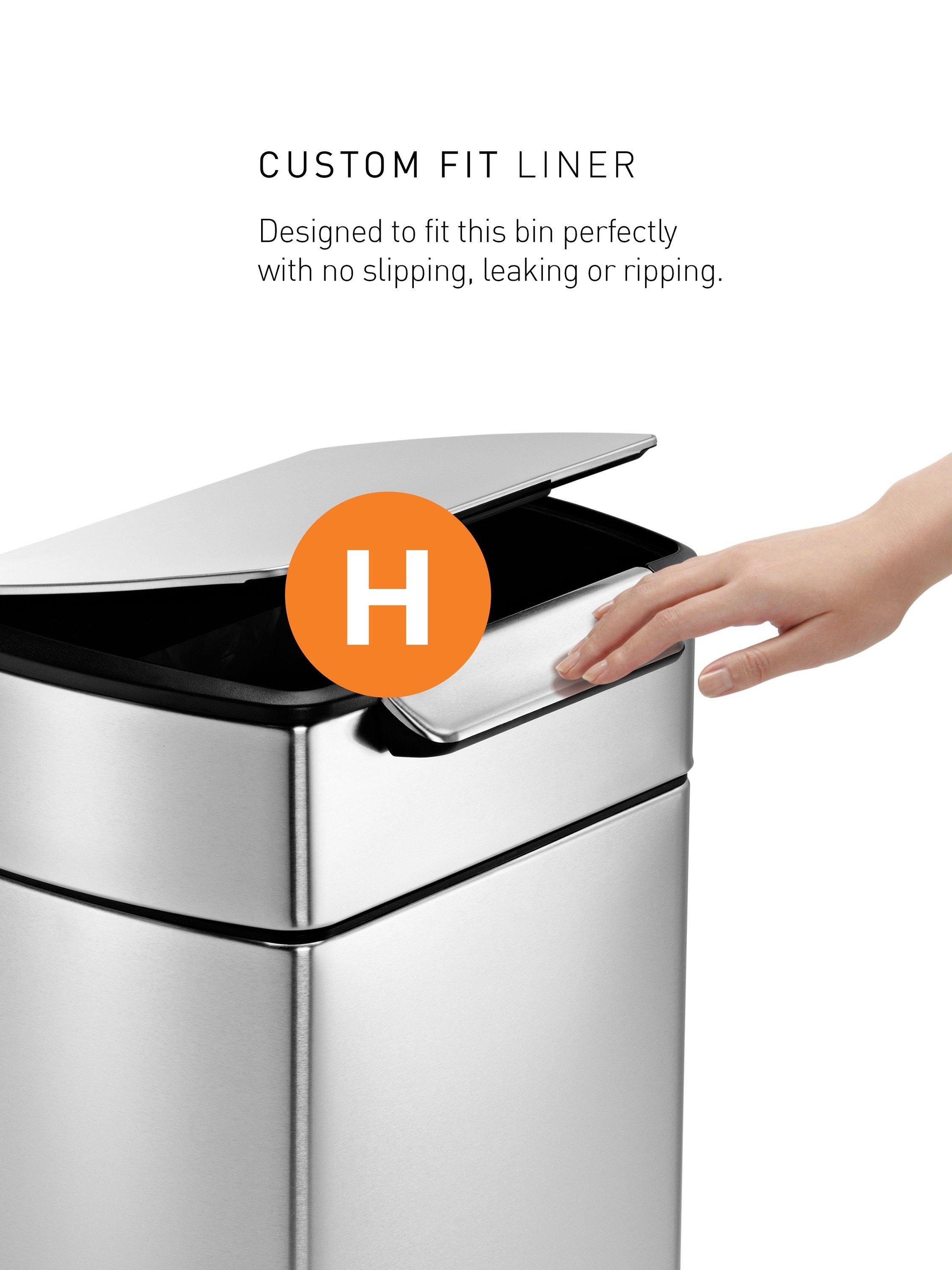 - Custom fit liners: simplehuman code H liners are designed to fit this bin perfectly so they don't slip, and they stay completely hidden. Extra-thick plastic and double-seam construction prevent rips and tears