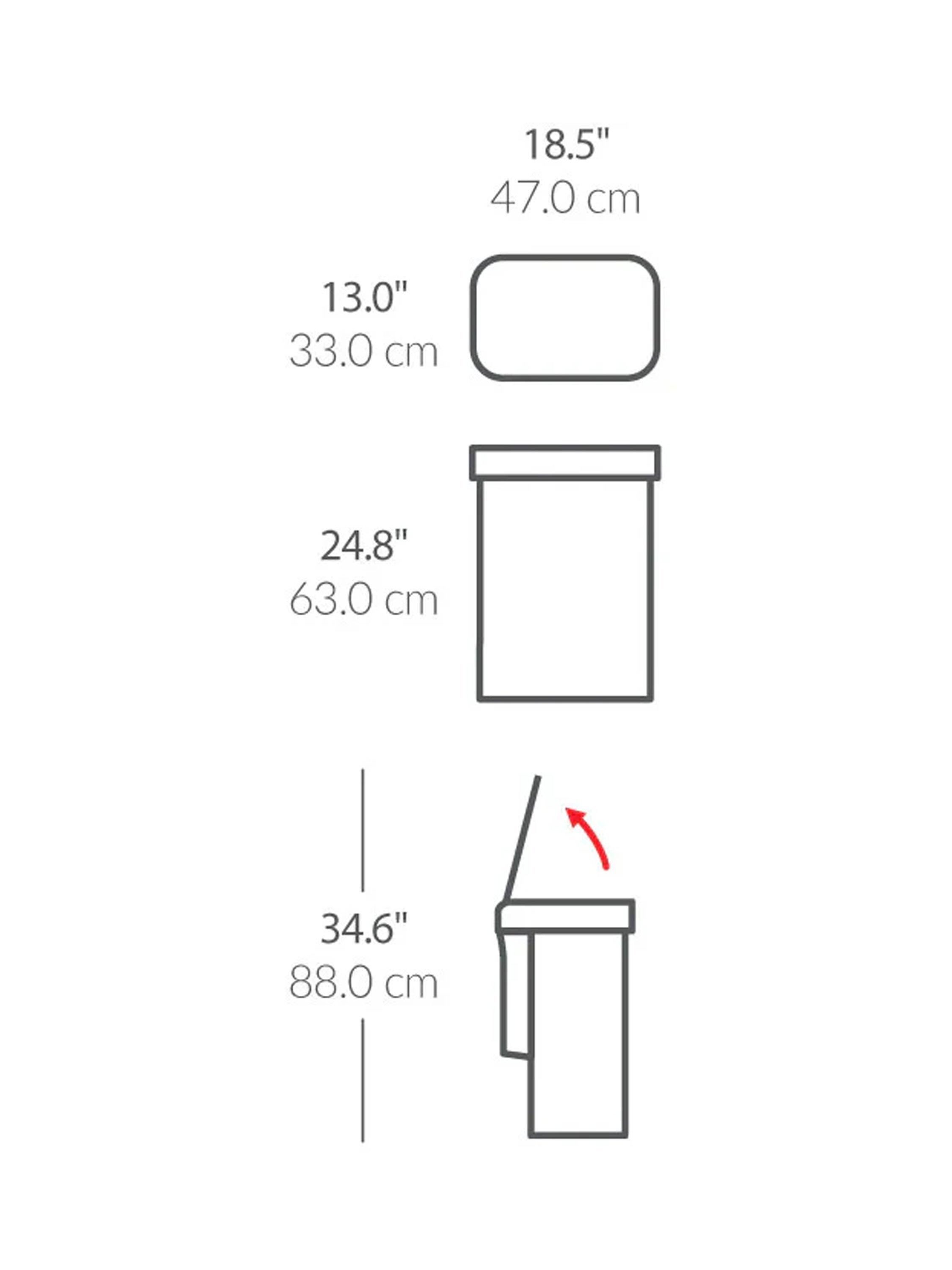 - Streamlined Rim System: The liner rim flips up for easy bag access and closes firmly to grip the liner, keeping it neatly hidden from view
